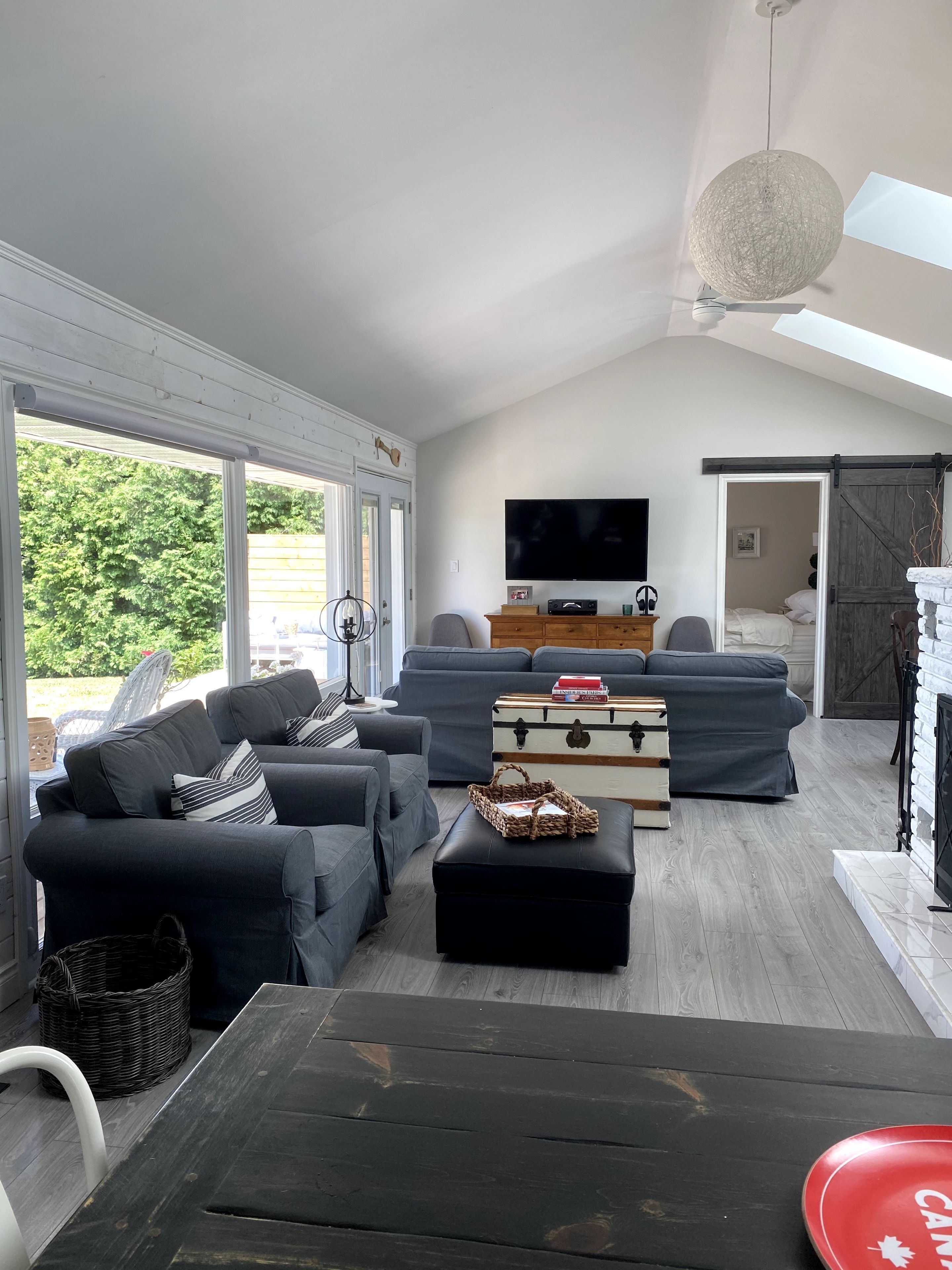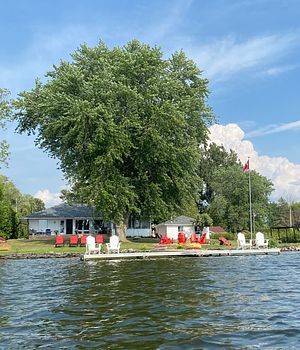Stunning four season waterfront living on canal lake, 114 ft lake frontage facing west with spectacular sunsets. Fully renovated inside and outside in 2019, completely gutted and rebuilt with an addition added. This home includes 4 bedrooms, 2 bathrooms with fireplace in great room with cathedral ceiling open to the kitchen. This property features a very large deck, with multiple seating areas for lounging and outdoor dinners. There is also an additional deck right off the kitchen for easy barbecue cooking access. The attached sunroom with new sunspace windows installed in 2022 creates a wonderful lounging area free of insects, etc. The large t-dock gives ample space to park multiple boats. Full basement with fireplace. Double car garage, irrigation system installed, all contents are negotiable. Cottage has all city services, ie: mail delivery, municipal road snow plowing, garbage pick up. Close to many amenities and only 1. 5 hours from downtown toronto. Newly upgraded electrical panel service and newly added air conditioning and newly added propane furnace.