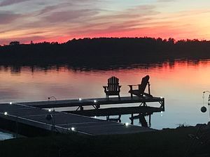 • Beautiful waterfront property with 114 ft lake frontage and stunning sunsets.