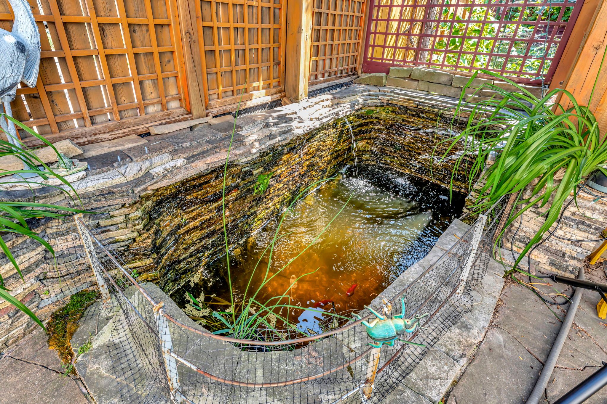 • Charming backyard oasis with mature gardens, koi pond, and custom pergola.