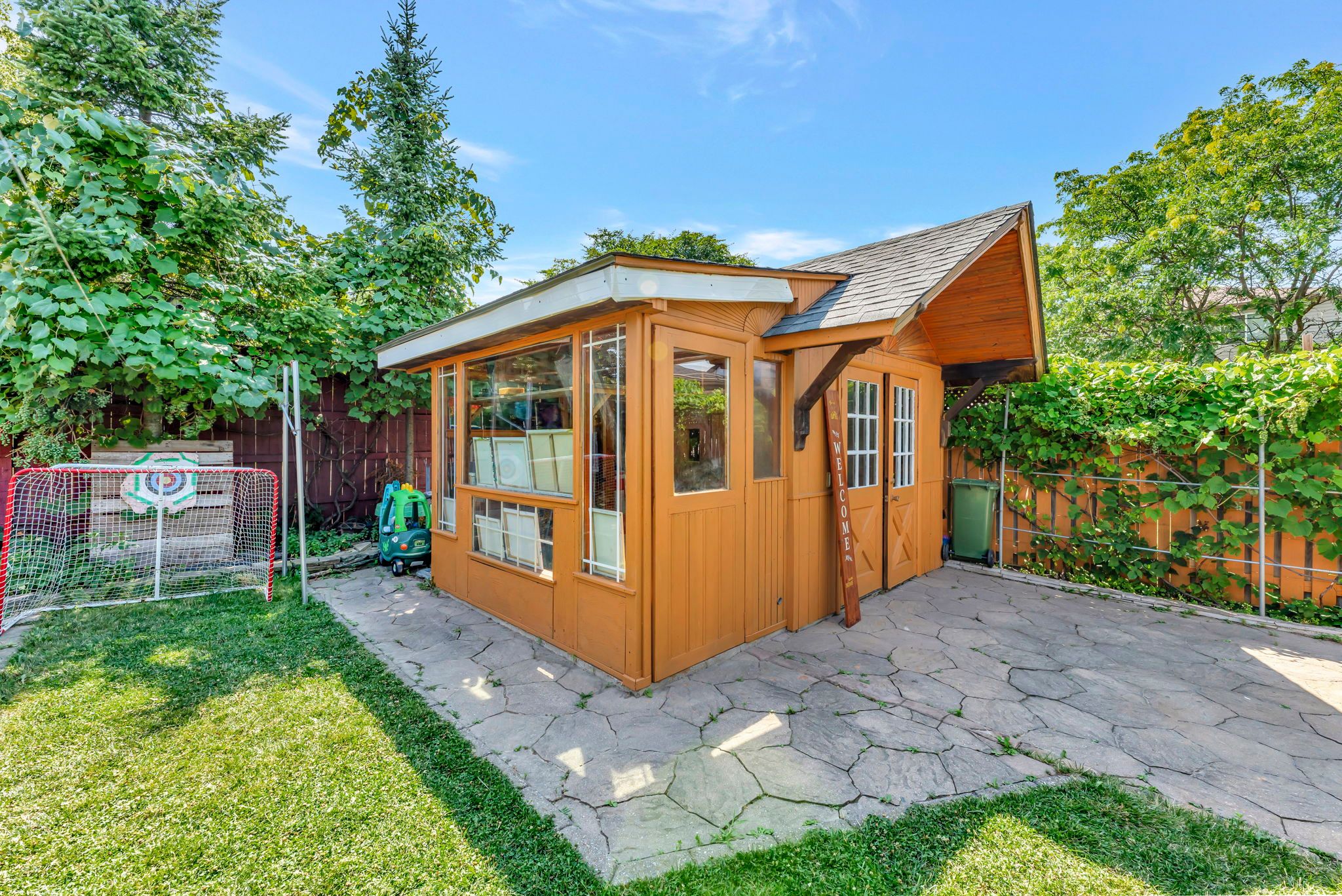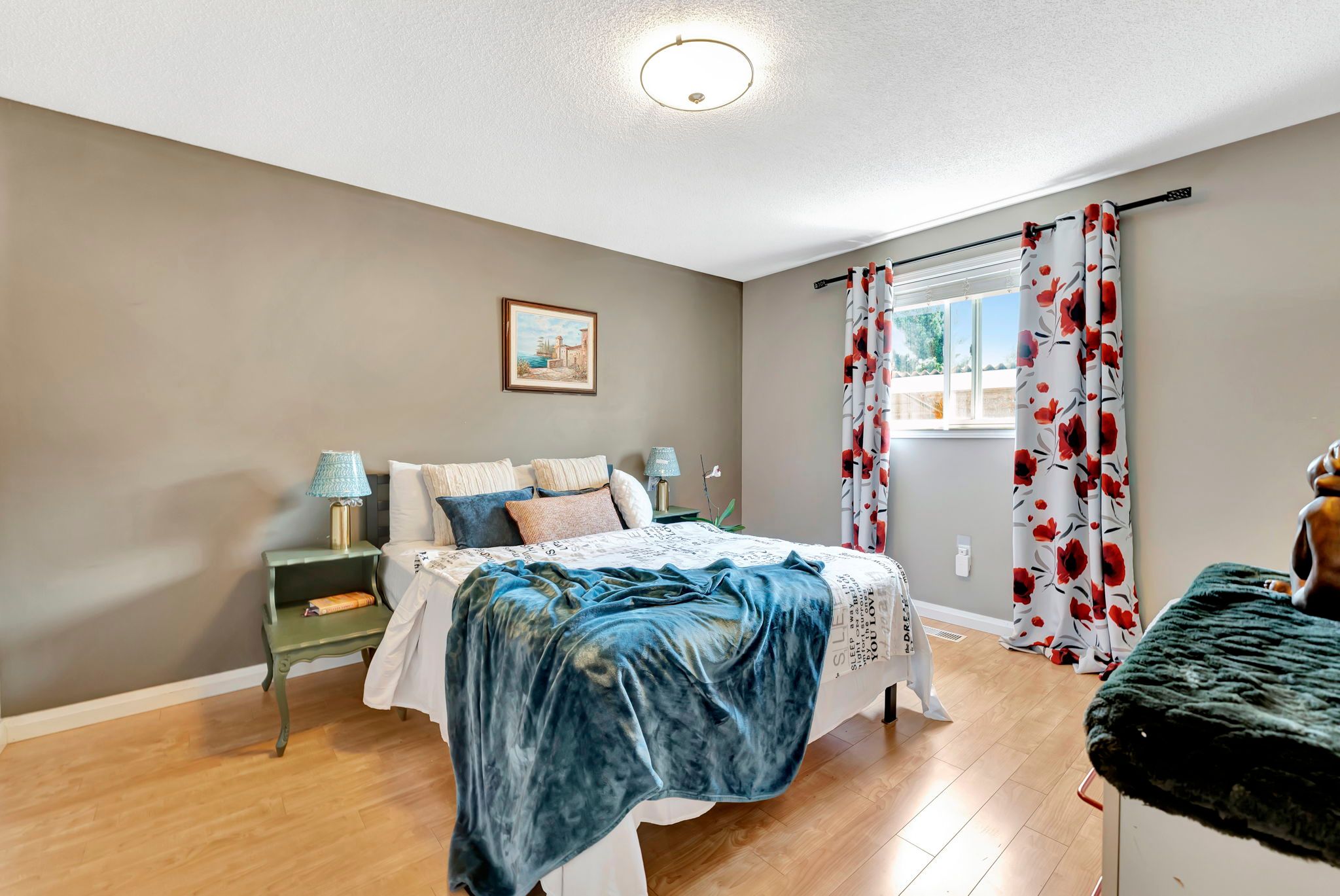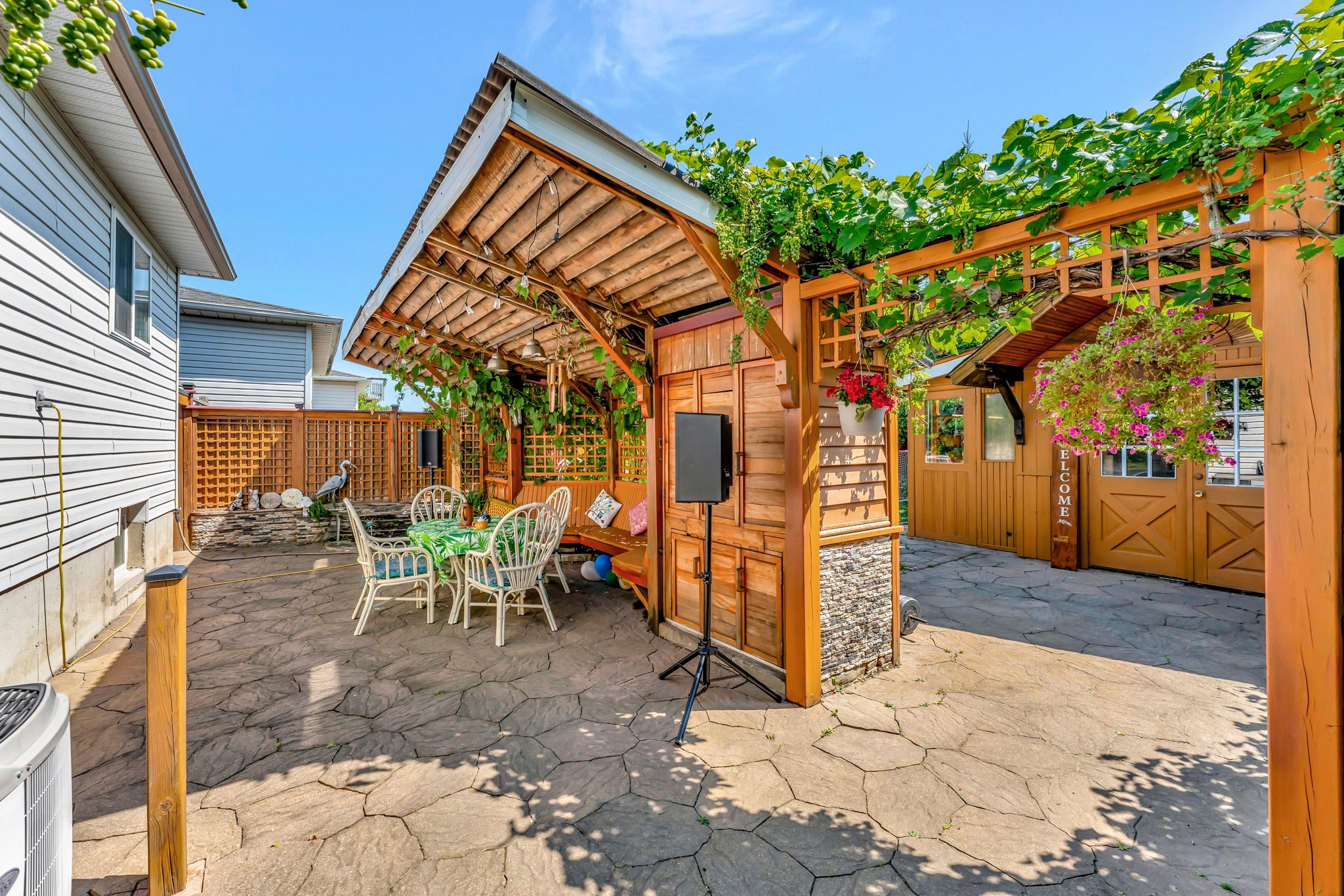 Pride of ownership shines in this beautifully maintained 4-level backsplit, ideally located near the linc, schools, shopping, and all major amenities. A private double-wide patterned concrete driveway offers parking for 4 vehicles. Inside, the main level features a bright, open-concept living and dining area with a thoughtfully designed kitchen, ceramic tile flooring, and convenient side-door access. Upstairs, you'll find three generous bedrooms and a 4pc bath. The lower level includes a spacious family room, a bedroom, and a 3pc bath, ideal for guests or multigenerational living. The partially finished basement offers excellent storage or room to expand. Now for the showstopper: the backyard. Staycation-ready and full of charm, this outdoor oasis is fully fenced and surrounded by mature grapevines, berry bushes, and manicured garden beds. Relax to the sounds of a koi pond waterfall, enjoy dinner under the custom pergola, or retreat to the handcrafted workshop currently used as an art studio. Stone walkways, a built-in outdoor bbq, and bonus side-yard storage complete the package. This is more than a home; it's a lifestyle. A rare find blending peaceful outdoor living with urban convenience.
