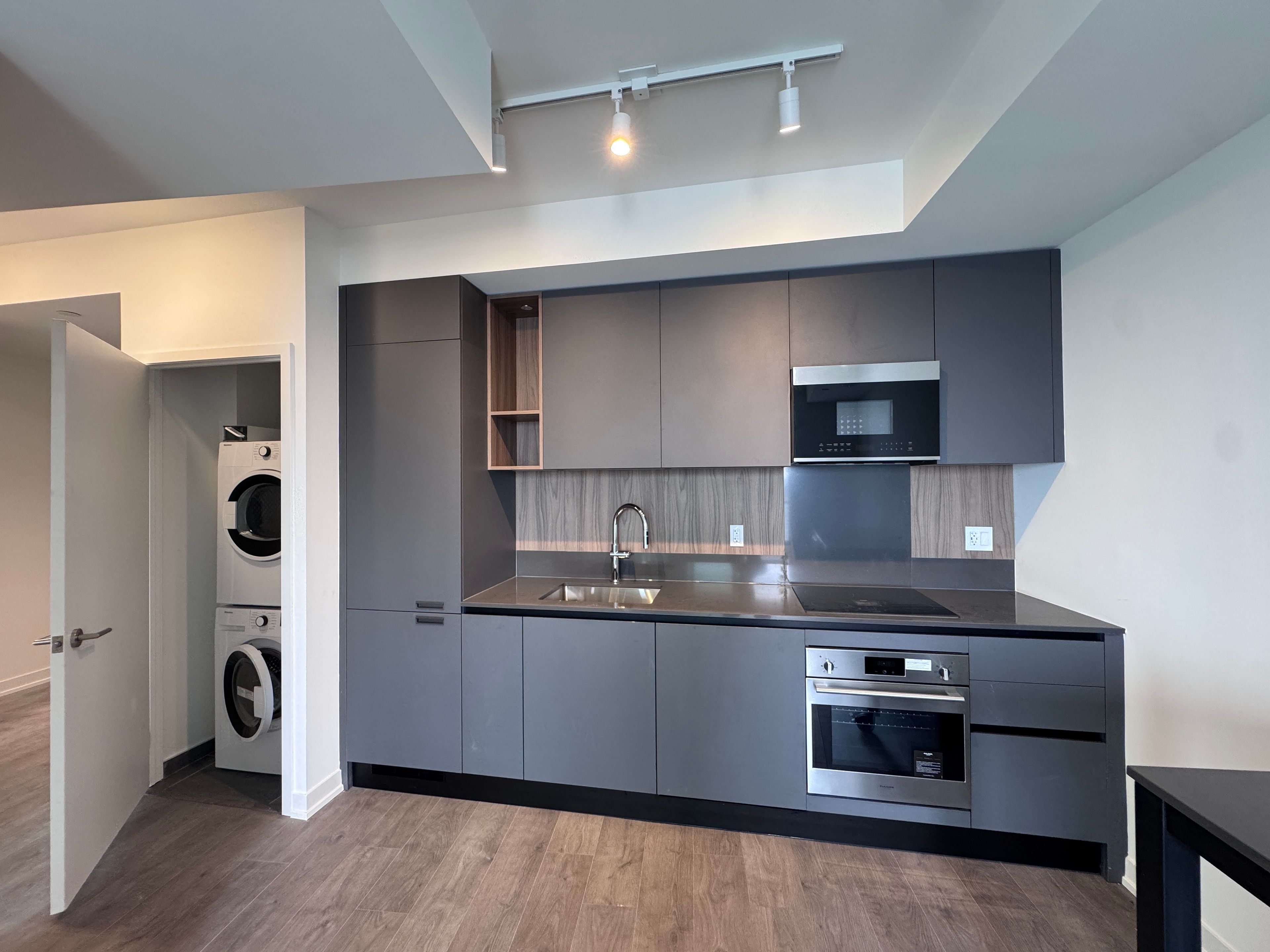 • Open-concept layout with 9-ft ceilings and stylish wide-plank flooring.
