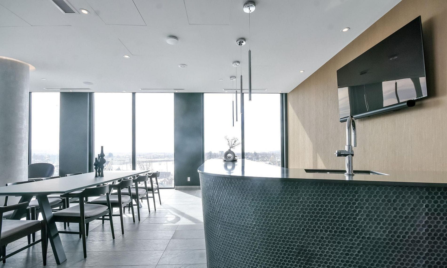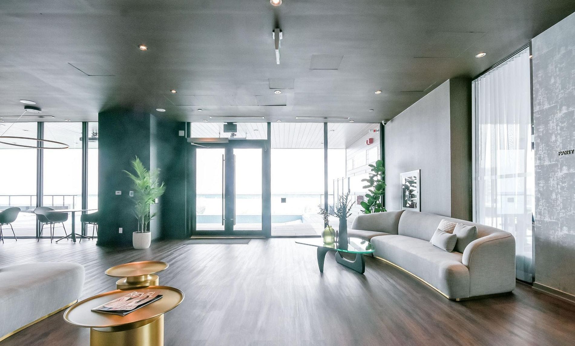• Open concept layout with floor-to-ceiling windows for natural light.