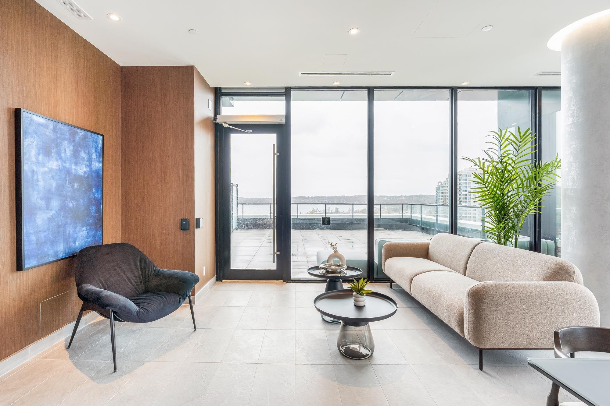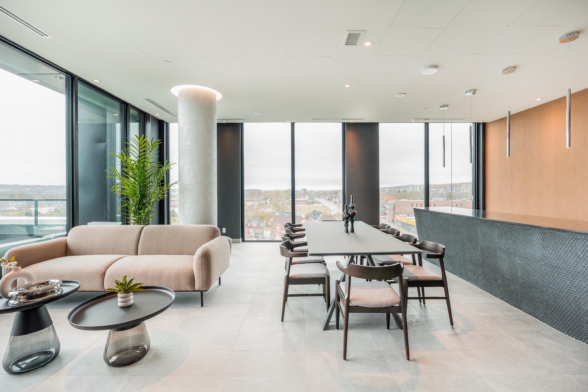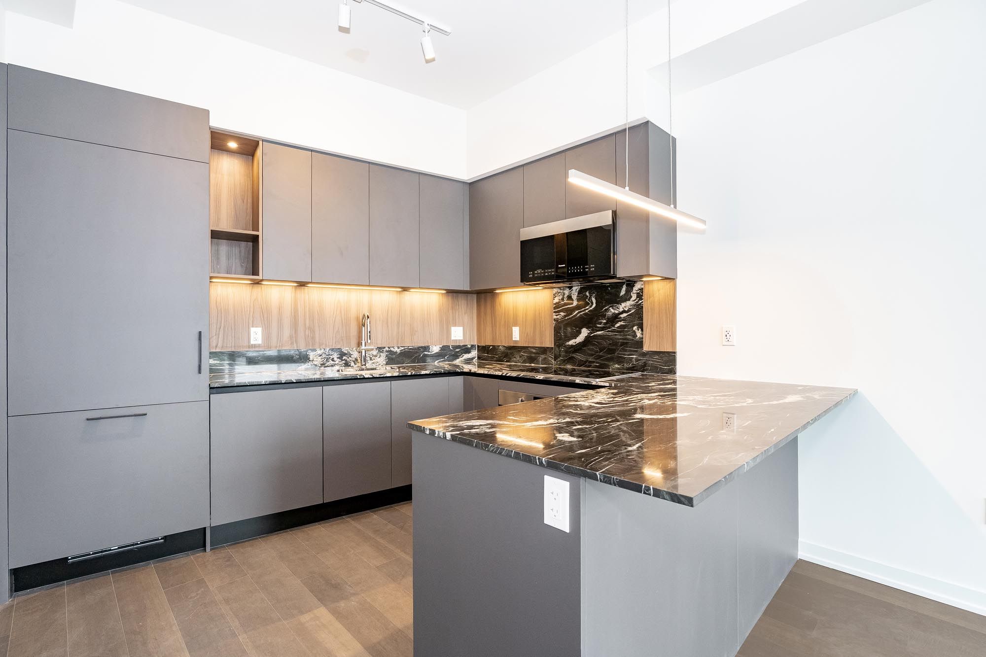 • Bright penthouse with 922 sq. ft. of modern living space and 10' ceilings.