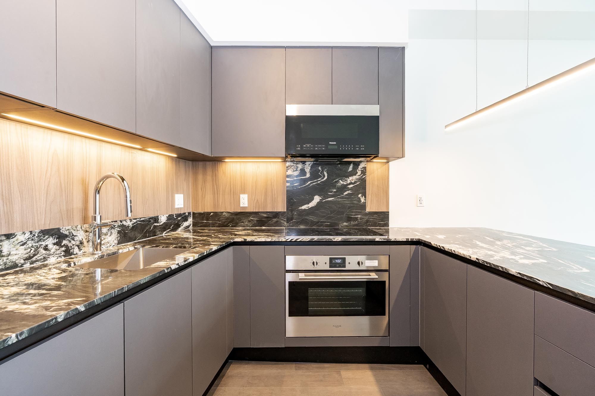 • Sleek kitchen with granite countertops and integrated appliances for easy cooking.
