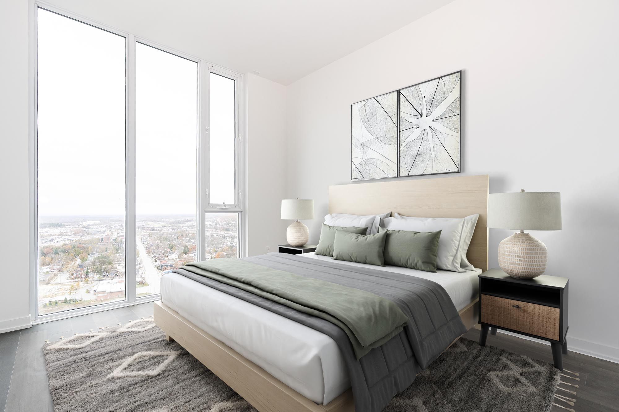 • Enjoy breathtaking sunsets from a spacious balcony with city skyline views.