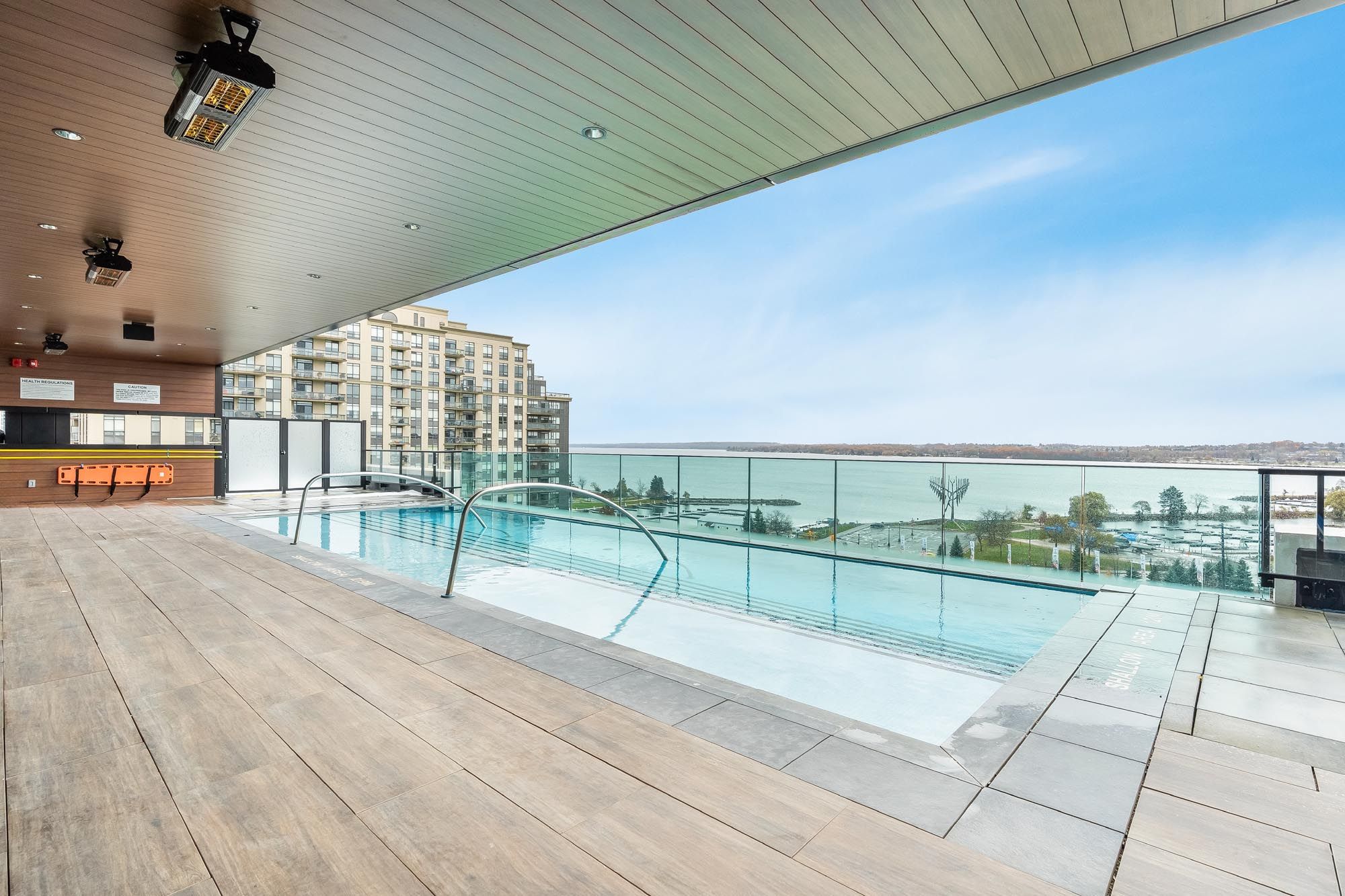 • Access world-class amenities including an infinity pool and fitness center.
