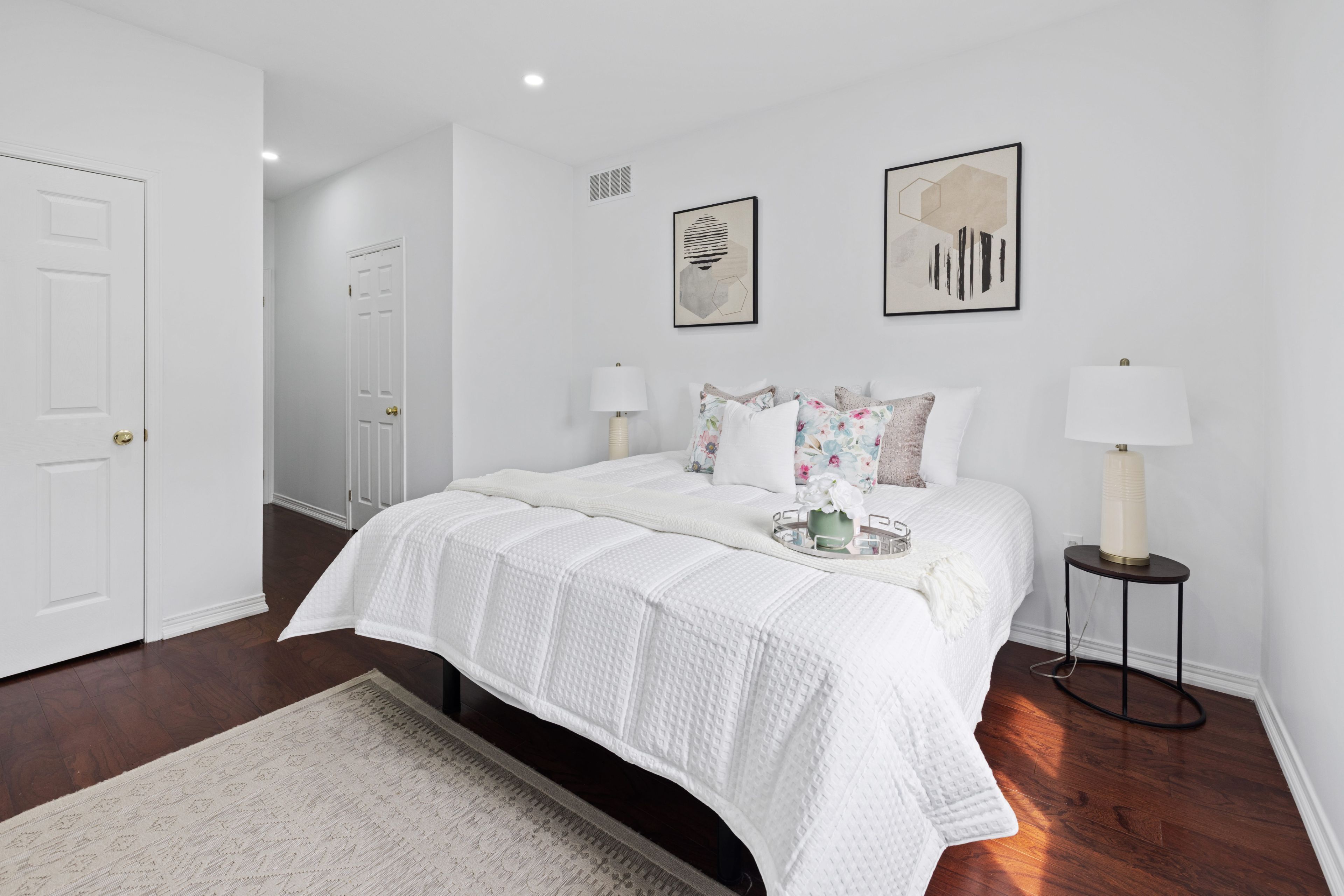 • Bright and open-concept layout with high ceilings and hardwood flooring.