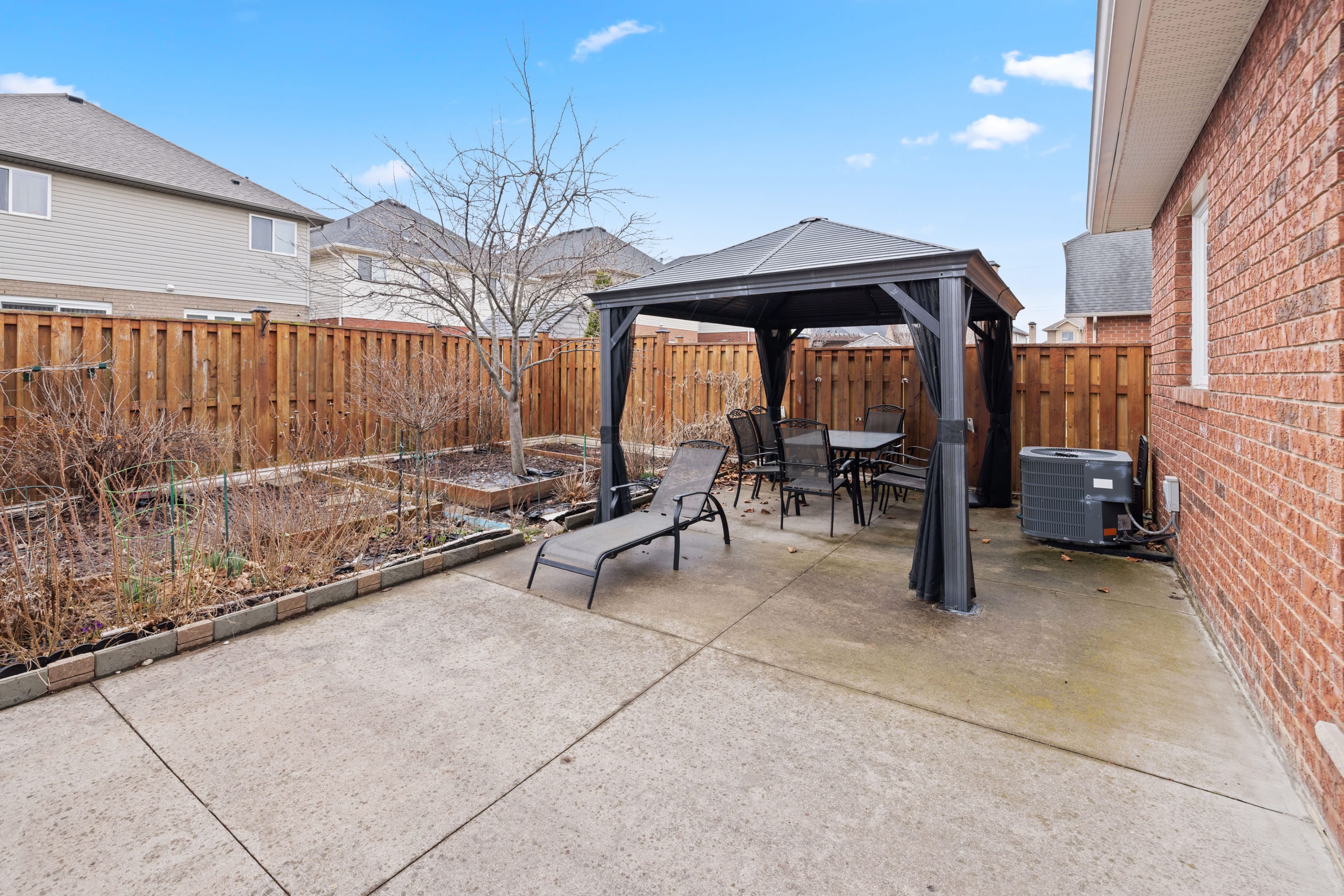 • Beautiful backyard featuring a gazebo and designated garden areas.