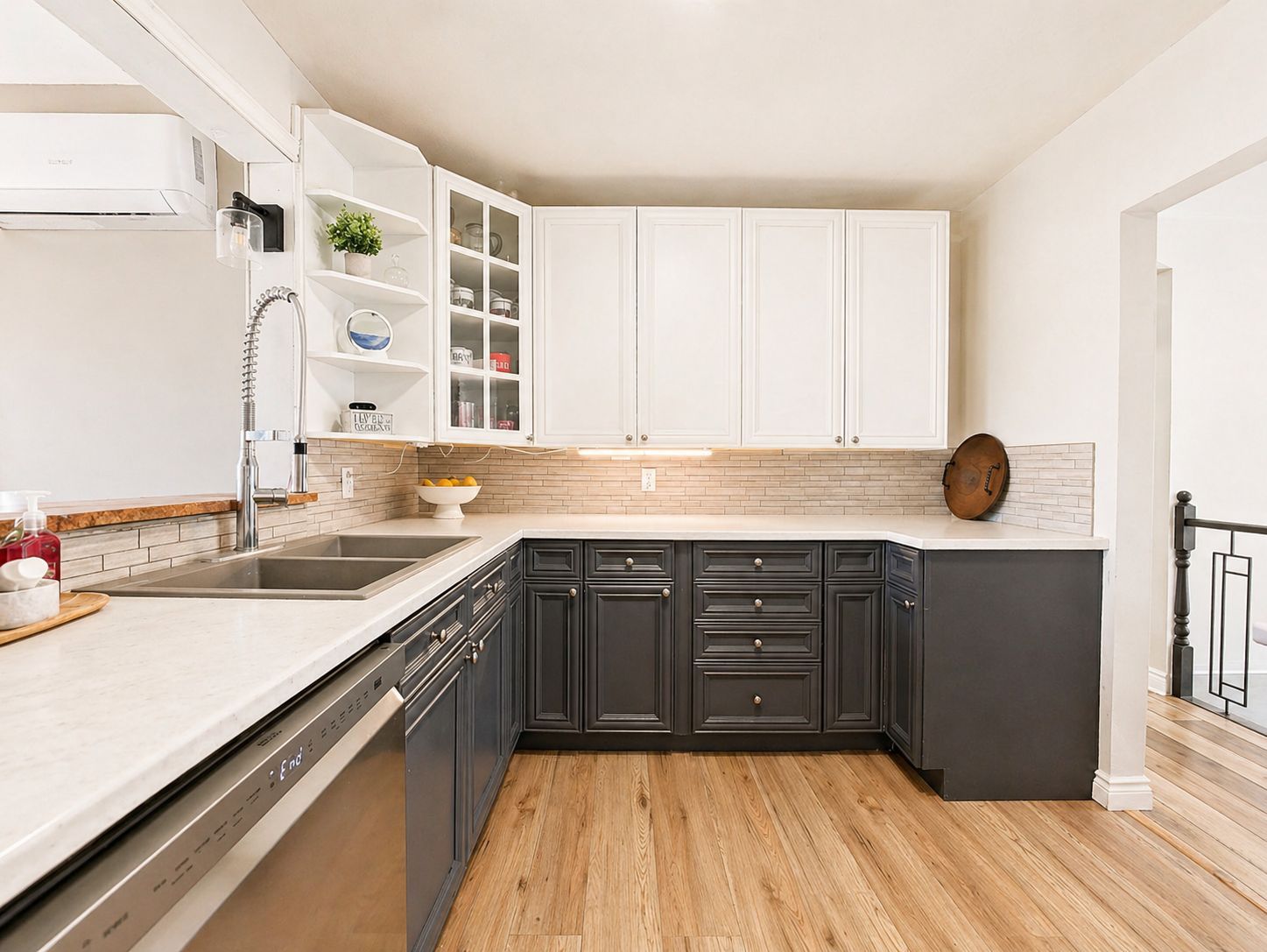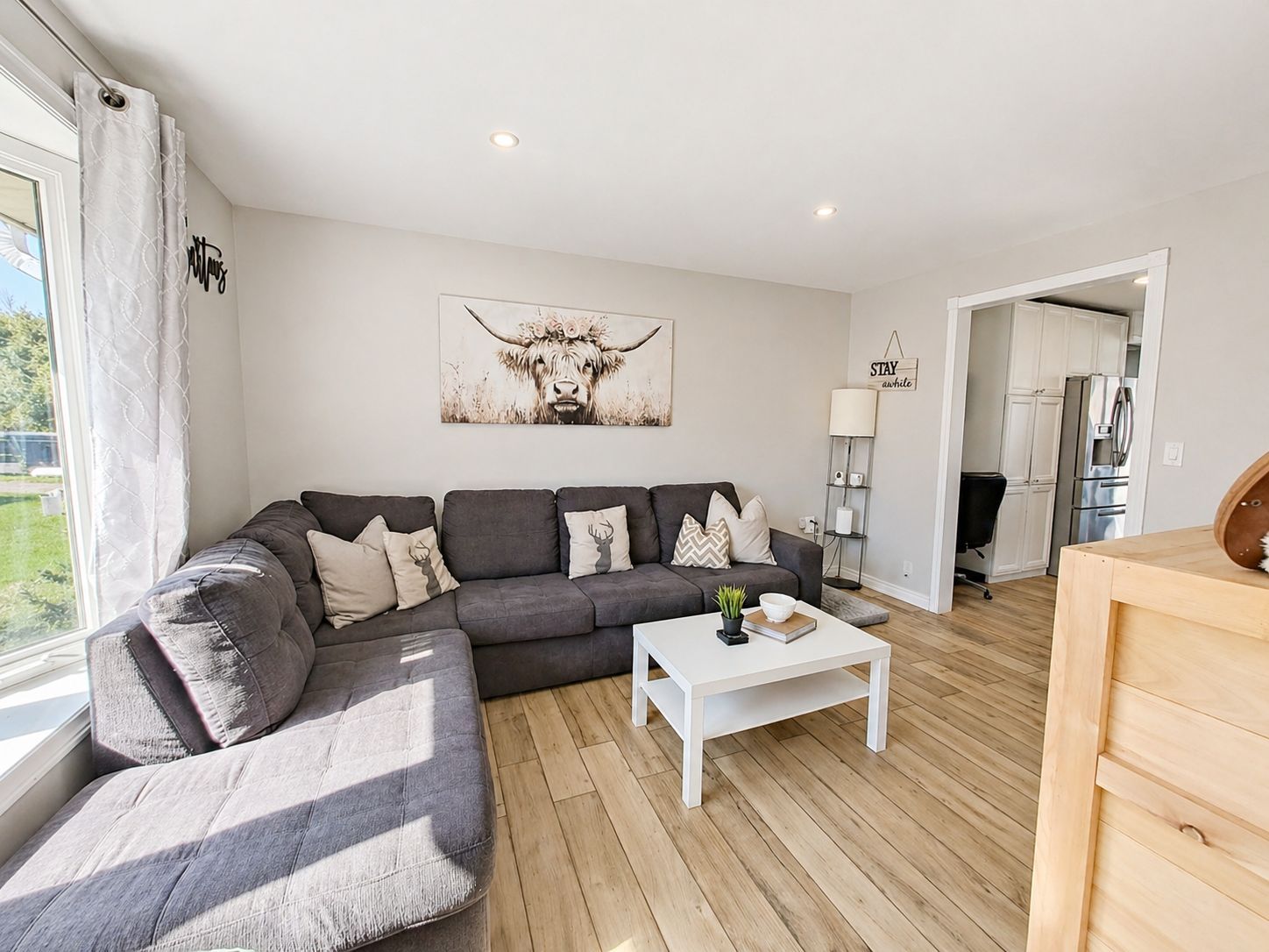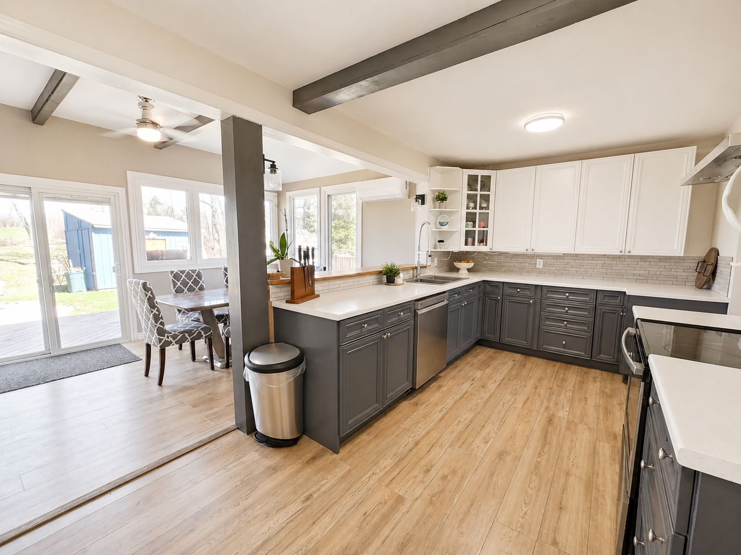• Open-concept kitchen with stainless steel appliances and ample storage.