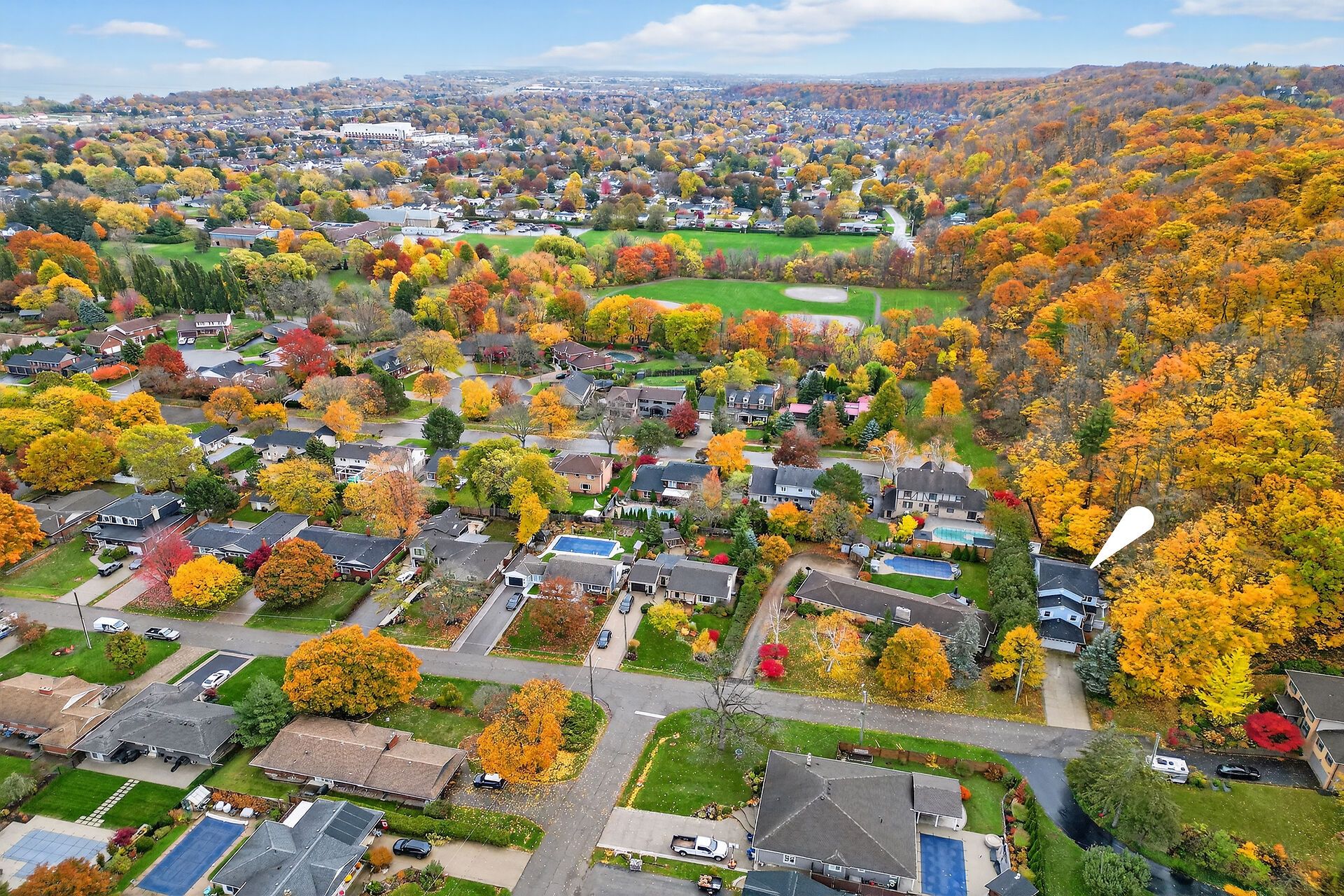 Welcome home to this stunning two-story gem nestled privately into the escarpenti in walking distance to the heart of downtown. This spacious 3+1 bedroom, 4-bath home offers the perfect blend of warmth, style, and flexibility for today's busy lifestyle. Step inside and fall in love with the bright sunroom, inviting family room (perfect as a home office, library, or extra bedroom), and three cozy fireplaces that add comfort and charm throughout. The kitchen, laundry rooms, and bathrooms have all been beautifully updated, giving the home a fresh, modern feel while maintaining its welcoming character. Huge garage, 25' x 19'. Outside, relax and entertain around your private pool, or simply take in the view - you're just moments away from all the downtown amenities you love: shops, cafes, parks, and more. Whether you're growing your family, working from home, or just looking for a special place with heart, this home truly has it all, even an electric vehicle charging station in garage