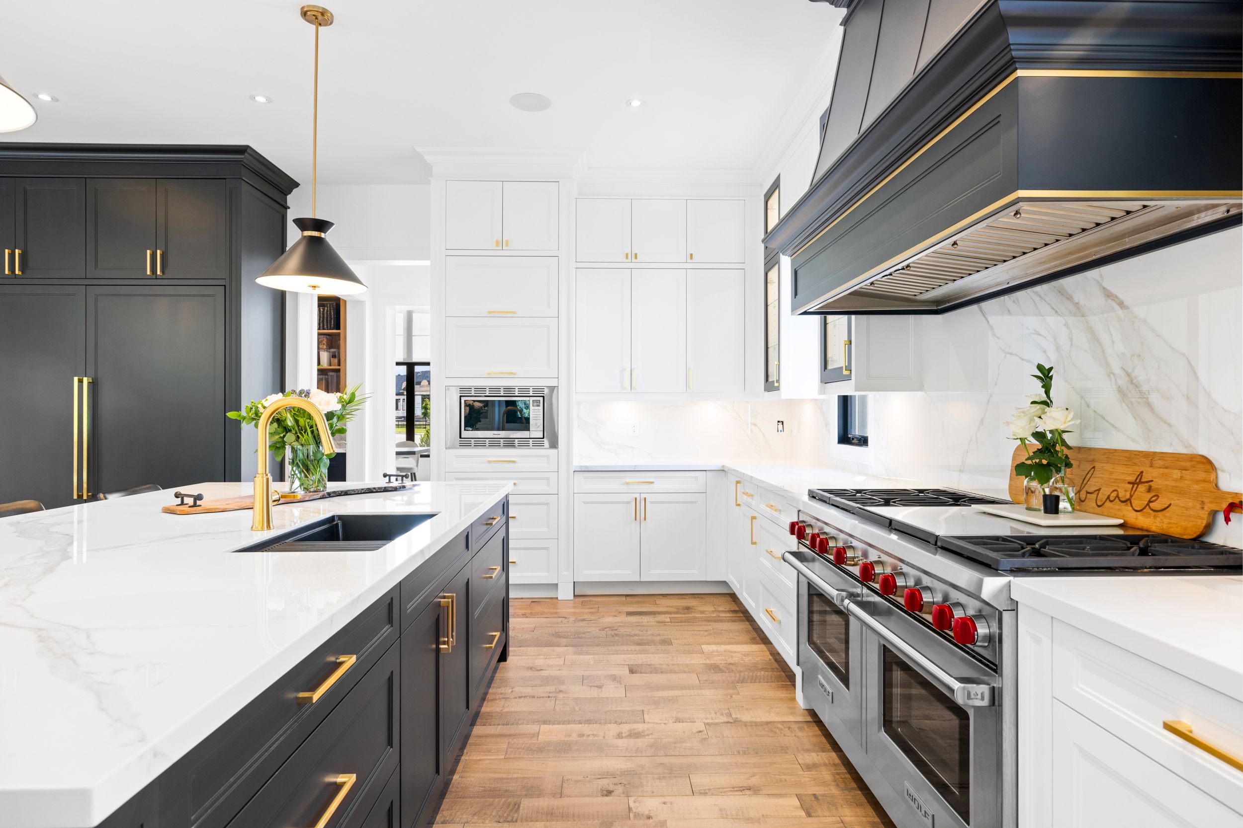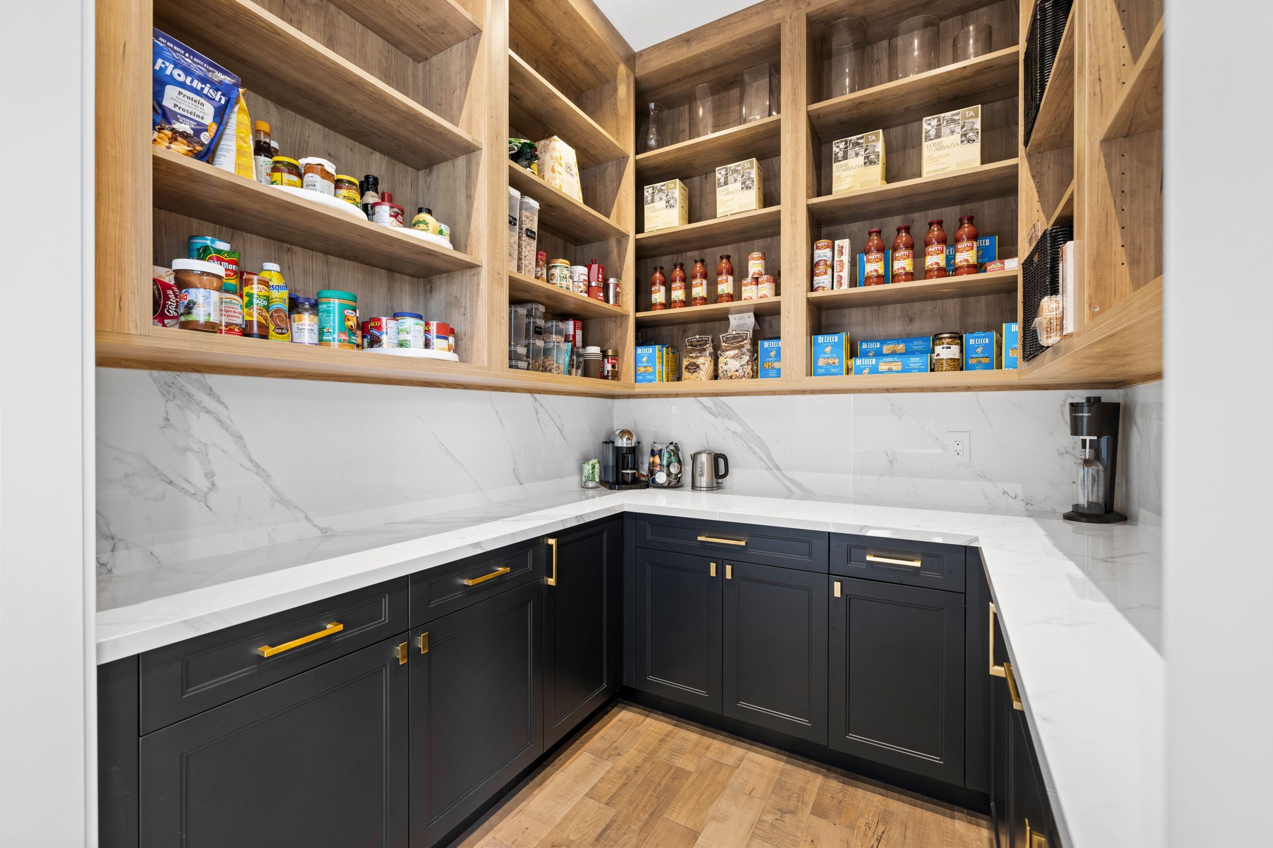 • Chef's kitchen features high-end appliances and two walk-in pantries.
