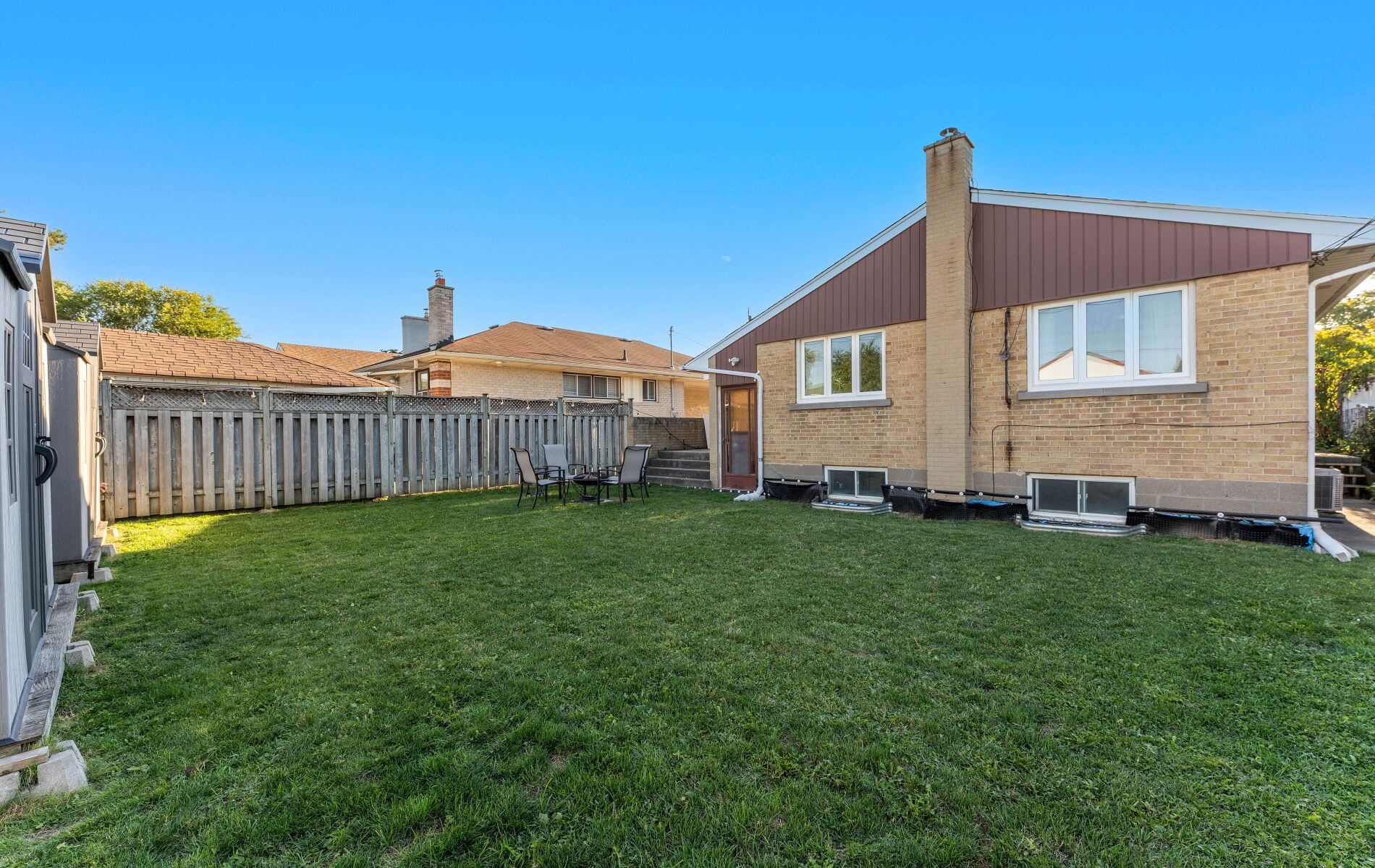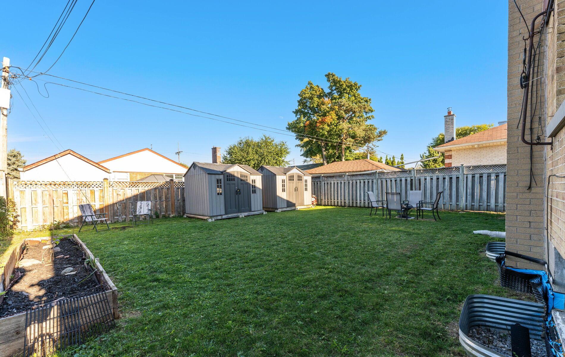• Spacious fenced backyard, ideal for gardening or play areas.