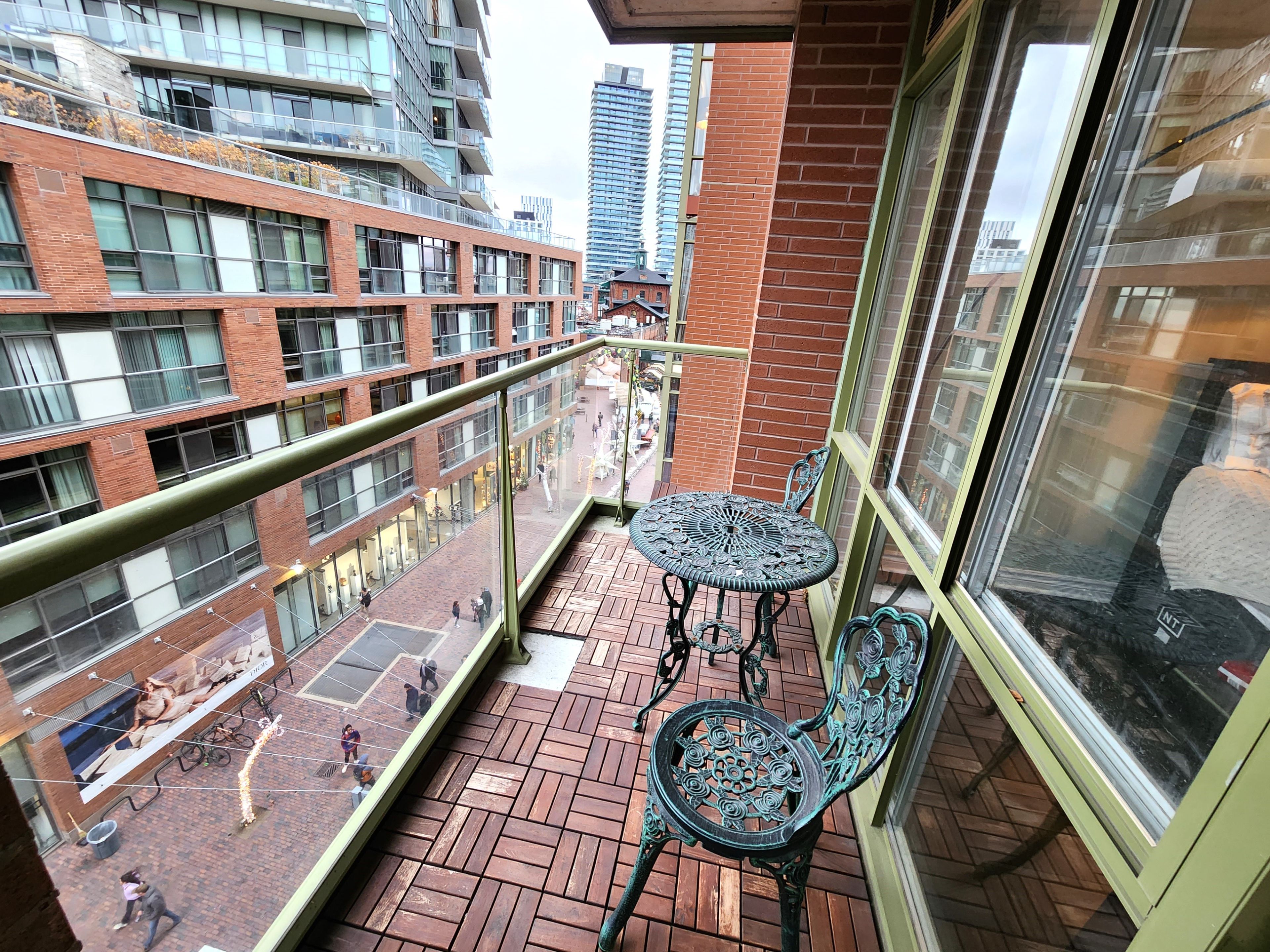 Set in the heart of the vibrant distillery district, this inviting 730 sq ft suite is perfect for those who love an energetic, walkable lifestyle. Featuring 1 bedroom, a versatile den, and1 parking space, the layout offers flexibility for modern living as the spacious den easily transforms into a stylish home office or welcoming guest retreat. Step out onto your private balcony and take in the charming views of the district's iconic cobblestone streets, where cafés, boutiques, and culture come alive right outside your door. From morning coffee runs to evening dinners, everything you need is just steps away. Think art galleries, theatres, trendy restaurants, and cozy coffee spots all woven into the neighborhood's unique character. Enjoy easy walks to some of toronto's most beloved destinations, including the st. Lawrence market, canary district, corktown common, sugar beach, and the ymca-making it effortless to blend city living with outdoor escapes. Commuting is equally convenient, with union station & downtown just a 30-minute walk away plus quick access to major routes like lakeshore boulevard, the gardiner expressway and the don valley parkway.*photos are from a previous listing*