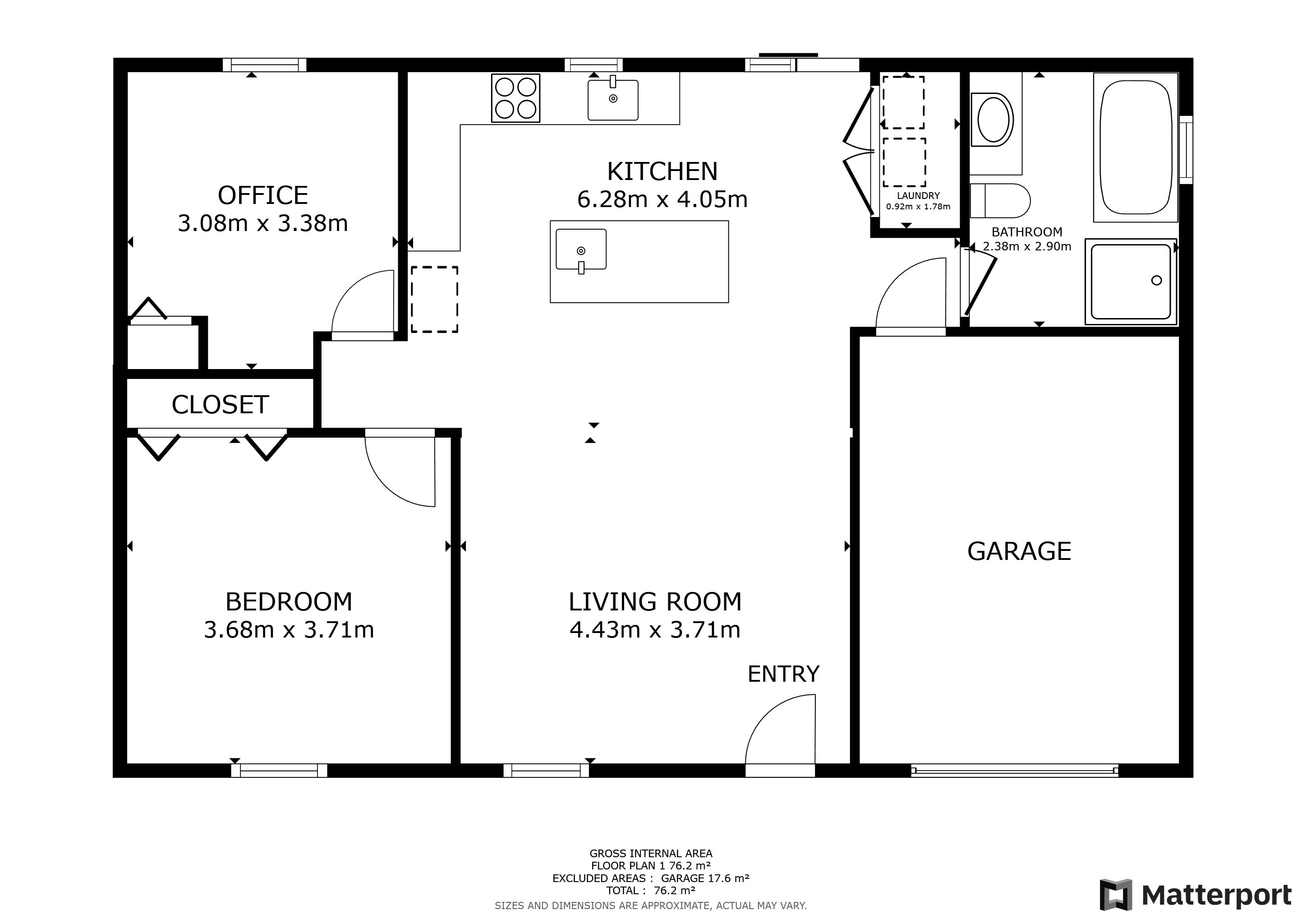 • Convenient one-level living with a huge bath and laundry closet.