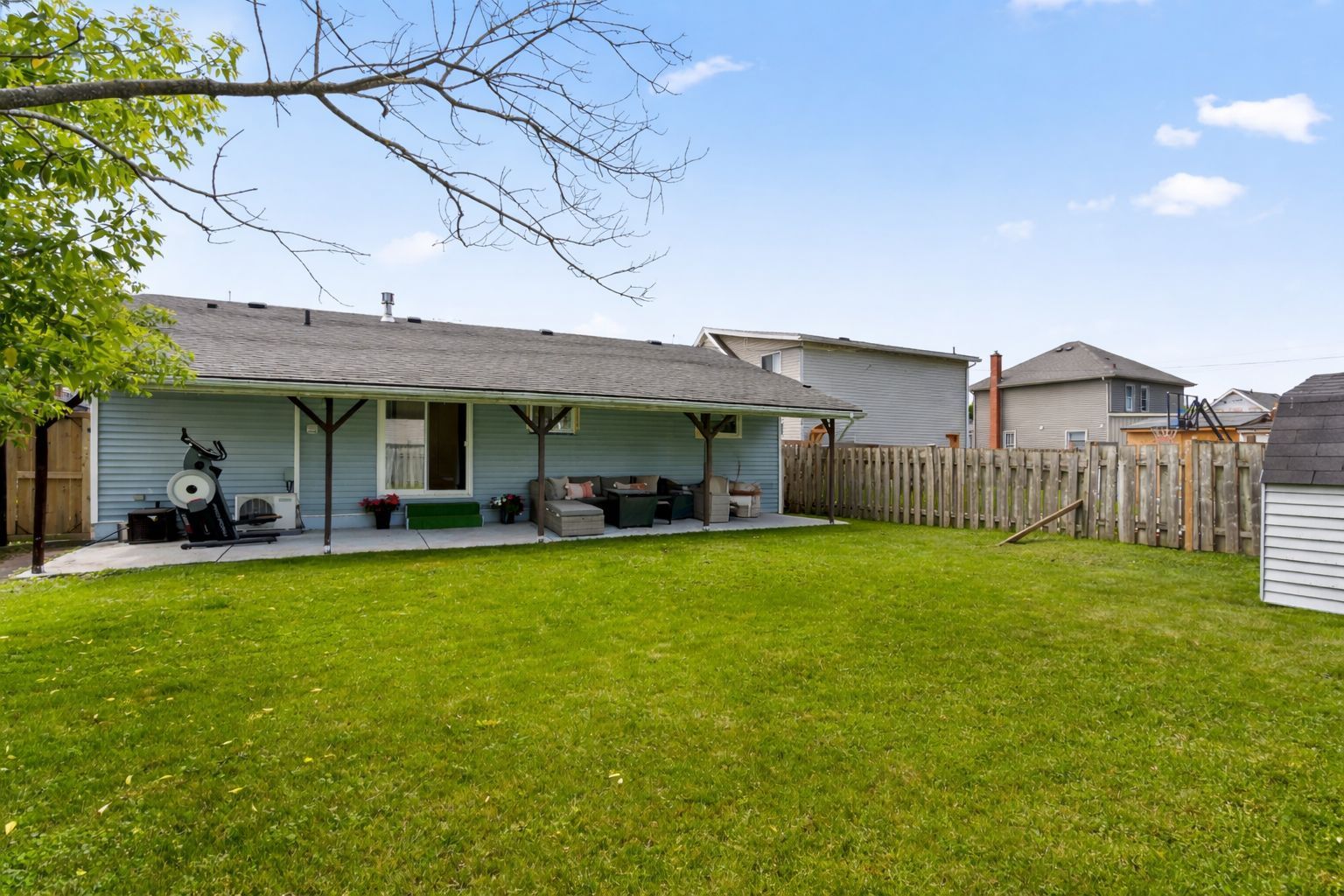 • Enjoy a fenced yard with a covered patio for outdoor relaxation.