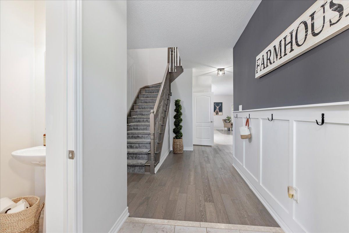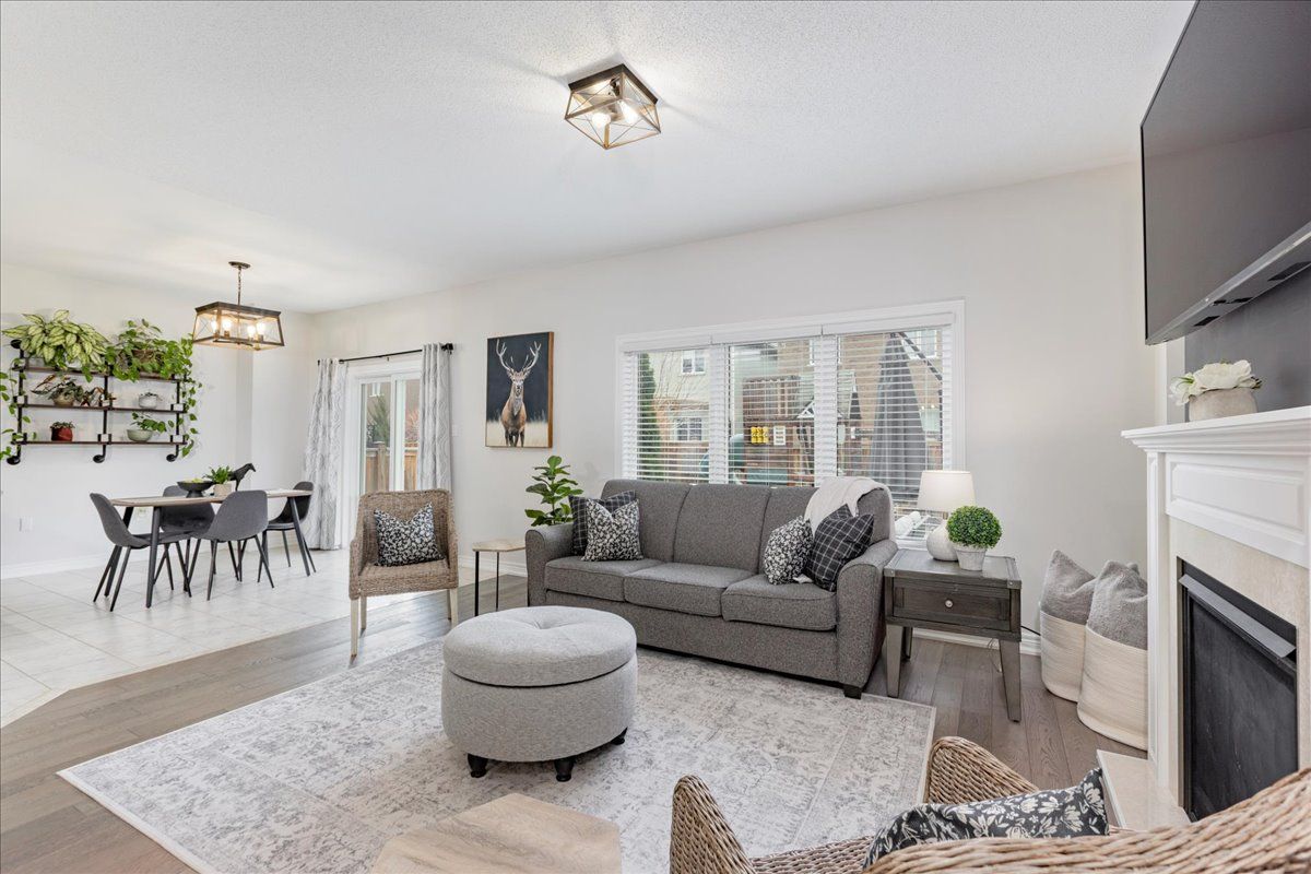 • Open-concept main floor with hardwood flooring and a cozy gas fireplace.