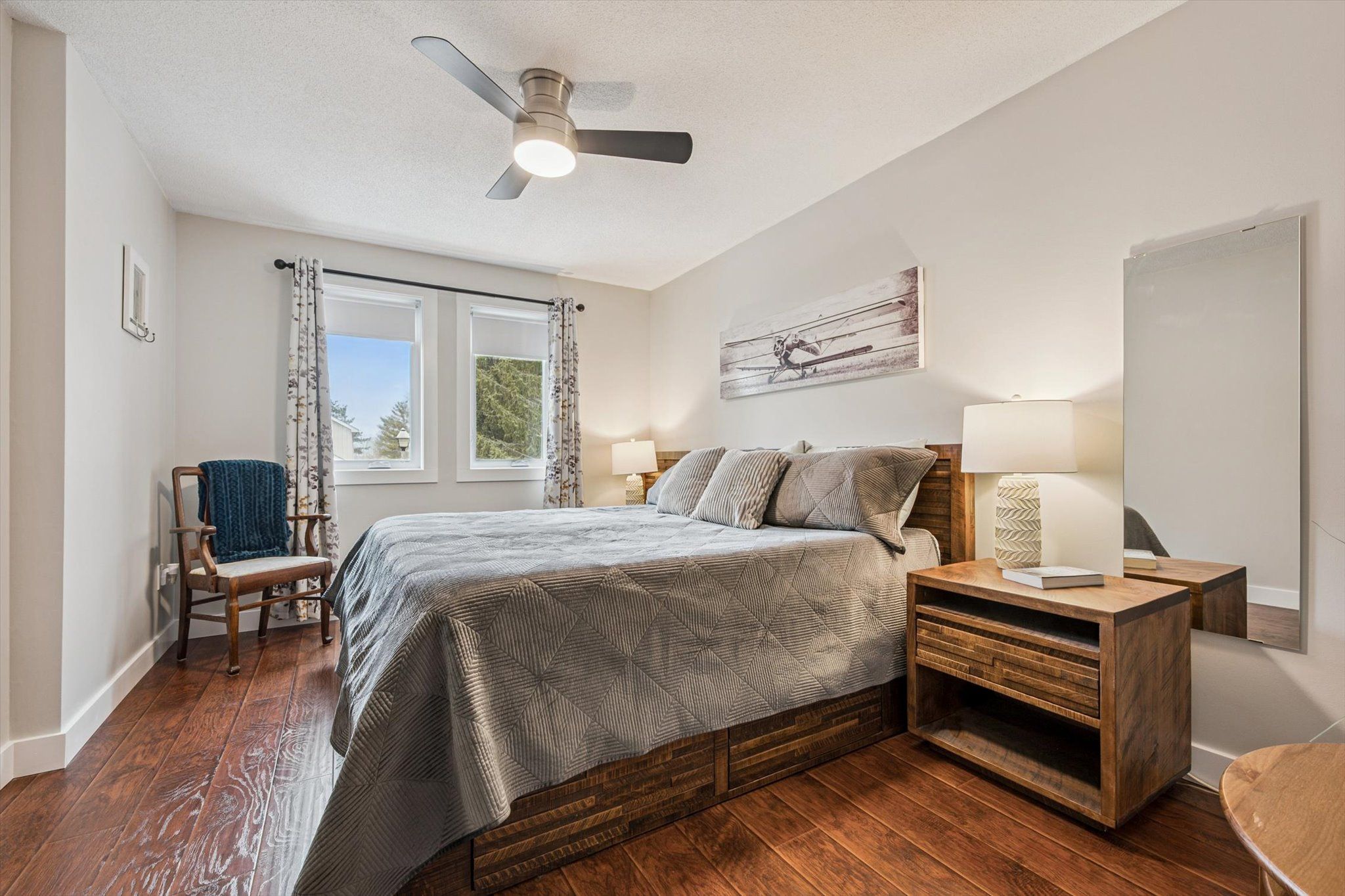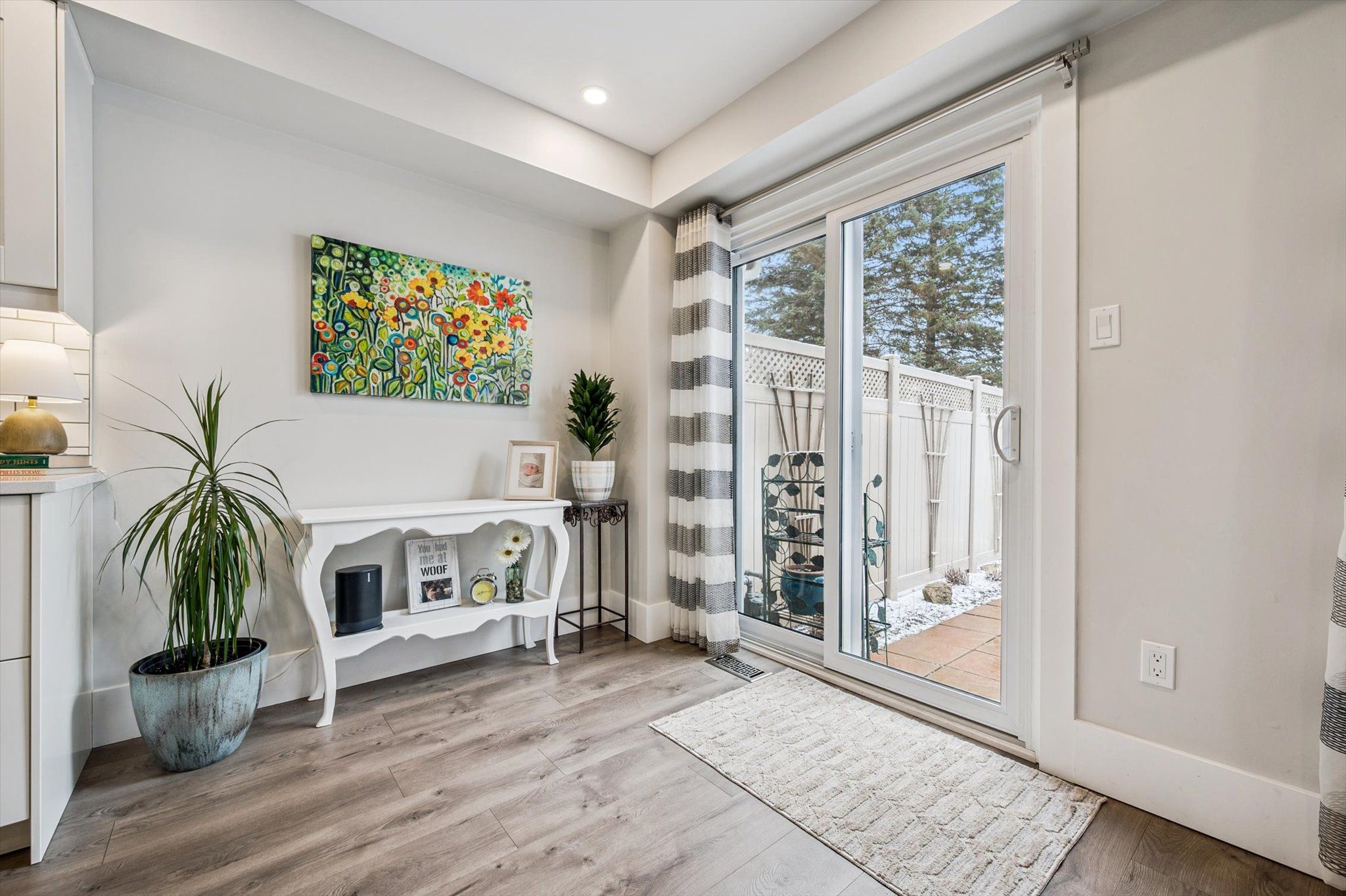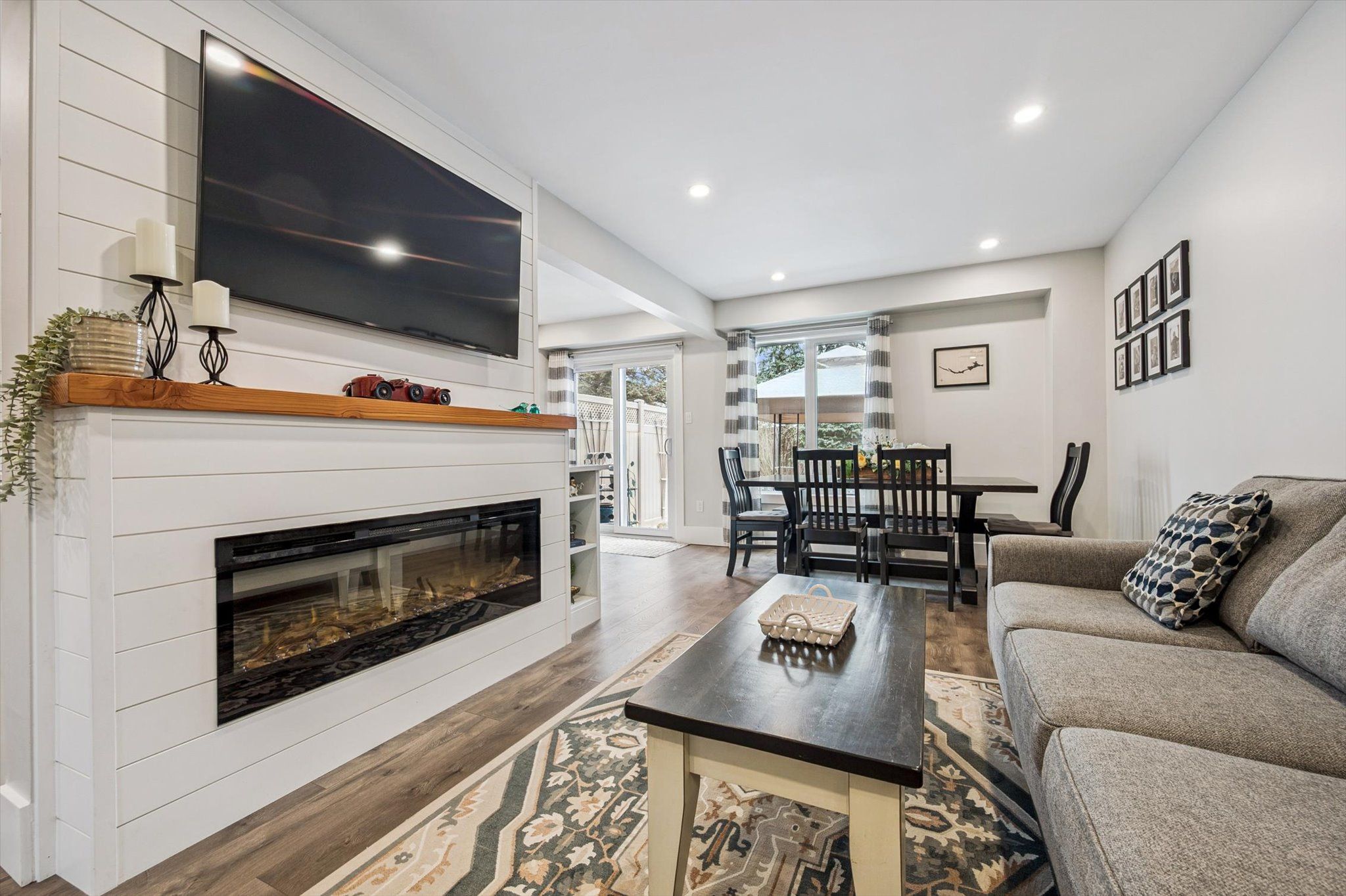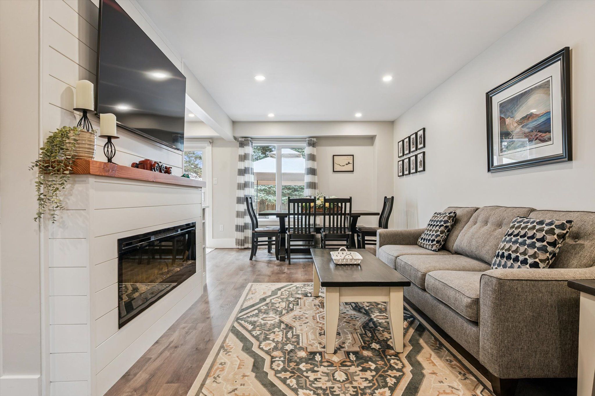 • Open concept living area with views of the yard and park.