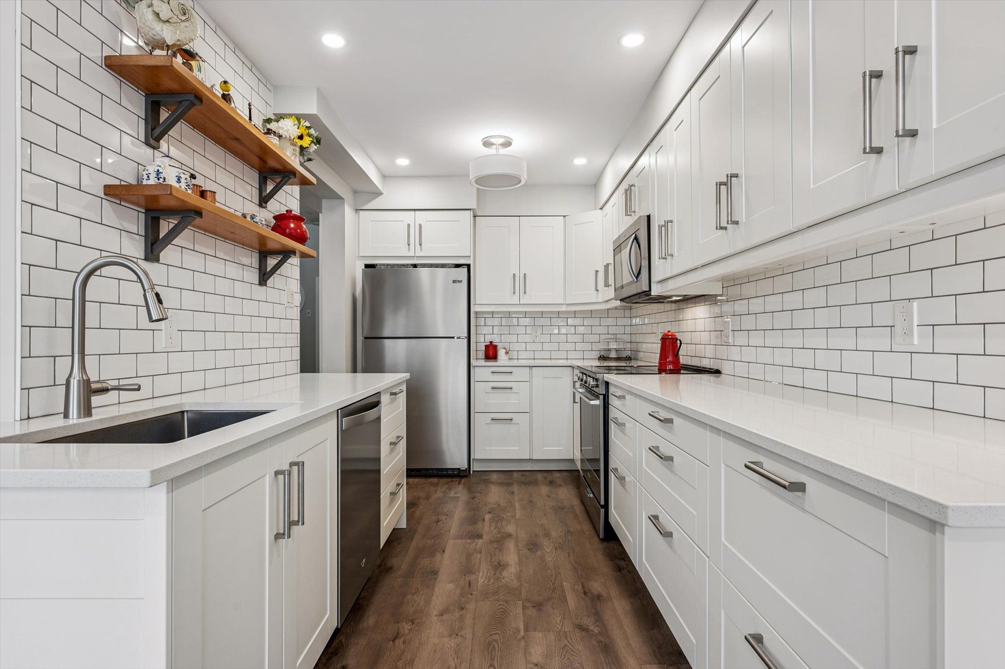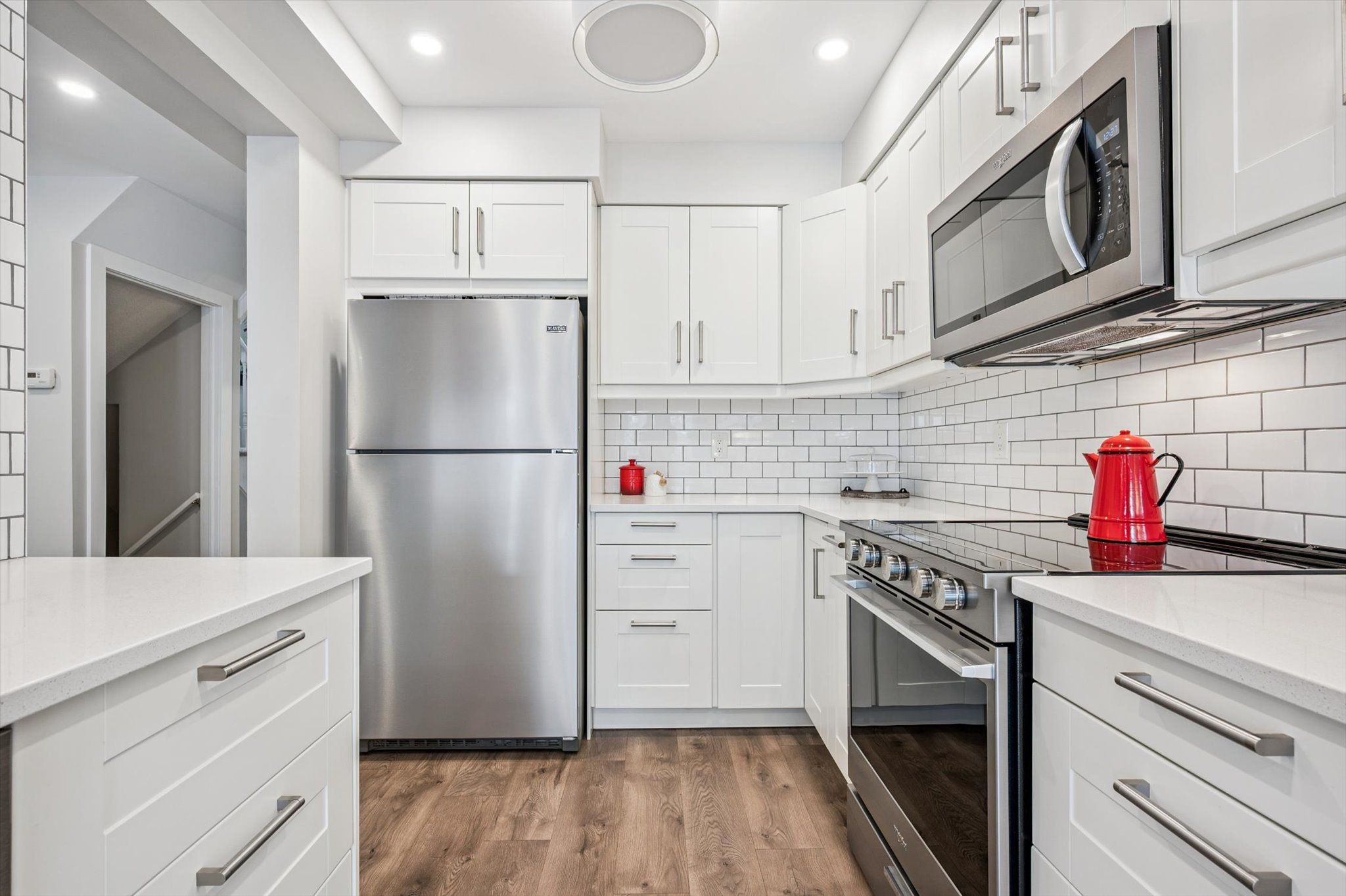 • Chef's kitchen equipped with high-end appliances and quartz countertops.