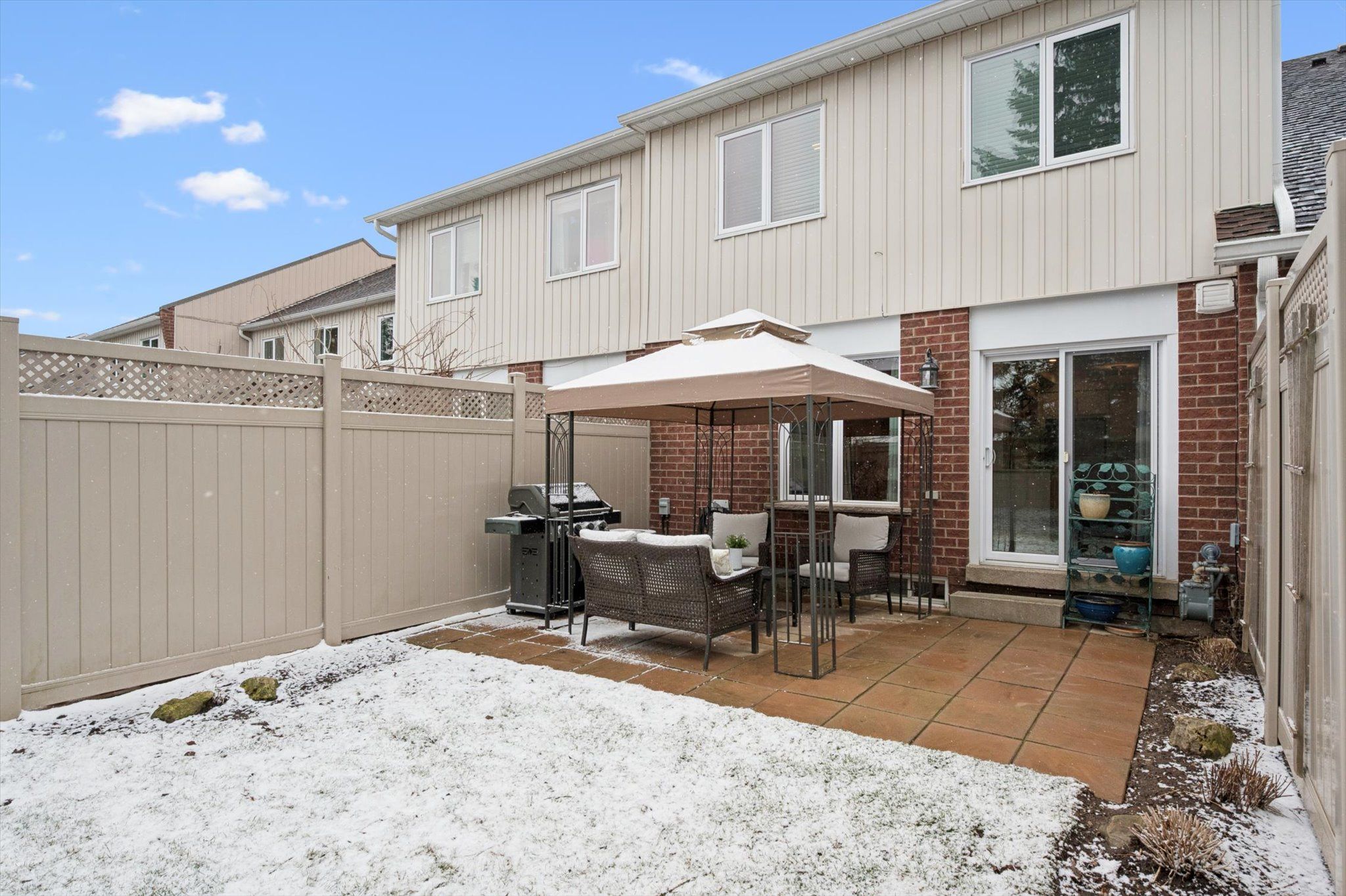 Welcome to this beautifully renovated townhouse, tucked into a serene and highly sought-after pocket of kortright hills. Offering over 1,400 square feet of graciously updated living space, this home blends modern finishes with an unbeatable location. Backing directly onto kortright hills public school, and just steps from mollison park, this setting is ideal for families and those who value both privacy and convenience. Walk into the spacious foyer with its sweeping architectural staircase, and be drawn into the open concept living area with views of the yard and park beyond. Completely updated in 2021, the kitchen truly is a chef's dream. Thoughtfully finished with beautiful cabinetry, high-end appliances, ample storage, and quartz countertops designed for both multi-tasking and baking for a crowd. Catch up with guests in the bright family room, or nestle in with your favourite shows beside the cosy fireplace. Wander outside onto the patio on those warm summer evenings and indulge in the peaceful seclusion. Upstairs, you'll find 3 spacious bedrooms and 2 full bathrooms, including a lovely primary ensuite. The primary also has a deep walk-in closet for extra convenience. Downstairs, you'll find a fully finished, recently carpeted family room ready for your personal style and vision, along with an updated 3-piece bathroom. Boasting new flooring and fresh paint throughout, offering functionality for both everyday living and entertaining, and set within an exclusive enclave... This property offers a rare sense of privacy while still providing easy access to shopping, schools, parks, and commuter routes. It really doesn't get much better than this. 2-39 ptarmigan affords the perfect opportunity to enjoy turnkey living in one of guelph's most desirable neighbourhoods. Let's get you in for a closer look soon.