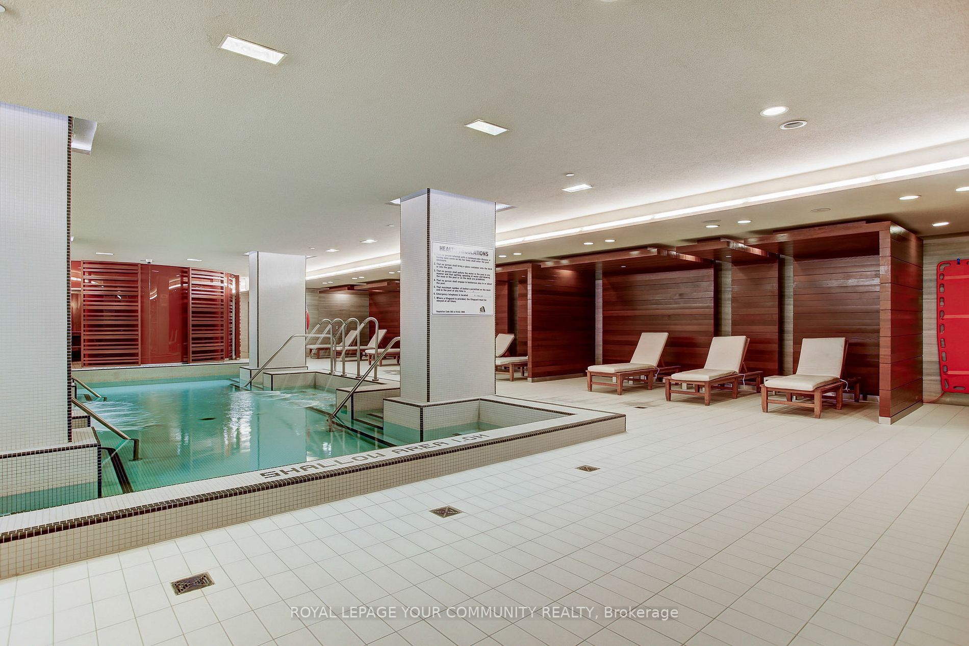 **water view unit** 11th floor - no balcony above the large tiled terrace.. Spacious & bright, floor to ceiling windows. 10' smooth ceilings with pot lights. Premium lake views, approx 800sqft, 1 bdrm & den with 2 baths: many builder upgrades: 7" handscraped oak floors, extended lacquered kitchen cabinets with marble counters & full backs lab with built in miele appliances. White carrera marble master bath with heated floors, 10' ceilings thru out with pot lights, all closets have b/i organizers, large tiled glass terrace. Floor to ceiling windows **virtual tour**triple a amenities in building... Muskoka living in downtown toronto. Indoor/outdoor pool, gym, sauna, visitor parking, movie room, games room, billiard room. 24/7 security*** virtual tour****