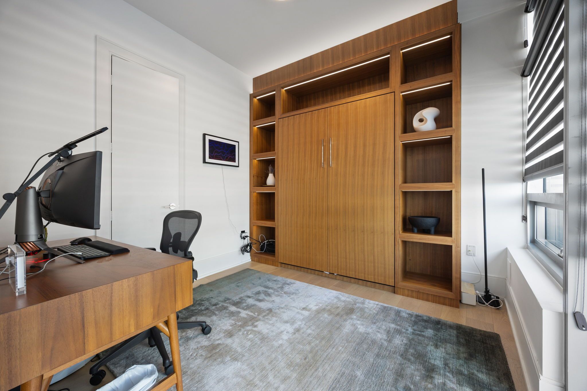 • Flexible second bedroom offers a Murphy bed for guests or office use.
