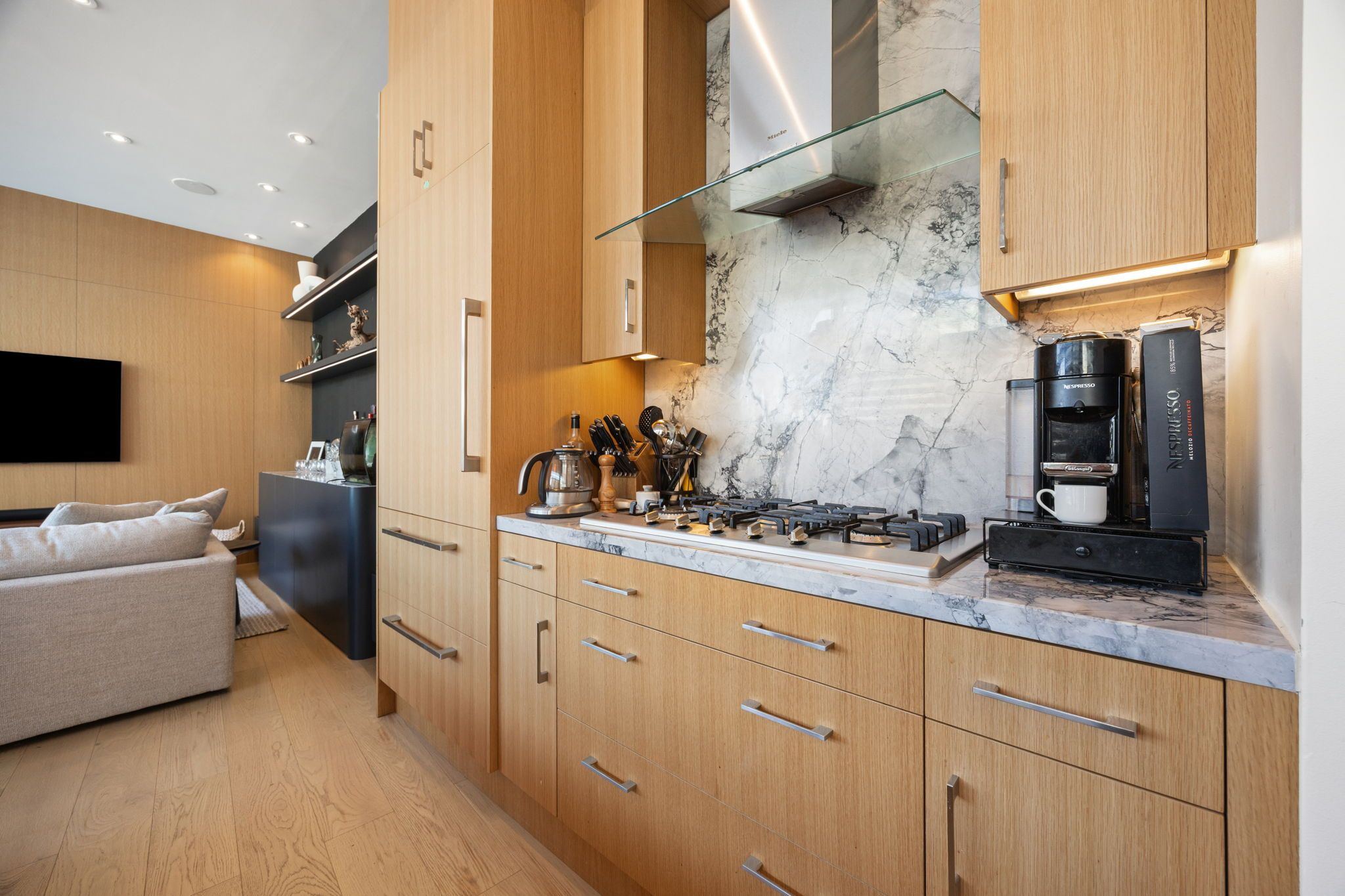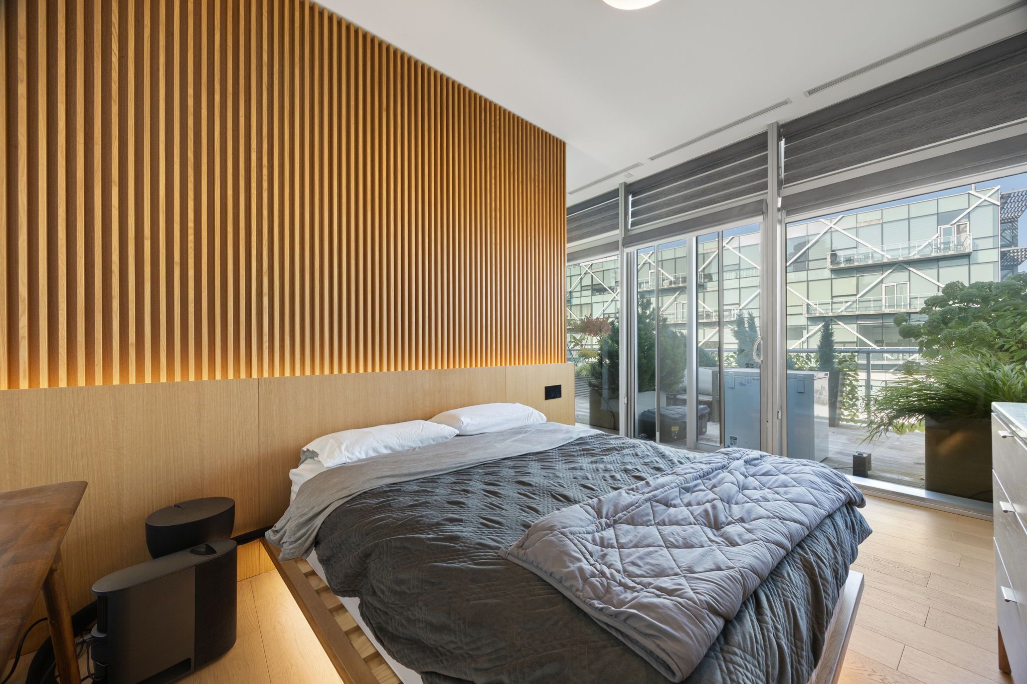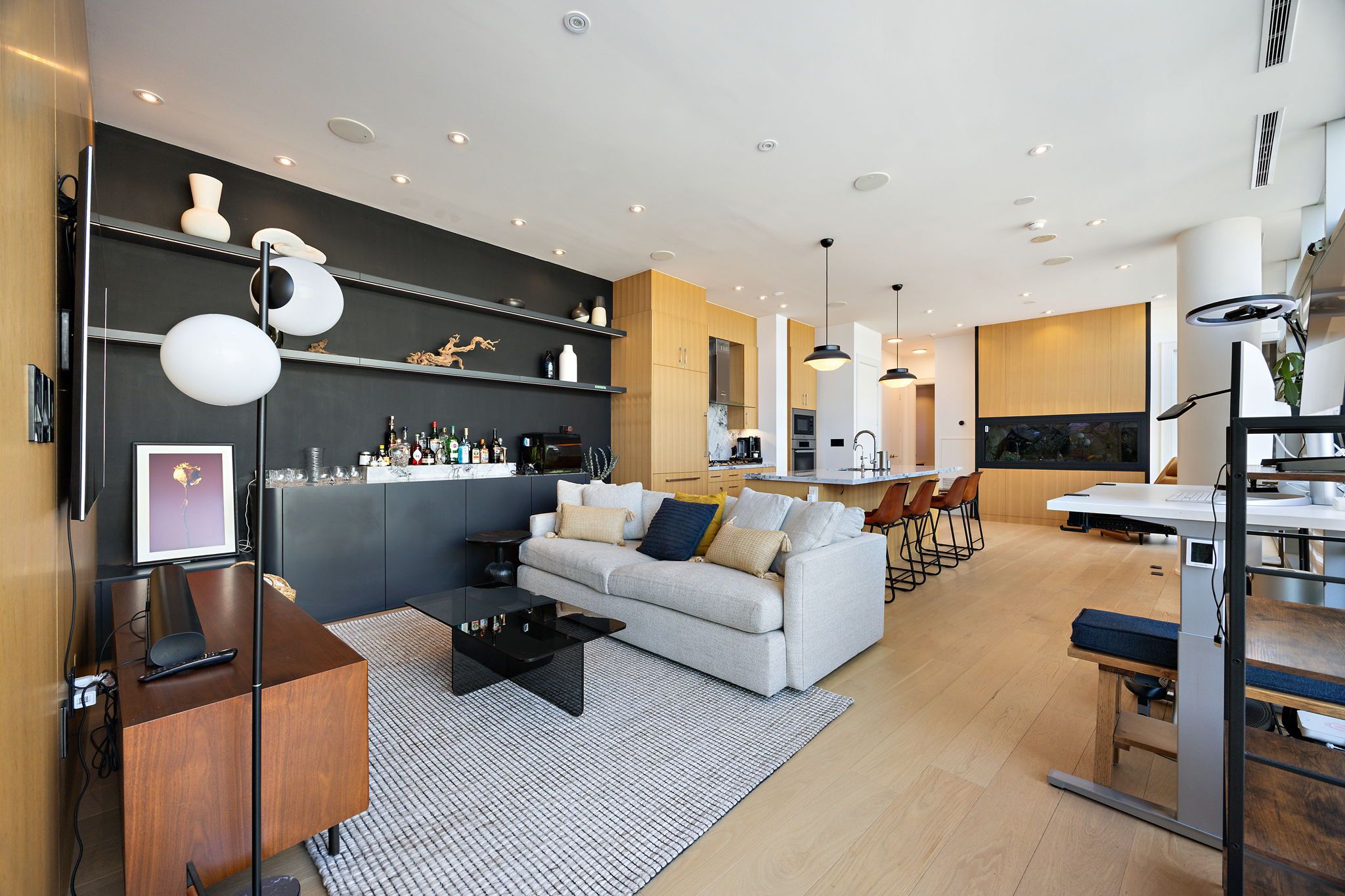Welcome to suite 1202 at 39 queens quay east, a rare and beautifully renovated penthouse waterfront residence offering over 500 sq ft of private terrace space with sweeping lake views. This exceptional 2 bedroom, 2 bathroom suite has been fully redesigned with high end finishes, custom millwork, and thoughtfully integrated built ins, creating a truly turnkey luxury living experience. The fully furnished interior features curated designer pieces, wide plank hardwood floors, 10 ft ceilings, integrated lighting, built in speakers, and bespoke cabinetry throughout. The living space includes a custom built-in bar and a striking 200 gallon aquarium that creates a unique and elegant focal point. The kitchen is designed for both entertaining and everyday living, featuring premium appliances including sub zero refrigeration, miele dishwasher, fully integrated cabinetry, and a massive 10 ft island that serves as the centerpiece of the open concept space. The primary bedroom features a custom built-in bed with integrated lighting, floors, a walk in closet and heated bathroom floors. The second bedroom includes a built-in murphy bed, allowing the space to function easily as a guest room, home office, or flexible living area. One of the most remarkable features is the expansive 500+ sq ft private terrace overlooking lake ontario. Designed as an extension of the living space, it features a built in bbq, outdoor cooking area, and lounge furnishings, ideal for entertaining, outdoor dining, or relaxing while enjoying waterfront views. Residents enjoy luxury amenities including 24 hour concierge, indoor and outdoor pools, fitness centre, sauna, party room, guest suites, and visitor parking. Located steps to sugar beach, st lawrence market, union station, the financial district, waterfront trails, restaurants, and cafés. Includes one parking space and one locker. Second parking space available if required.