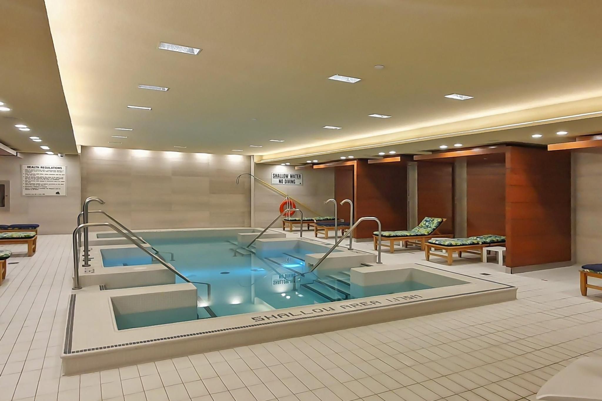 Experience elevated waterfront living in this bright 2-bedroom, 2-bath corner residence at the iconic pier 27. Offering impressive 10 ft ceilings, floor-to-ceiling windows, and two balconies with serene nw exposure, this suite blends comfort with contemporary style. The primary bedroom includes double closets and a luxurious 4-piece ensuite with heated flooring. The modern kitchen is upgraded with quartz counters and a 4-burner gas cooktop. Pier 27 is celebrated for its exceptional amenities, including indoor and outdoor pools, a fitness centre, spa, steam room, theatre, guest suites, 24-hour concierge and secure parcel system. Located steps from the lake, sugar beach, dining, shopping (loblaws & lcbo across the street), transit, and major highways-this home offers an unmatched downtown lifestyle in a highly sought-after community.