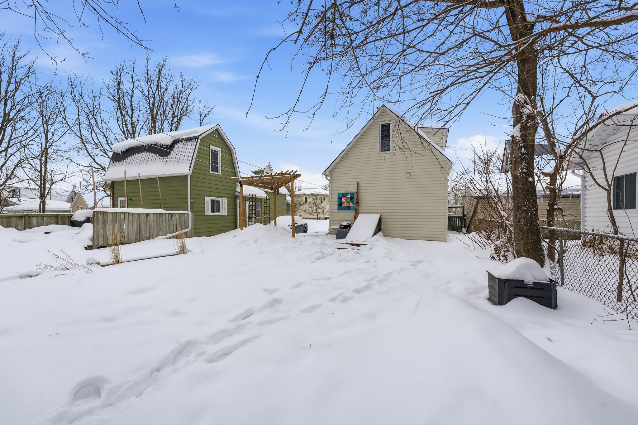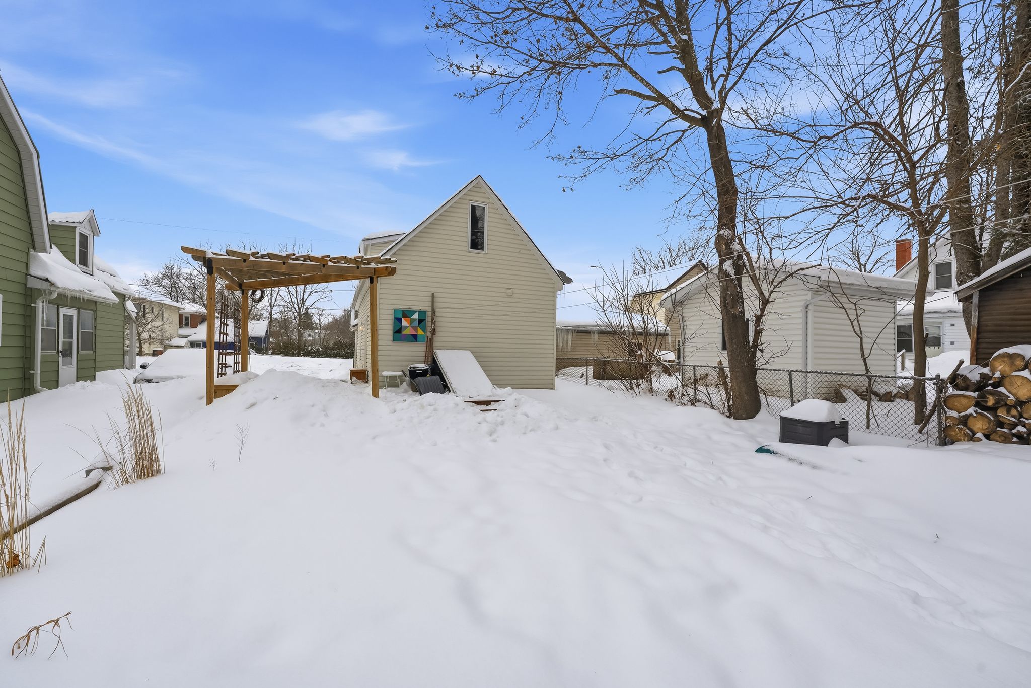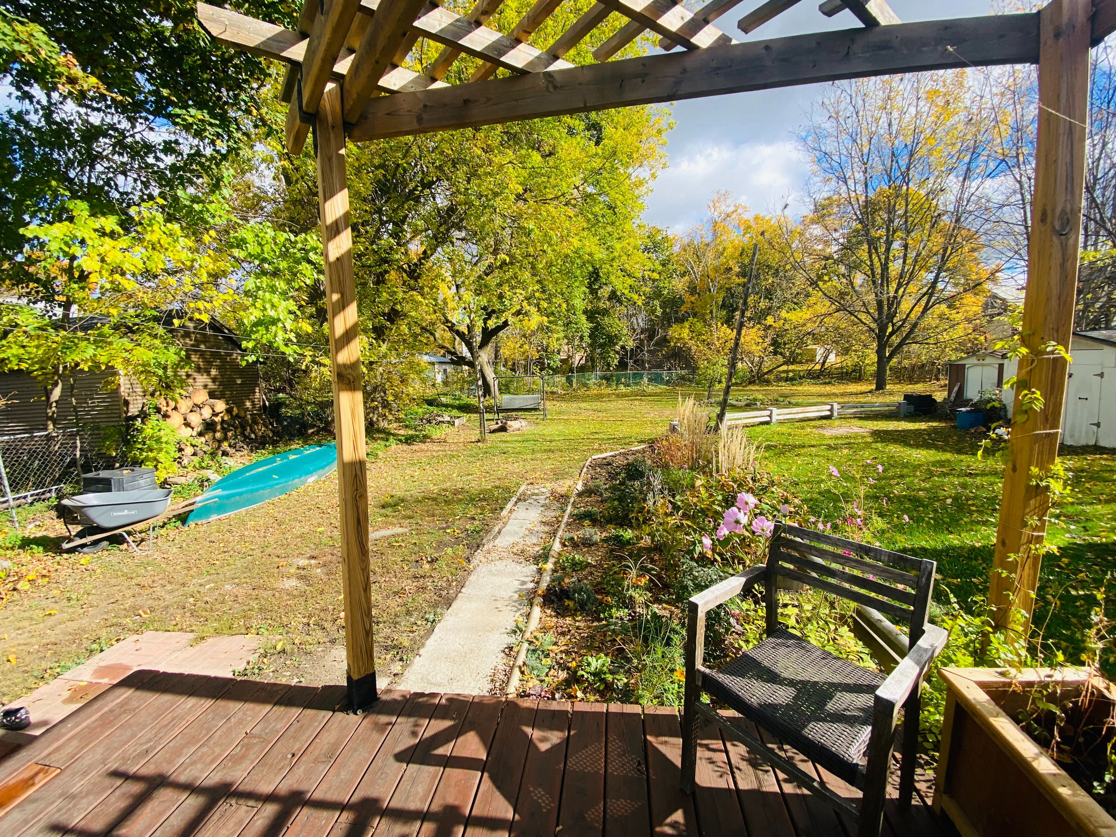 • Oversized backyard with lush gardens and a cozy firepit.