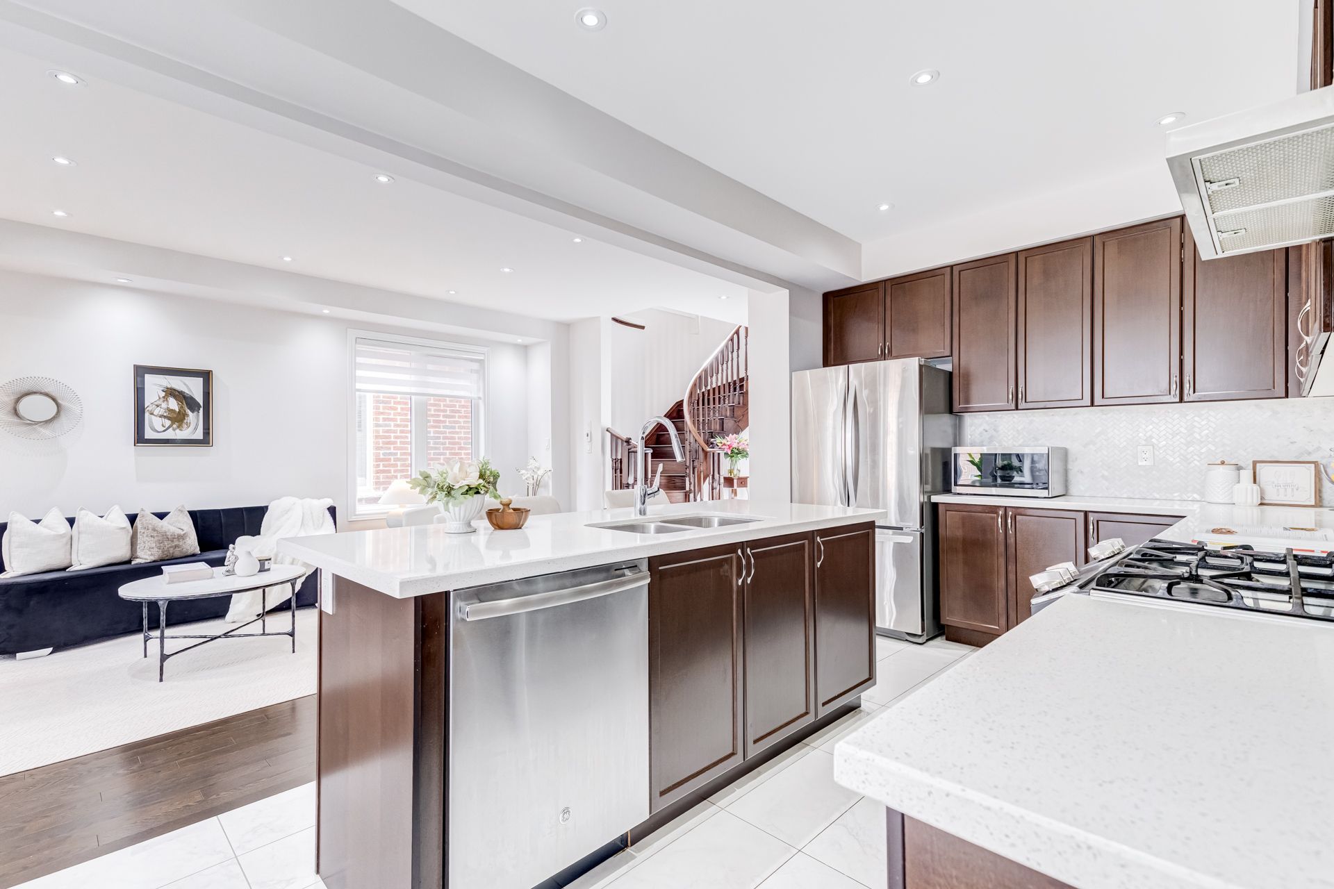 Welcome to 39 rain forest lane - an exceptional end-unit townhome that truly has it all! Nestled in the highly sought-after chateaus community in georgetown, this beautifully maintained home features 3+1 spacious bedrooms and 4 bathrooms, offering the perfect blend of comfort and functionality. Boasting approximately 2,000 sq. Ft. Above grade, plus a professionally finished basement, this home provides ample living space for families of all sizes. The lower level includes a large recreation room, a fourth bedroom, and a private 3-piece ensuite-ideal for guests or extended family. The main floor showcases a bright, open-concept layout with elegant hardwood flooring, quartz countertops, and an abundance of natural light throughout. Upstairs, you'll find three generously sized bedrooms, convenient second-floor laundry, and two full bathrooms. Additional highlights include a private driveway, a potential separate entrance to the basement, and a natural gas line in the backyard-perfect for summer bbqs. The outdoor space also features an extended patio/deck area, ideal for entertaining family and friends. Conveniently located close to schools, parks, shopping, and all essential amenities, this is an incredible opportunity to own a stunning home in a prime location. Don't miss your chance to make this beautiful property your new home!