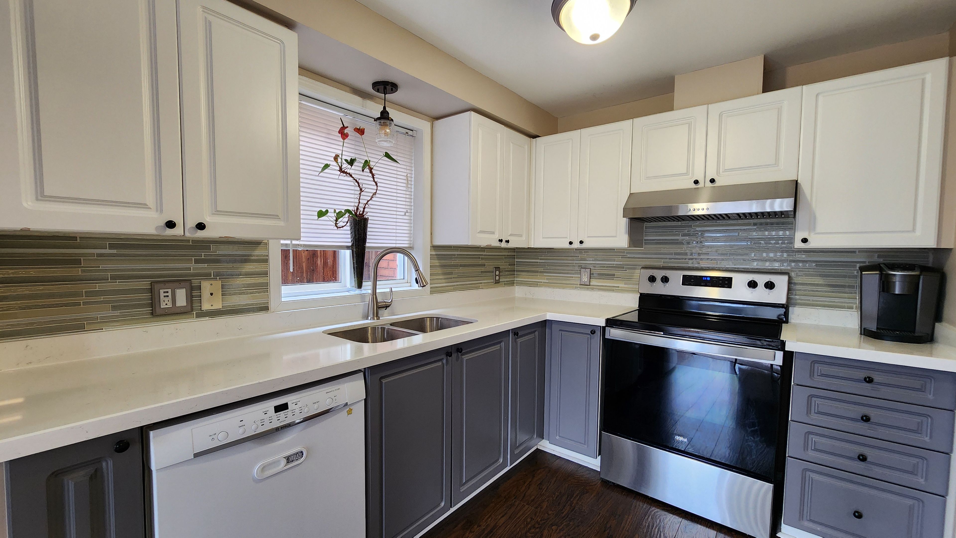• Bright kitchen with quartz countertops and access to a fully fenced backyard.