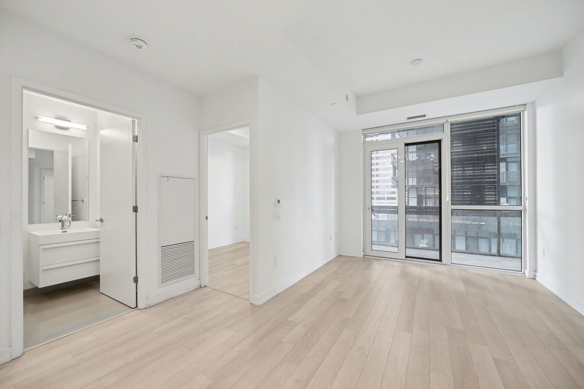 Welcome to e2 condos! Discover the perfect blend of space and functionality with this sun-filled 2 bed, 2 bath unit located in the heart of midtown. With an optimized design and no wasted space this suite features engineered laminate flooring throughout, a sleek open-concept kitchen with stainless steel appliances, contemporary cabinetry, and stylish modern finishes. Floor-to-ceiling windows flood the space with natural light and lead to a large private balcony, perfect for relaxing or entertaining. Enjoy unbeatable connectivity with nearby subway and bus stops, all just steps from top restaurants, shopping, entertainment, and parks. The building offers exceptional amenities including 24/7 concierge, indoor kids' play area, billiards room, conference and party rooms, fully equipped gym, yoga studio, and an expansive outdoor terrace with a running track and bbqs, p2 access to subway now opened.