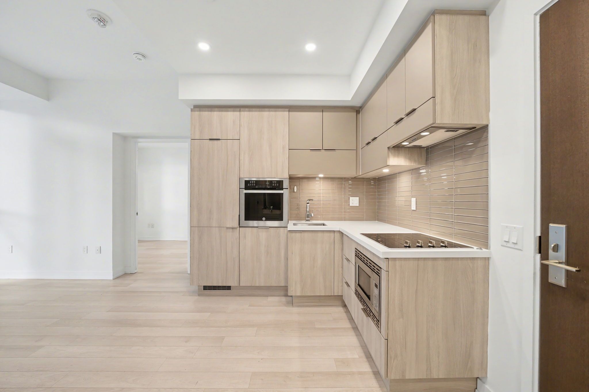 • Open-concept kitchen with stainless steel appliances and modern finishes.