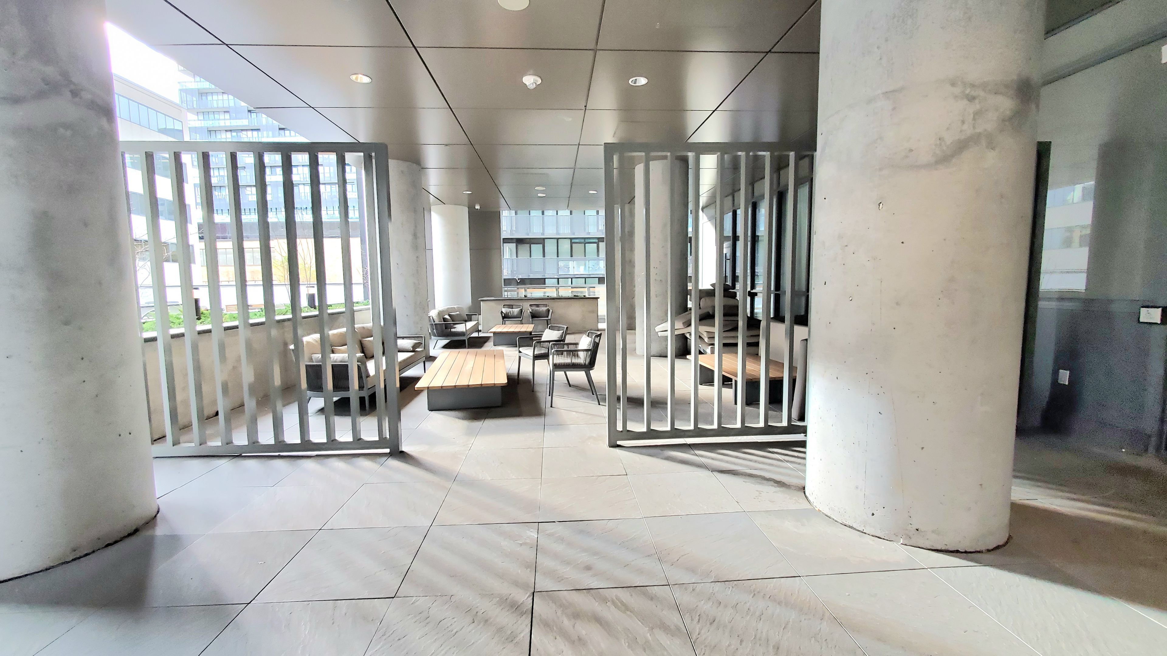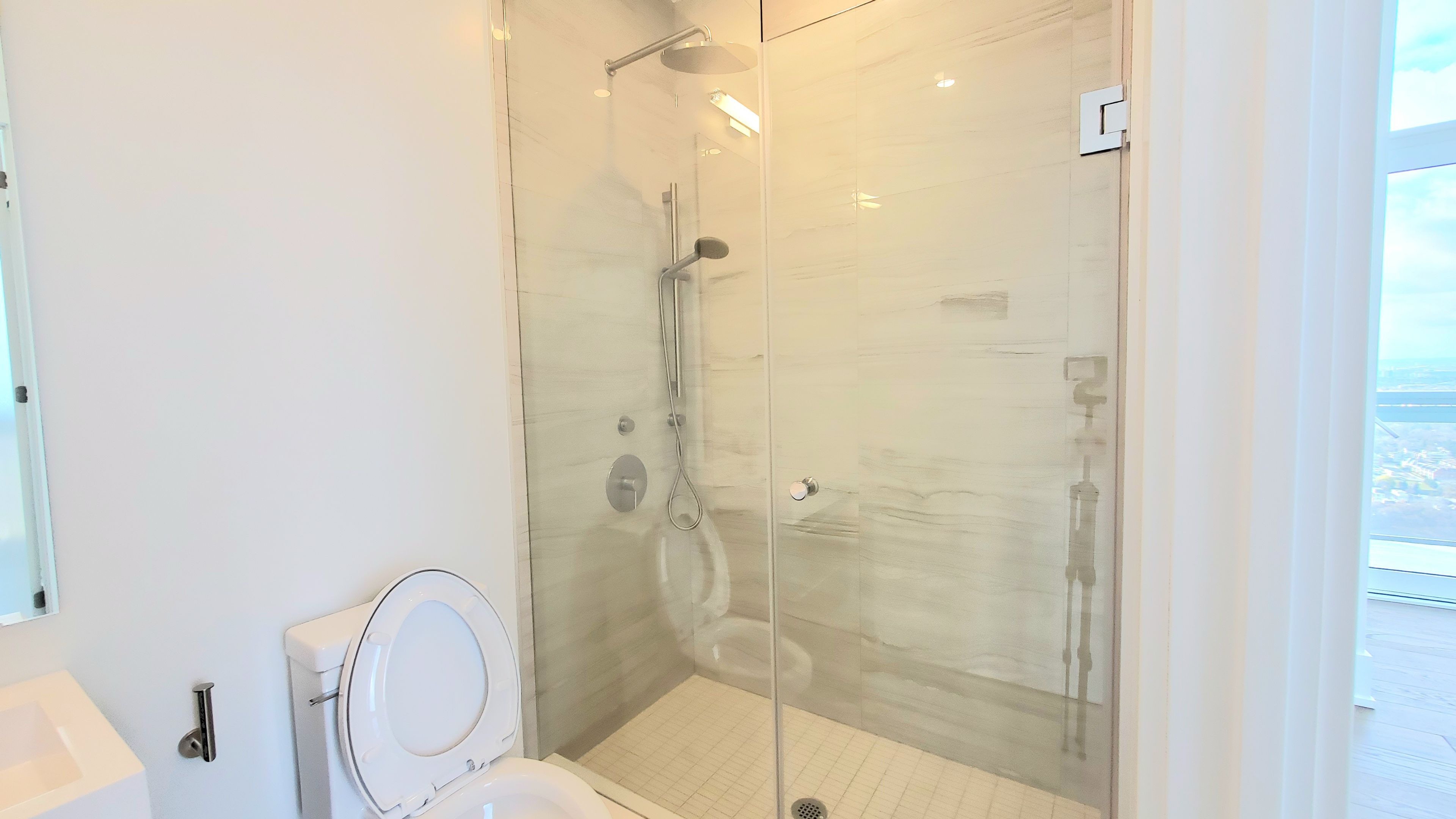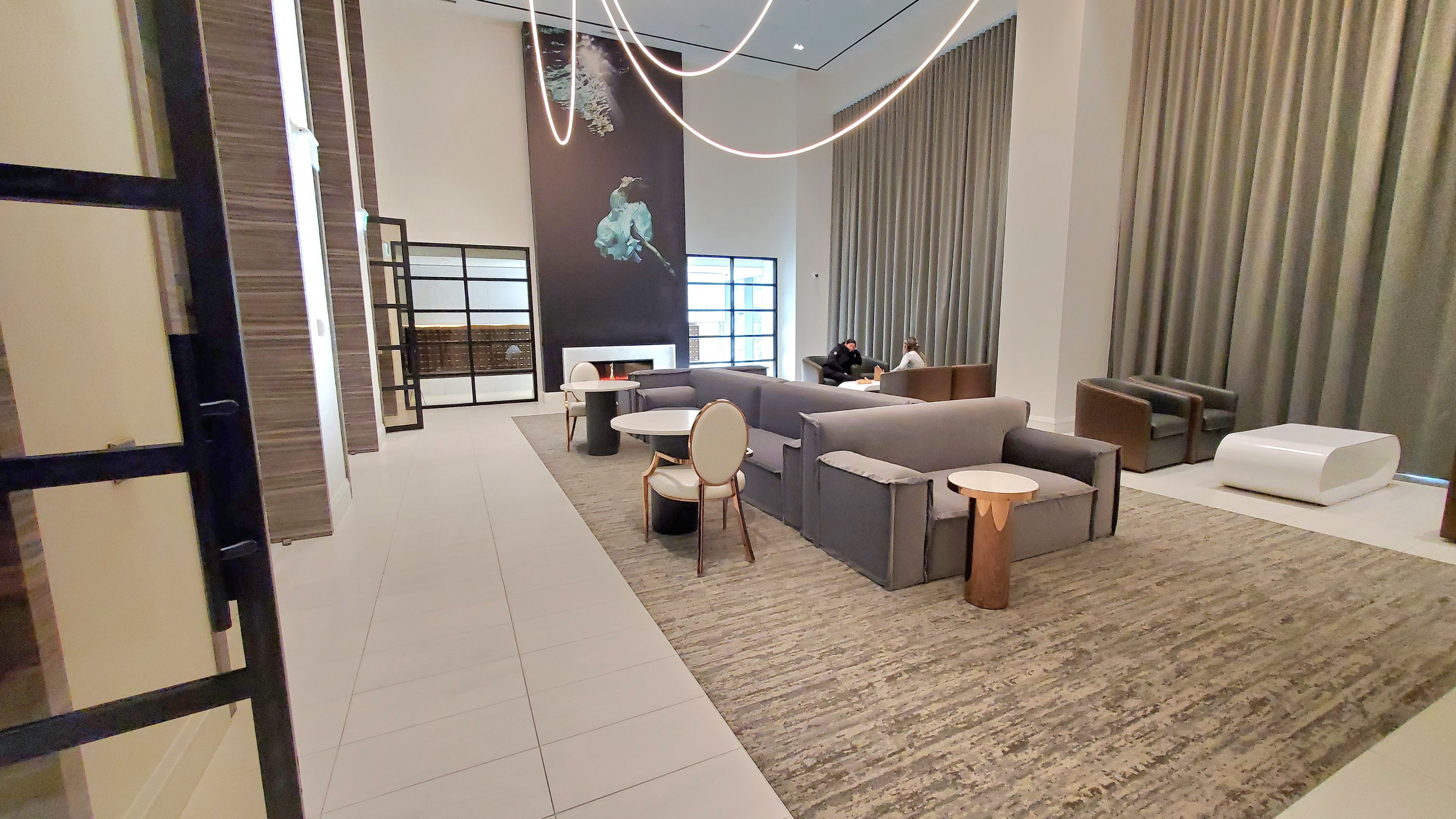 • 11ft high floor-to-ceiling windows create a spacious feel.