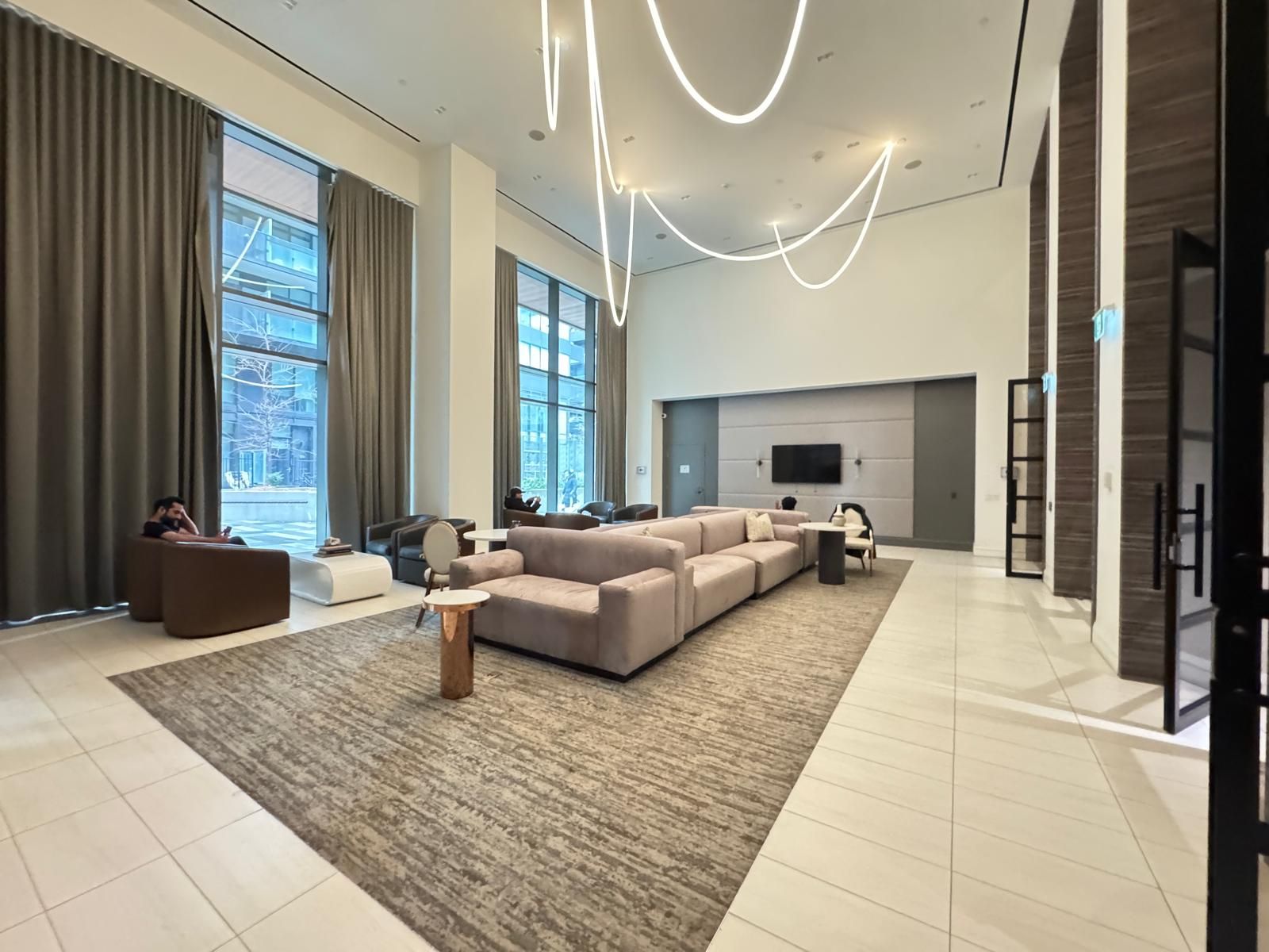 • 9-foot ceilings and floor-to-ceiling windows create a bright, open atmosphere.