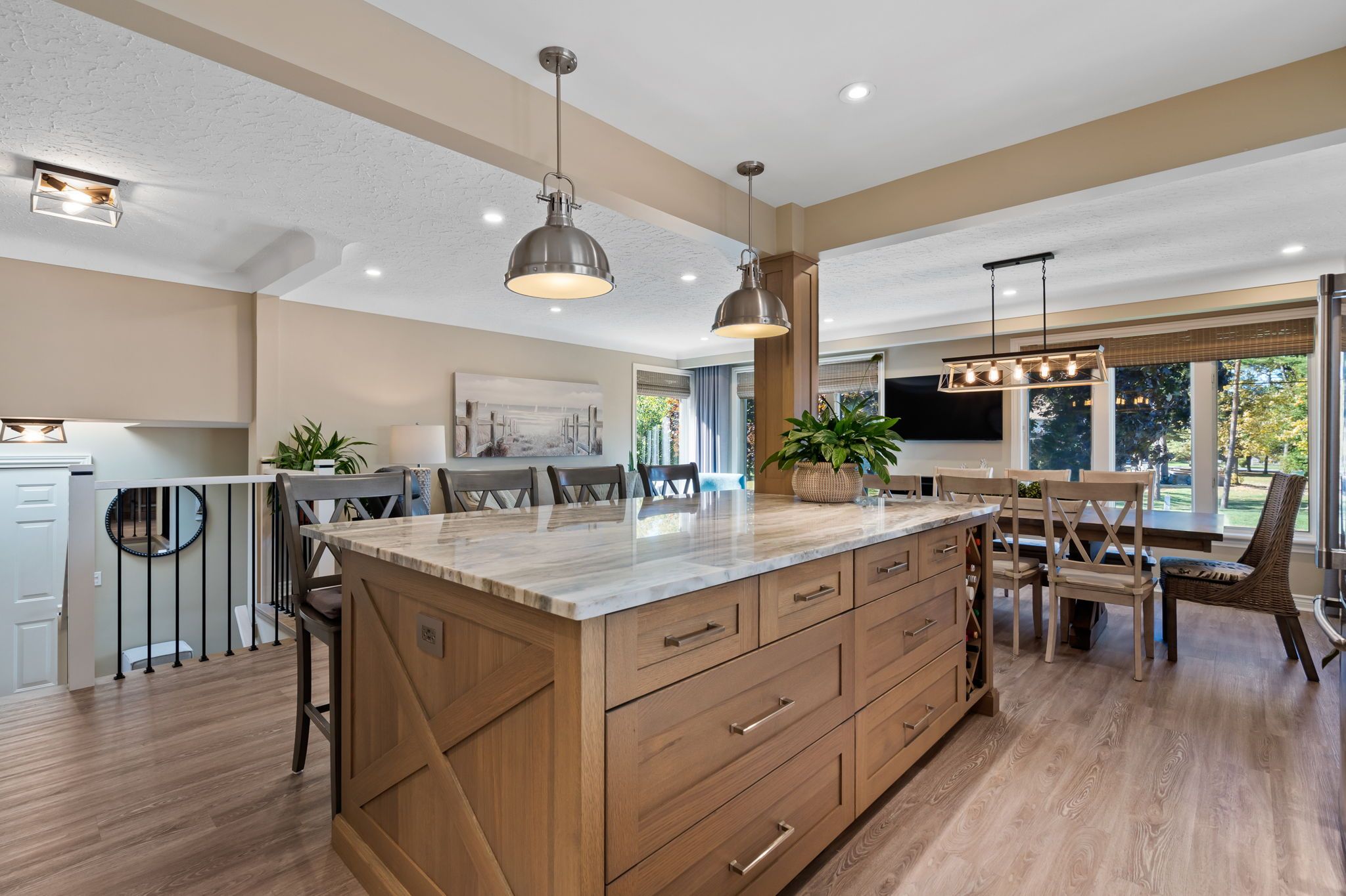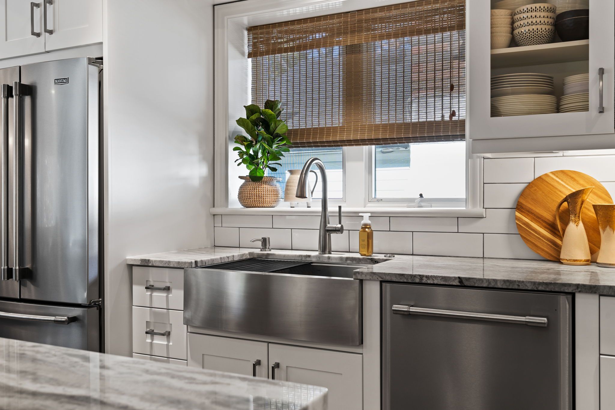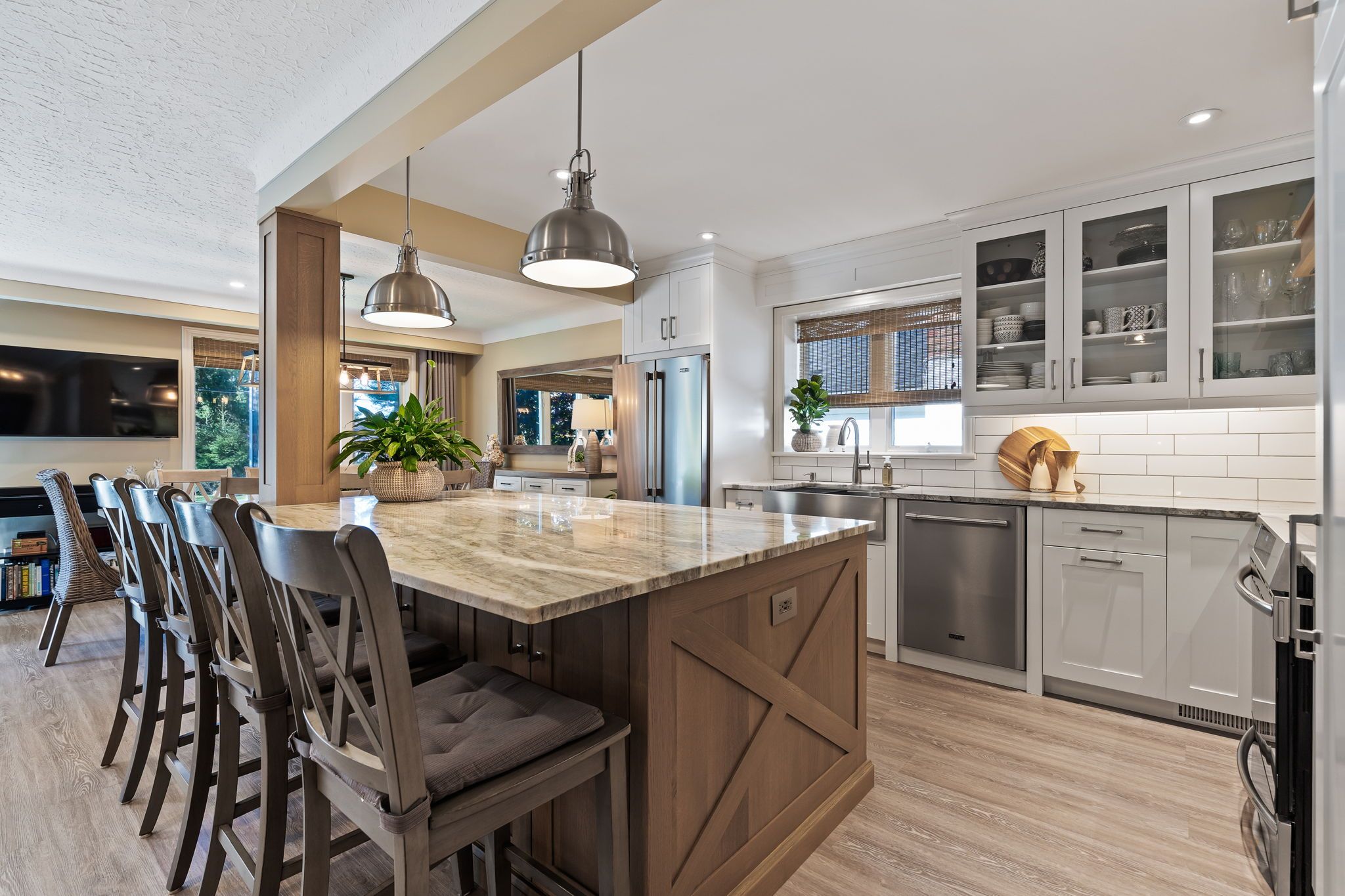 • Updated kitchen with granite island, pot filler, and newer appliances.