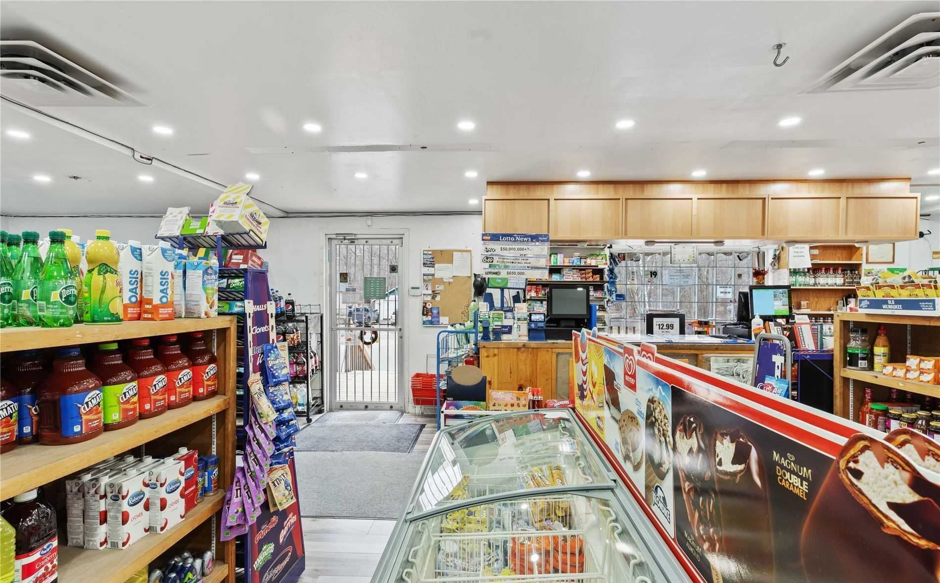 Amazing and rare opportunity to own a profitable convenience with bldg, lcbo agency store, high sales volume and great income, excellent location close to hwy 400, township office, public school nearby, new houses under construction and more to construct in coming years, approx. 2000 cottages around this area, no competition, great potential, don't miss it! Owner maintain the store with great care. W/o basement with 2 bed, full washroom and kitchen. Client has applied for gas station permit and subway restaurant permit **extras** fully upgraded store and apartment. Sellers will provide the full training.