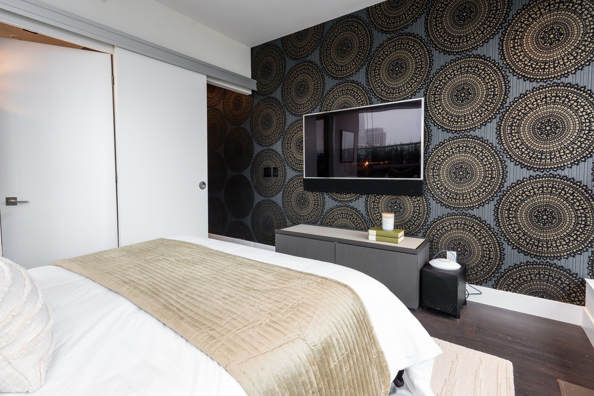 In a city full of cookie-cutter condos, this residence stands apart - an example of architecture applied to everyday living. Welcome to ph1606 at kings + condos, a custom-designed two-level urban residence offering nearly 2,000 sq ft of interior living space plus two private terraces and 2 balconies. This home blends architectural design, intelligent technology, and elevated comfort. The interior was custom designed in collaboration with wanda ely architects and features bespoke millwork in the dining room, a custom media wall with ecosmart fireplace, and exceptional storage including custom dressing spaces, a dedicated walk-in wardrobe, and built-in jewelry and shoe cabinetry. A fully integrated savant smart home system powers distributed audio throughout the residence, including bathrooms and the lower terrace, while controlling televisions and lighting seamlessly throughout the home. The kitchen is designed for both everyday living and entertaining, featuring an enlarged refrigerator, 5-burner cooktop, and a full walk-in pantry. A rare full laundry room with oversized sink adds an additional layer of functionality seldom found in downtown residences. Outdoor living has been elevated through two professionally designed terraces by earth inc.. The lower terrace features custom stone flooring, lighting, gas and water connections, and wired sound. The upper terrace offers custom wood flooring and a gas-line firepit - creating true outdoor rooms rather than typical condo balconies. Each room features its own thermostat for personalized heating and cooling, and the suite includes a private a/c unit independent from the building, allowing cooling year-round. Perfectly positioned for urban convenience with quick access to both the gardiner expressway and don valley parkway. Walk to groceries, shopping, and some of the city's best dining. This residence isn't just about space, it's about living an elevated lifestyle in the heart of toronto.