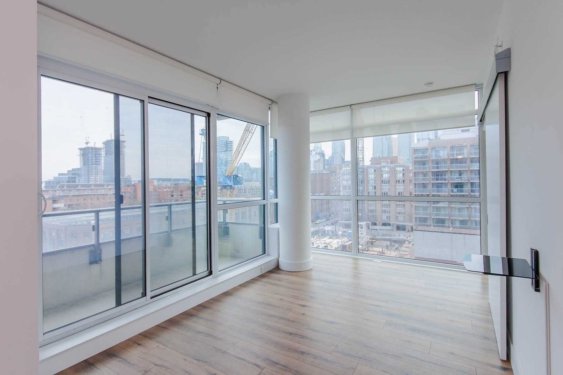 955 sqf bright southwest facing split 2 beds - 2 full bath with parking and locker in trendy king st e design district perfect 100 walk score and transit score, plus 99 for biking, this location truly has it all. Modern & sleek finishes integrated fridge, induction stove, floor to ceiling large sw window , wide plank flooring throughout. King sized primary bedroom with large double closet and large ensuite bathroom. Enormous front hall closet. Separate dining rm from living space. Clever kitchen island with built -in breakfast extension. Walk to subway, st. Lawrence market, distillery district, king streetcar at your door.