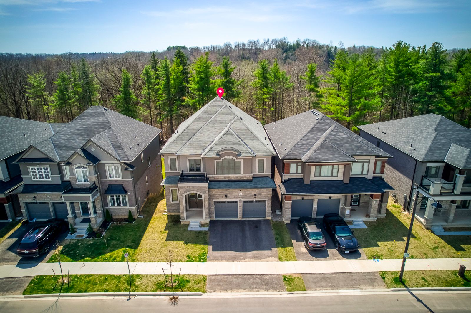 Elegant all-brick 4-bedroom executive home on a premium ravine lot with walk-out basement and tandem 3-car garage. Approx. 3,126 sq. Ft. Of luxury living featuring 10-ft ceilings on main floor, upgraded hardwood throughout, hardwood stairs with runner, and led soffit lighting. Modern eat-in kitchen with upgraded cabinets, luxury range hood, and walkout to balcony overlooking lush forest views. Spacious layout with formal dining room, large windows, and abundant natural light. Primary bedroom offers spa-like ensuite & his/her walk-in closets. Second bedroom with private ensuite; 3rd & 4th share jack & jill bath. Walk-out basement with high ceilings, cold room & rough-in for future suite---great income potential. Culligan water softener & lennox two-stage a/c included. Close to schools, parks, trails, shopping & hwy access. Some photos virtually staged.