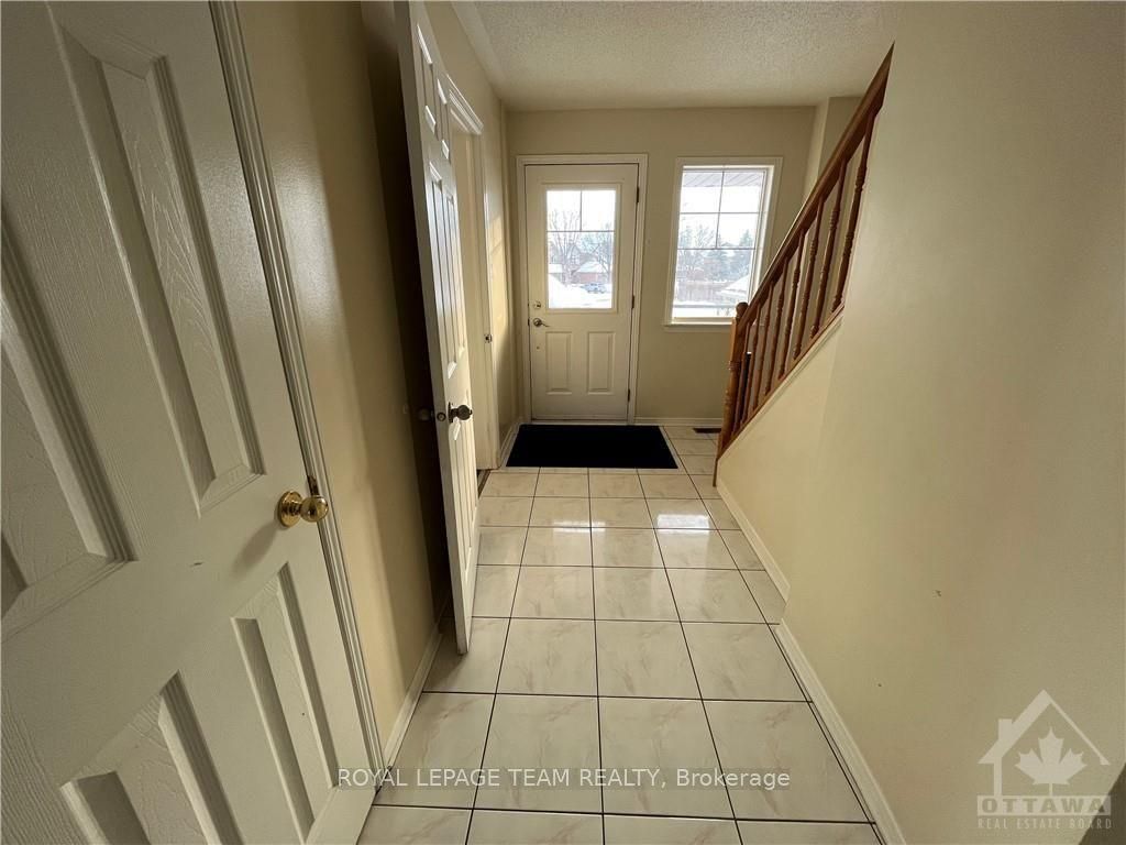 Come visit this upper unit townhouse in centrepointe! Excellent location near tons of amenities: algonquin college, parks, shopping, groceries, easy access to highway and more. Basement unit with separate entrance from the rear is tenanted. Main level greets you with a flex room off the entrance which could be perfect for a home office, a kids play area or even a guest bedroom. Down the hall is the main living space with a cozy fireplace and access to a private balcony and a powder room. Upper level has a main bath, walk-in linen closet and 3 spacious bedrooms including the primary bedroom with a walk-in closet and ensuite. Laundry is in the basement. Utilities are shared with lower unit.(80% of utilities). The garage share with basement tenant as an extra storage. Pictures take before the tenants moving in.