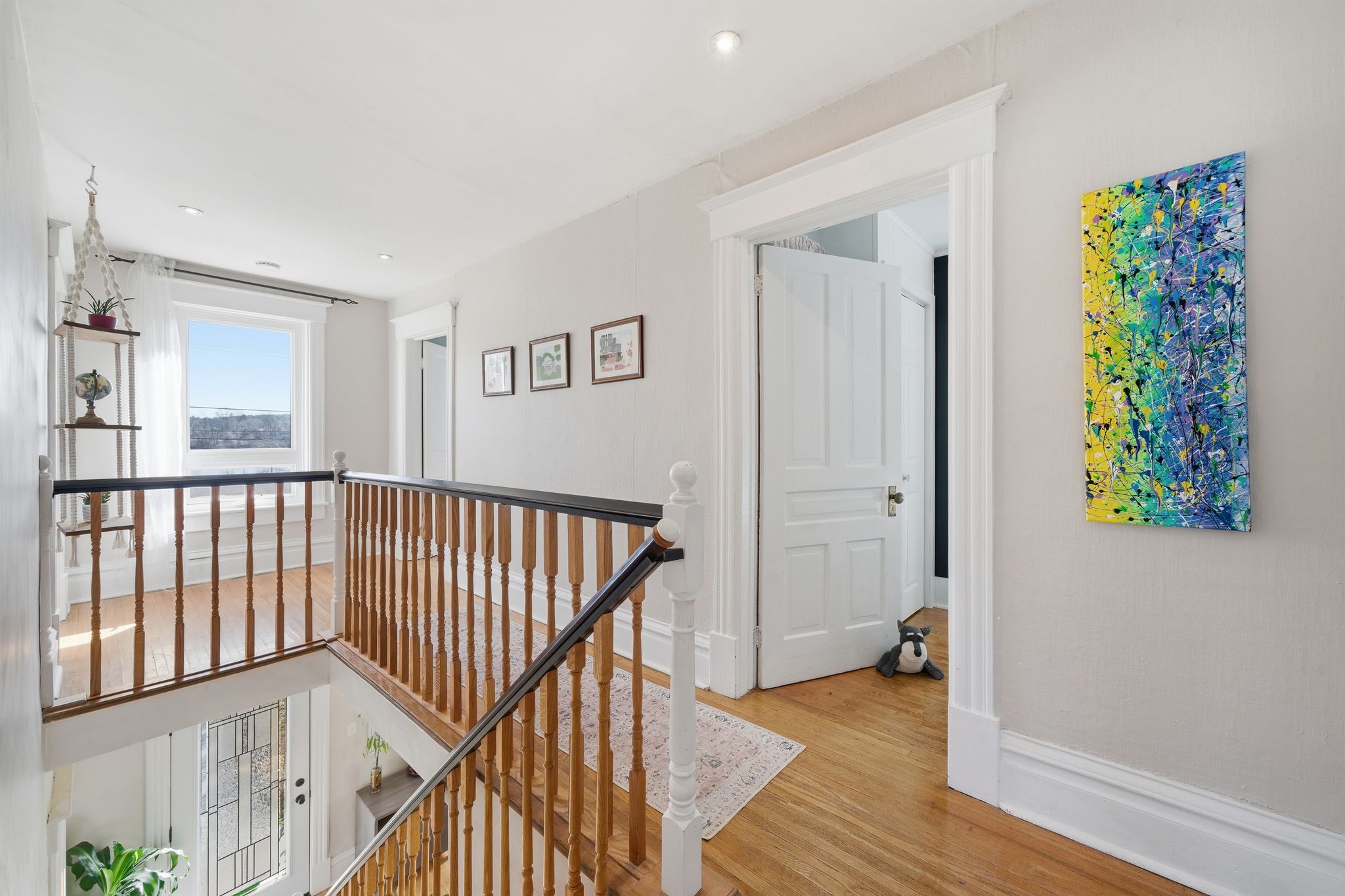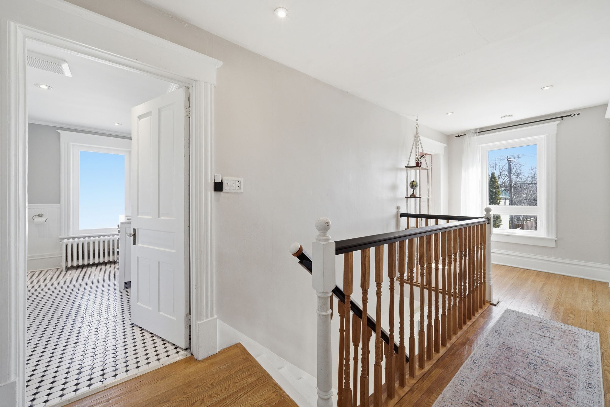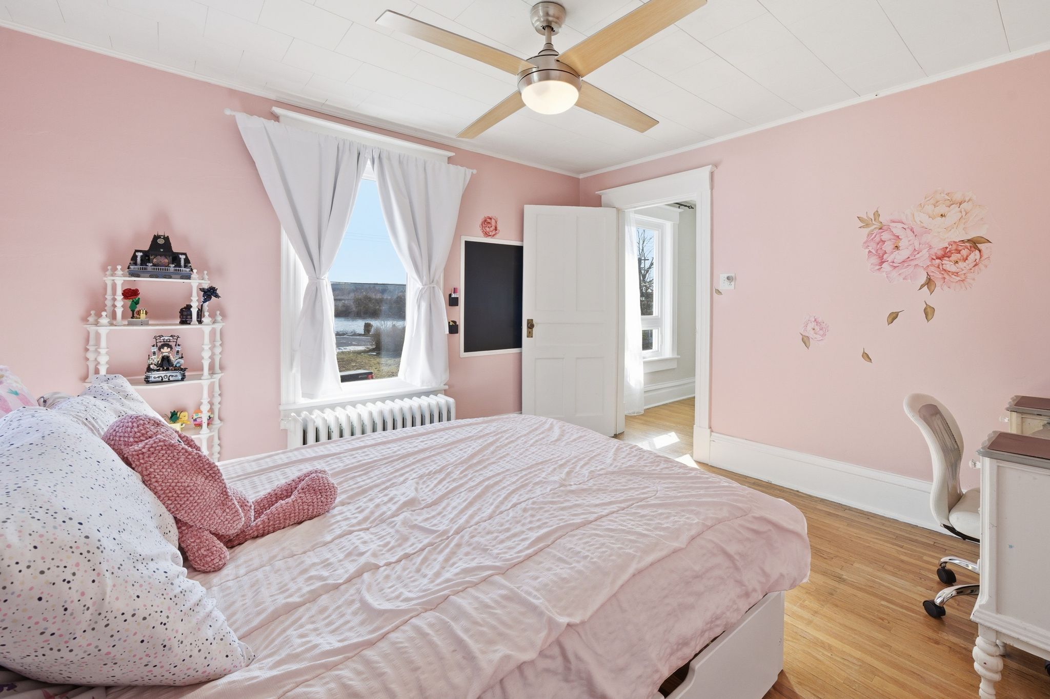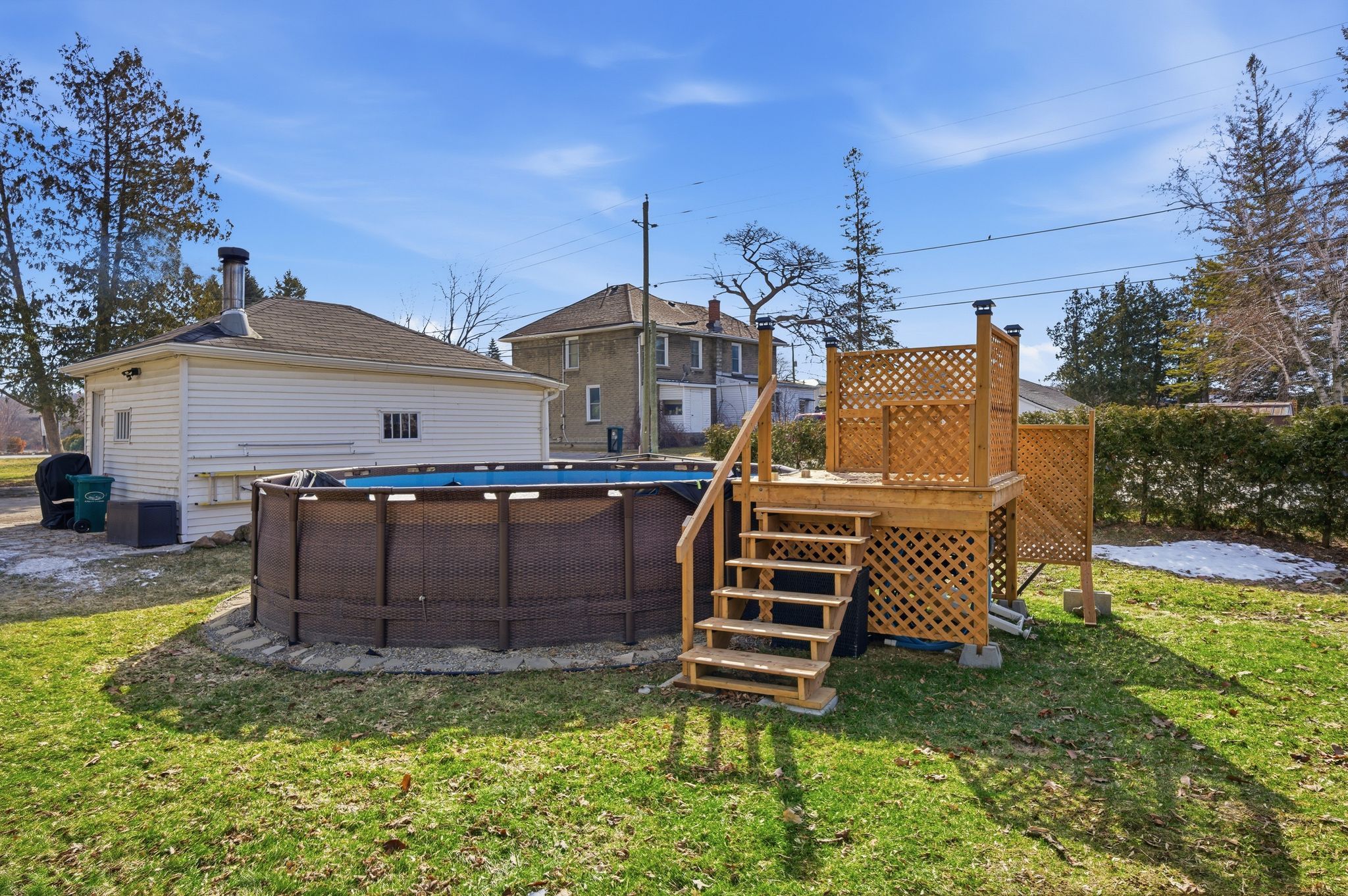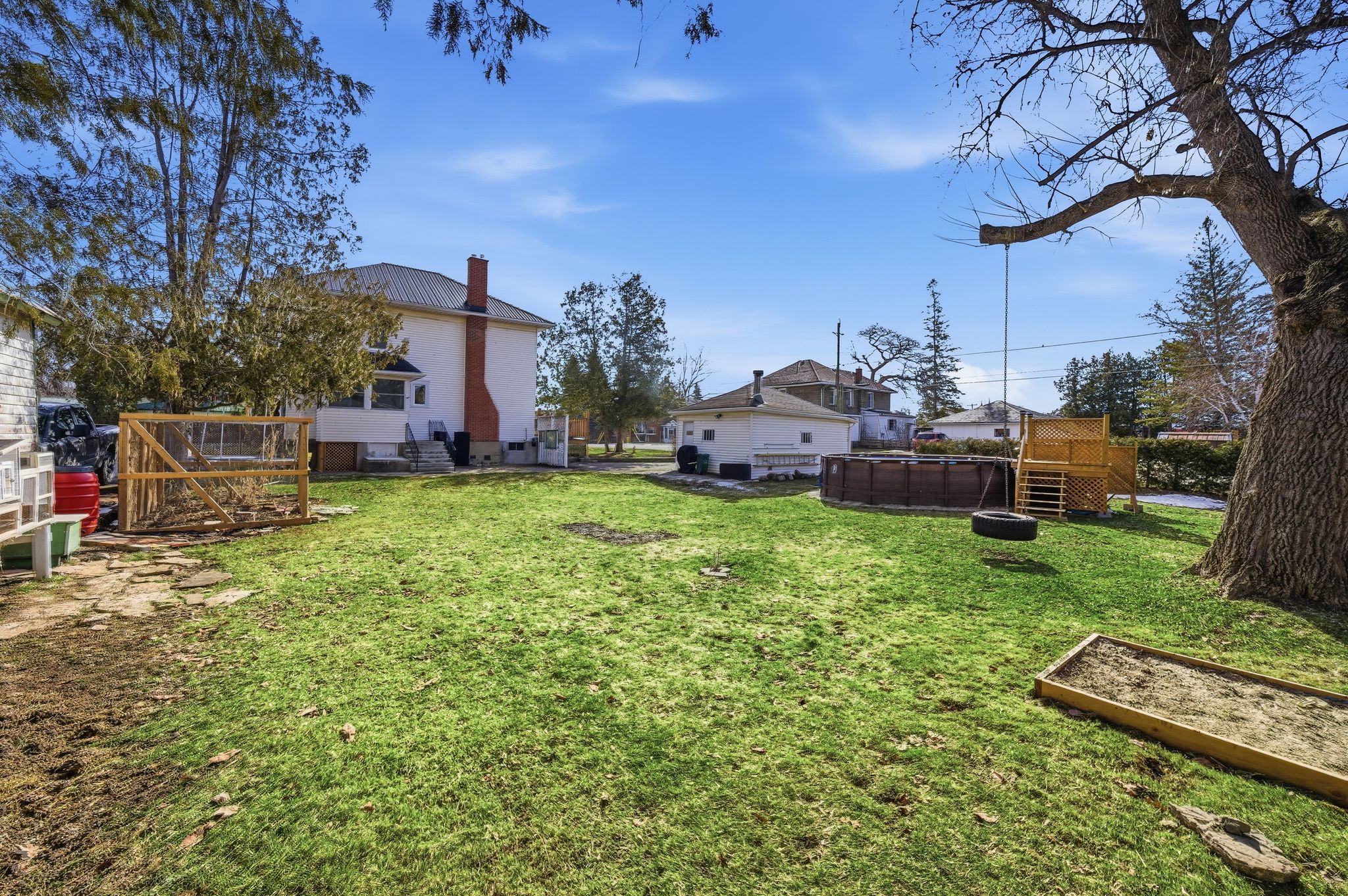 Step into a piece of quinte west's history in this beautifully maintained 1920s century home set on a stunning double lot in the heart of frankford. Offering over 1,500 sq ft of above-grade living space, this charming 3-bedroom home blends timeless character with modern updates. The curb appeal is striking, with black shutters, a black metal roof, and a bold red front door (2025), all framed by mature trees that provide privacy and shade. Inside, the main level features professionally refinished hardwood floors (2025), large windows, and bright, welcoming living spaces. The living room is centred around a gas fireplace and opens to a small deck, perfect for enjoying your morning coffee. The kitchen is functional and inviting, featuring a gas stove and a new kitchen floor (2026). Upstairs, the spacious primary bedroom enjoys beautiful east-facing views of the trent river. The main 5-piece bathroom blends classic and modern design and convenience with an antique clawfoot tub, walk-in shower, double vanity, and vintage built-in cabinetry, and updated pot lighting. Outdoor living is just as impressive, with a large double lot featuring a 2024 above-ground pool and deck, landscaped grounds, and an enclosed garden area. A detached single-car garage with 30-amp service adds flexibility for storage or a workshop, and comes already equipped with an air compressor. Additional updates include new windows (2025), chimney liner replacement and brickwork (2024), back porch shingles (2024), and an owned 60l electric water heater (2024). The basement offers one partially finished room, excellent storage, and a convenient laundry area. Located within walking distance to frankford public school, shops, and restaurants, and just minutes to the frankford tourist park beach, boat launch, and skate park. A rare opportunity to own a character-filled home on a spacious lot in one of quinte west's most welcoming communities, only a 15-minute drive to cfb trenton and 7 minutes to the 401.