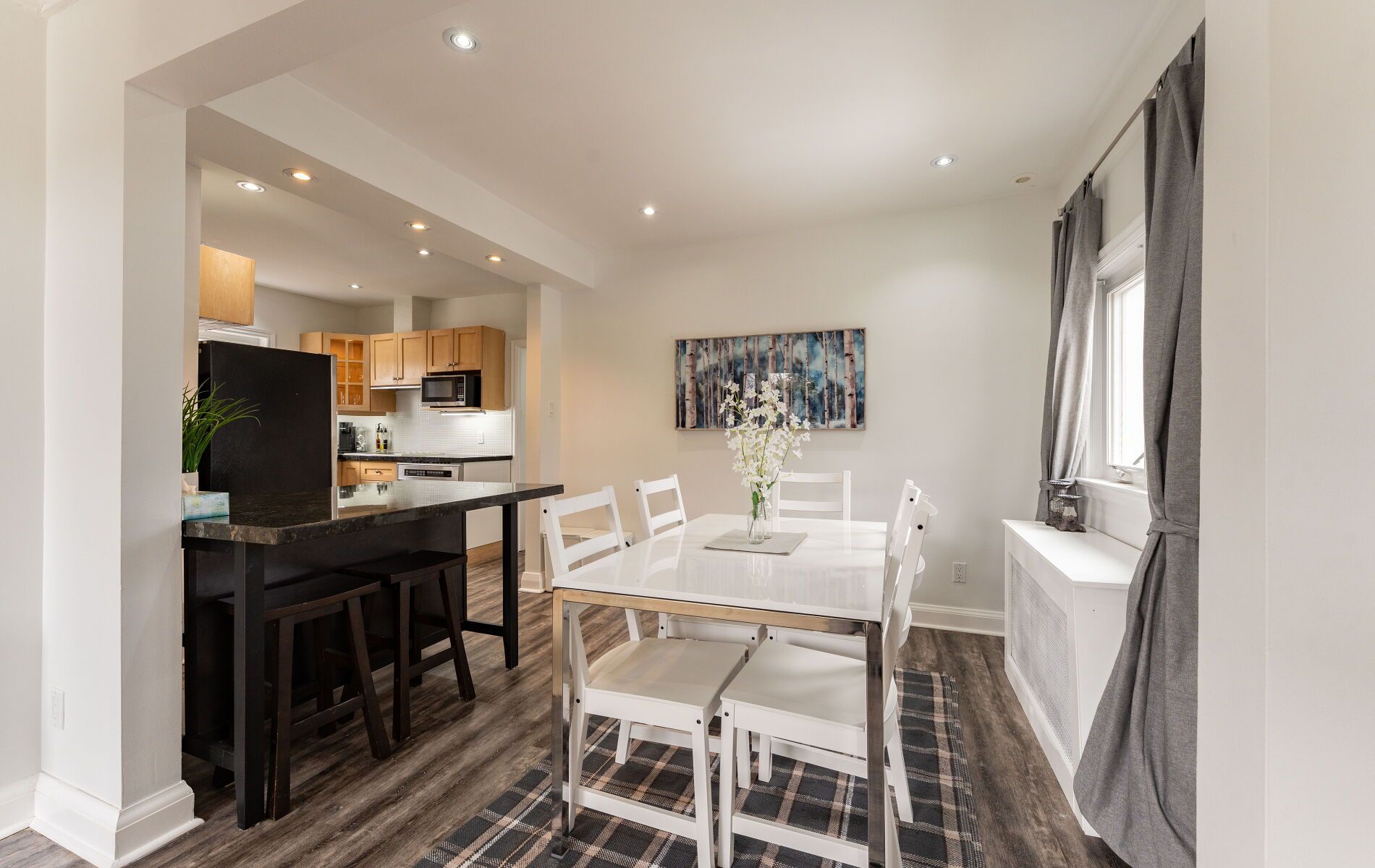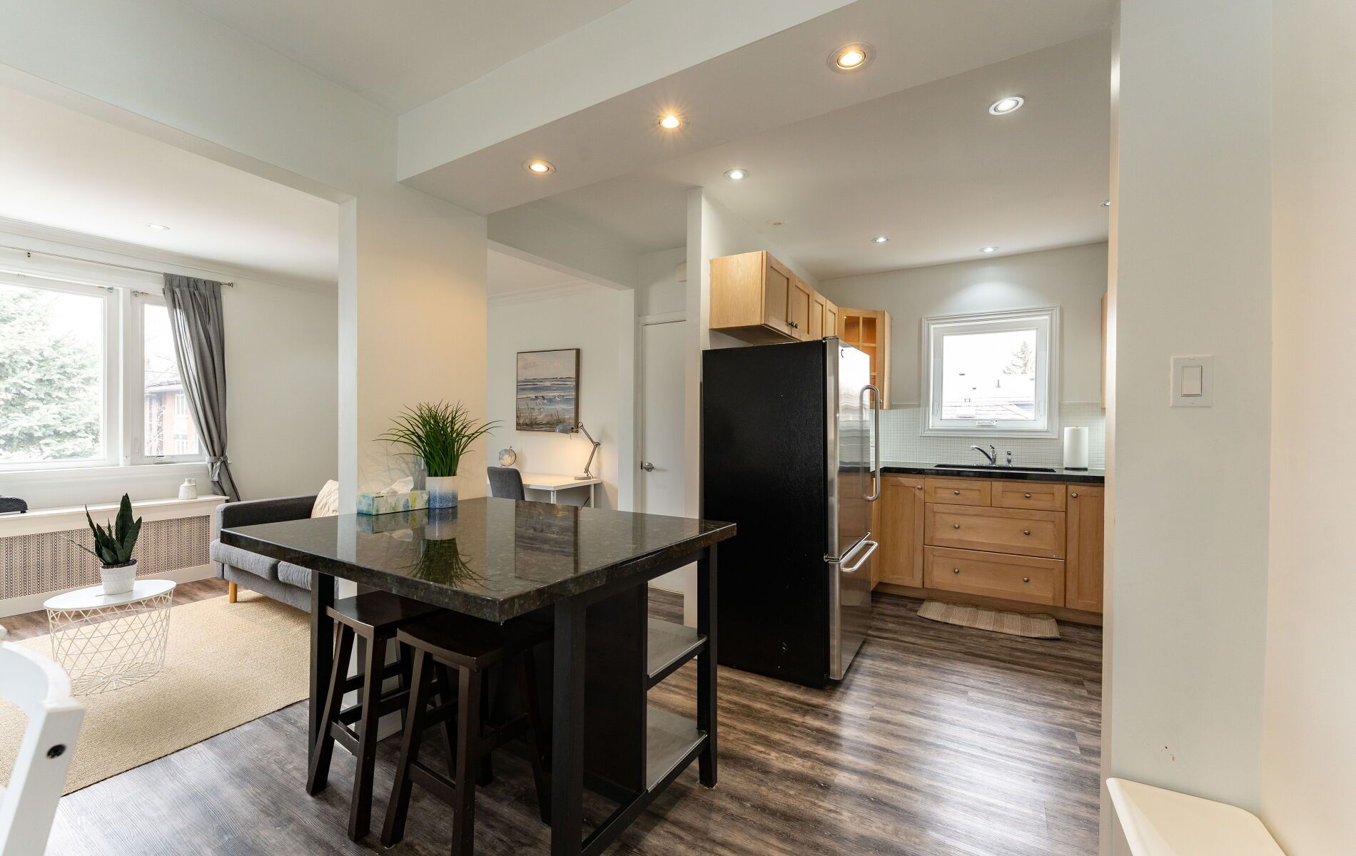 • Updated bathroom and contemporary flooring throughout the unit.