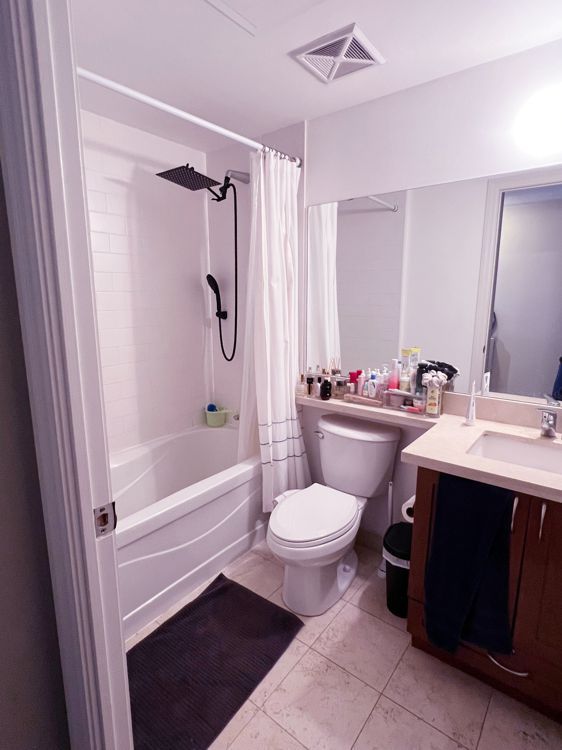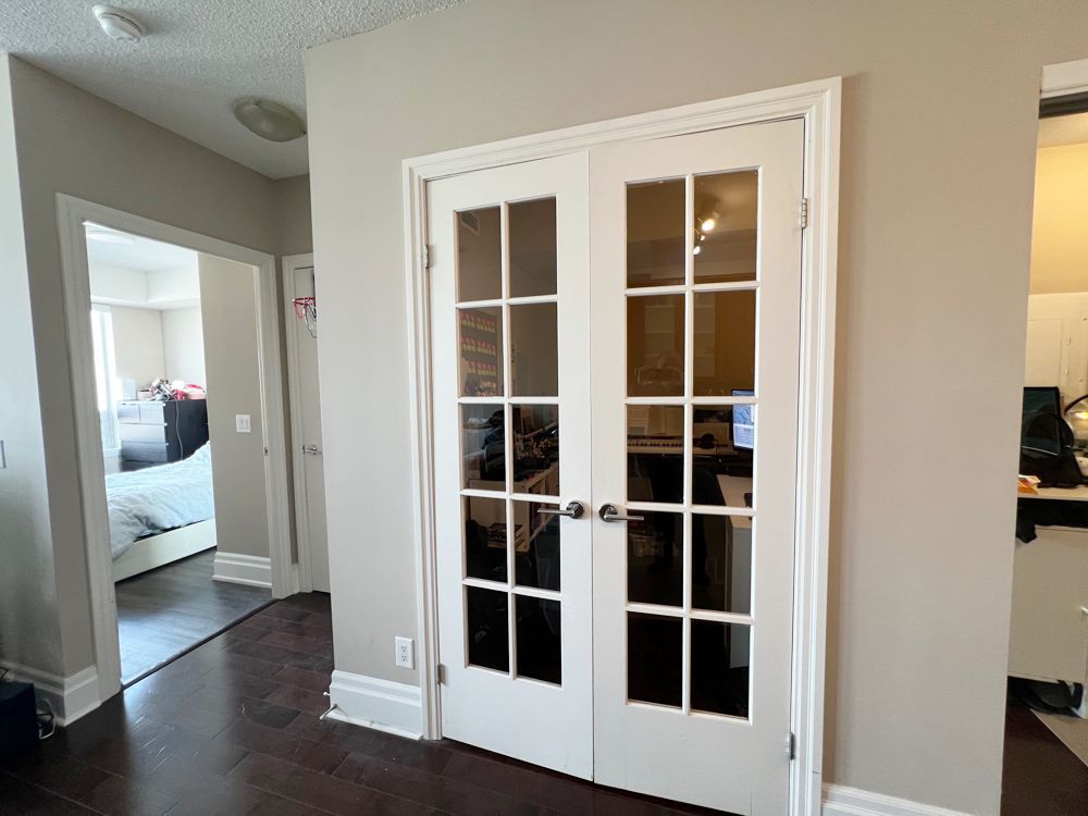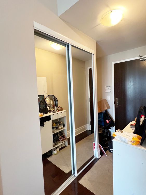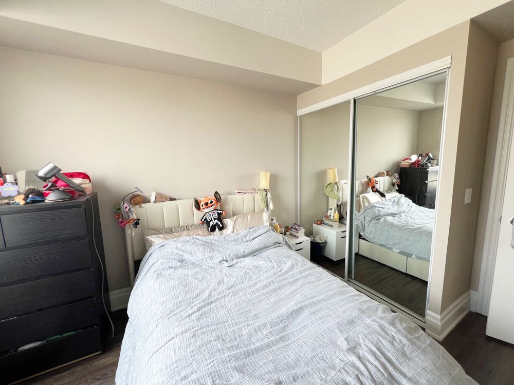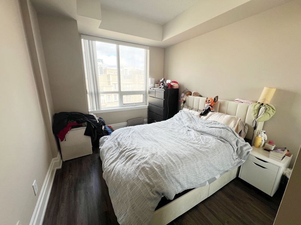9 ft ceiling, 1 bedroom + den, tiles in kitchen, 4pc toilet, french doors in the den, 1 parking and 1 locker, extended breakfast granite countertop with double sinks. Elegant kitchen cabinets with mirror backsplash. Laminate floor throughout the unit. Close to etr 407, highway 7, york university, whole food supermarket, downtown markham, theater, good life gym, restaurants, no frill supermarket, mcdonald. Condo amenities: golf stimulation room, theatre, sun lounge, guess room, party room, concierge. The underground parking spot and the locker room in level p2 are beside the elevator entrance of 39 upper duke. Very convenience to bring back your grocery from your car to the elevator.