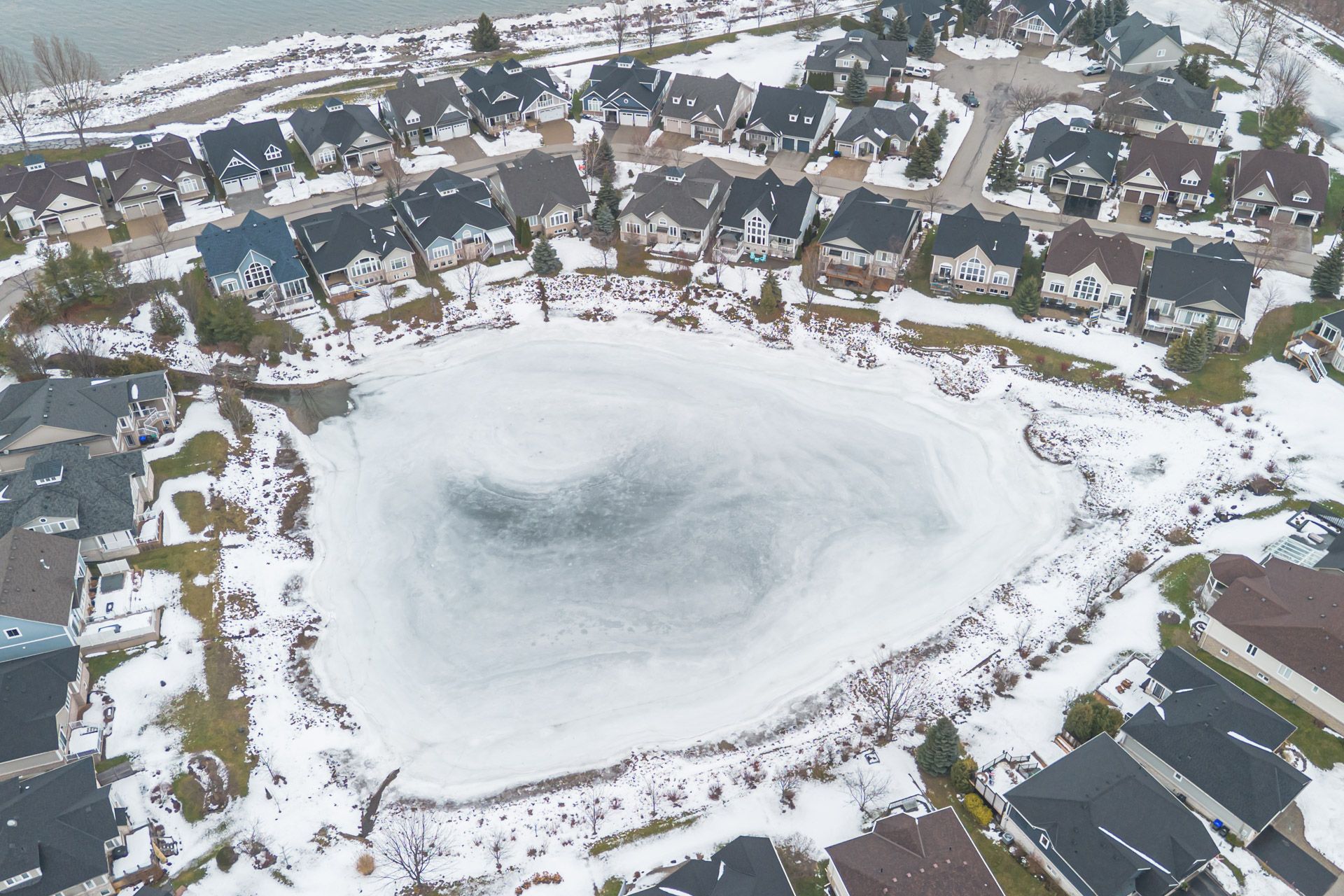 • Expansive windows provide beautiful pond views, perfect for entertaining.