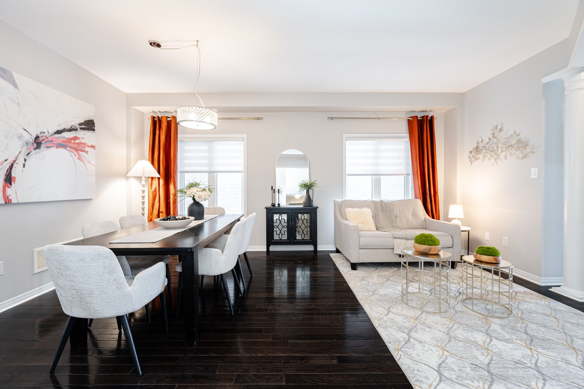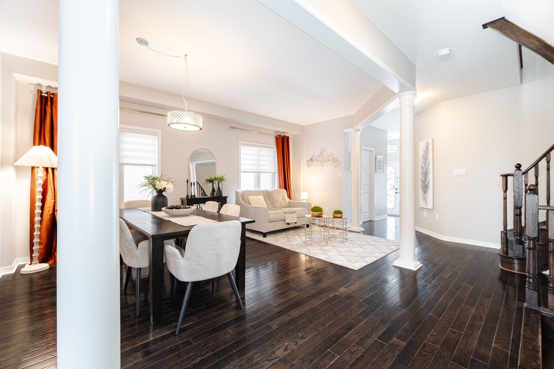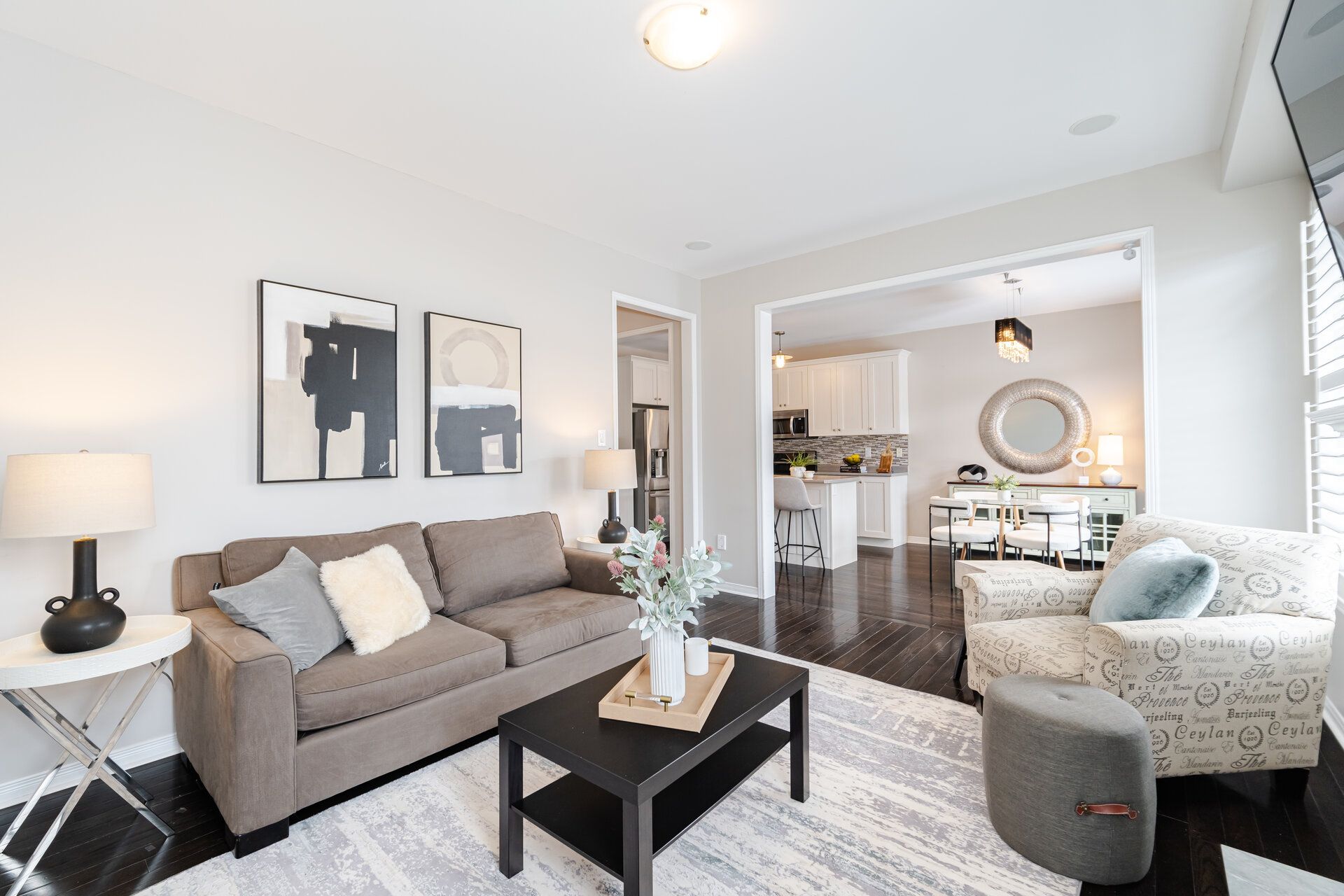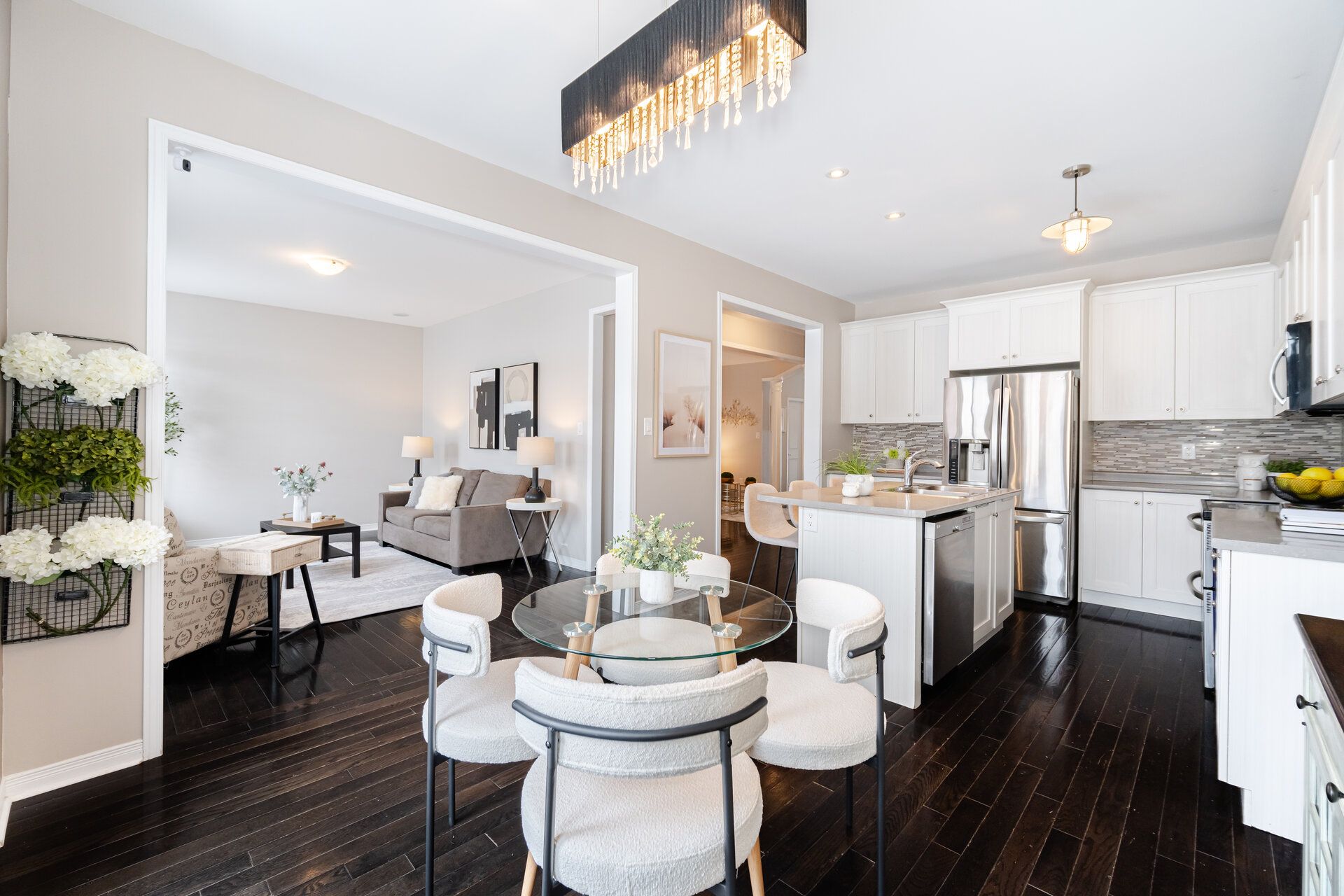 Welcome to remington's kingsley model home, offering over 2500 sq ft of finished living space. 2 car garage lot with patterned aggregate concrete and inviting front porch. 2 storey home with 4 bedrooms and 4 bathrooms. The main floor has an open concept floor plan with living and dining areas combined. The eat-in kitchen has a centre island and breakfast nook with french doors that lead to the backyard patio. Great for entertaining. The cozy family room has a gas fireplace. Spacious bedrooms on upper level with 2 rooms having their own ensuite. Mud room has access to garage for added convenience. Basement is unfinished awaiting your personal touch. Located close to all amenties, schools, hungry hollow, trails, parks and minutes to toronto premium outlet and highways.
