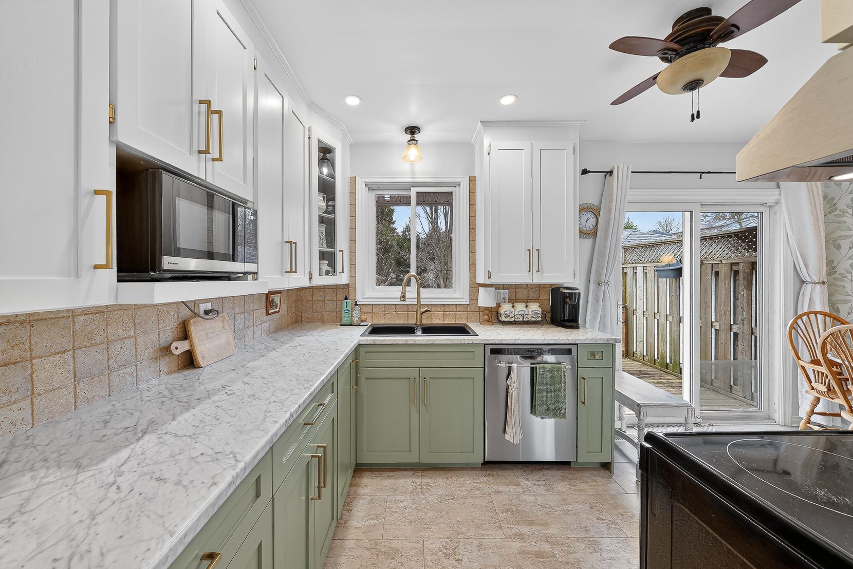 • Updated kitchen and cheerful dining area with patio access.