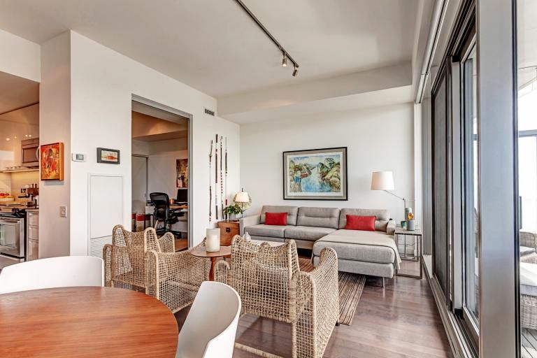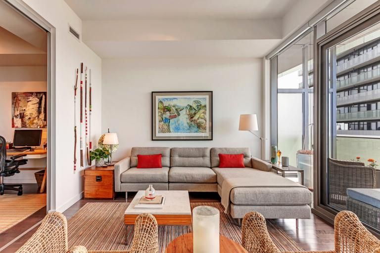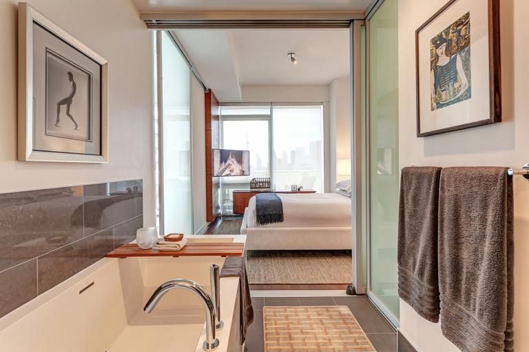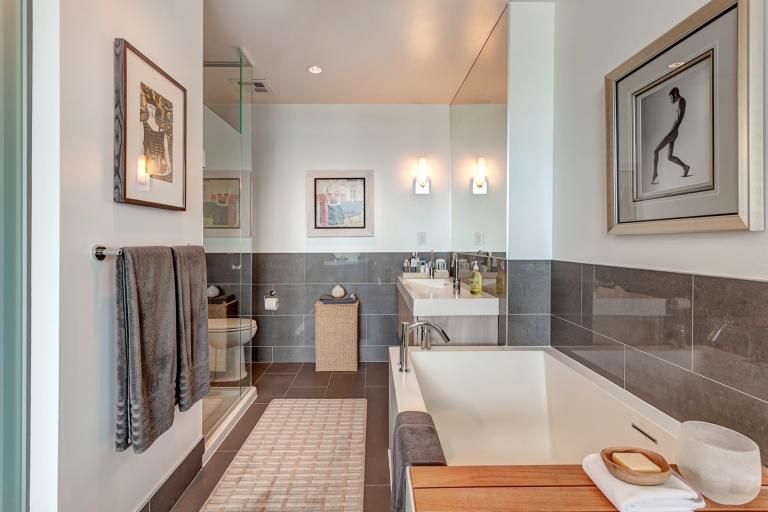 • Bright 2-bed, 2-bath suite with fantastic city skyline views.