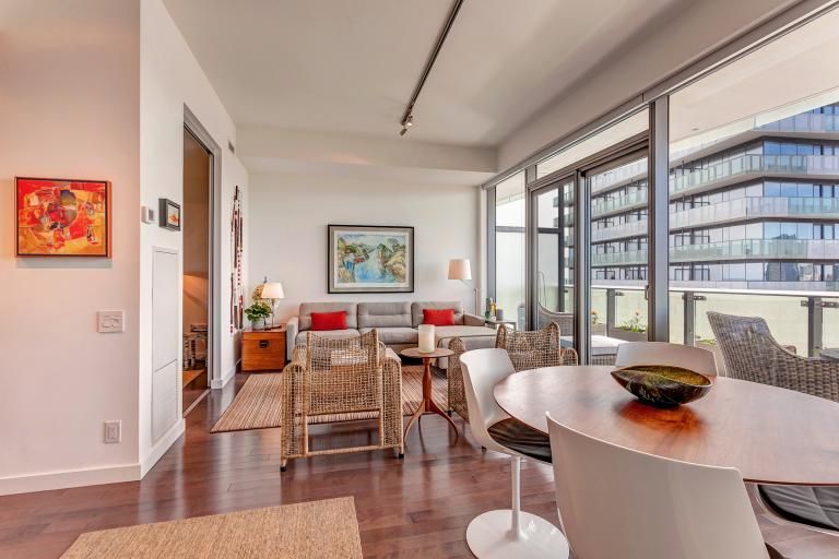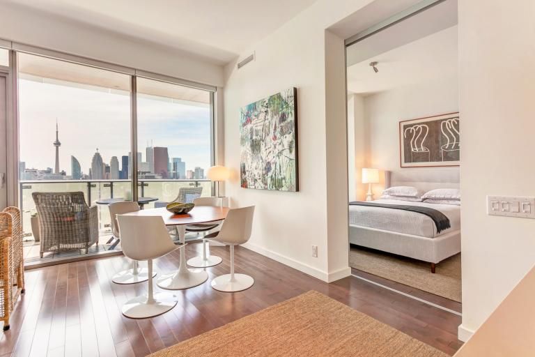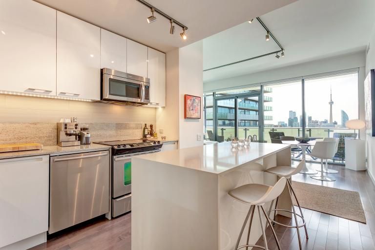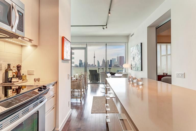 Unmatched views in the distillery district! Welcome to this bright 2-bed, 2-bath suite at 390 cherry st, offering one of the best views in the entire city. Enjoy unobstructed skyline, cn tower, and stunning sunset views through floor-to-ceiling windows and from a large, wide balcony perfect for relaxing or entertaining. Inside, the upgraded kitchen features a waterfall-edge island and a layout designed to maximize light and space. The building offers resort-style amenities: outdoor pool, rooftop deck/garden, gym, yoga room, party room, games room, boardroom and more. Step outside to the historic distillery district-cobblestone walkways, cafés, dining, boutique shops, and year-round entertainment. Minutes to the waterfront, st. Lawrence market, financial district, and transit at your door step! A rare rental with unbeatable charm and world-class views. 1 parking and 1 locker included. Bonus: cleaning service included every two weeks!! Yes-never worry about cleaning day again.