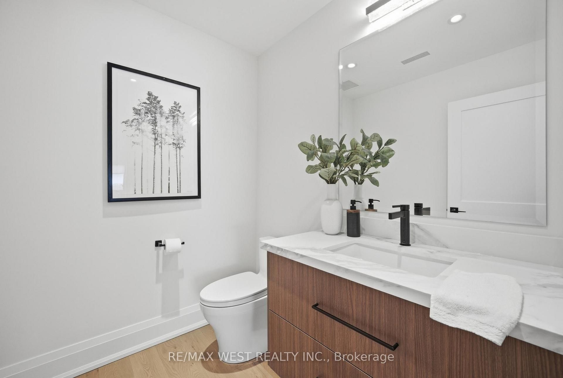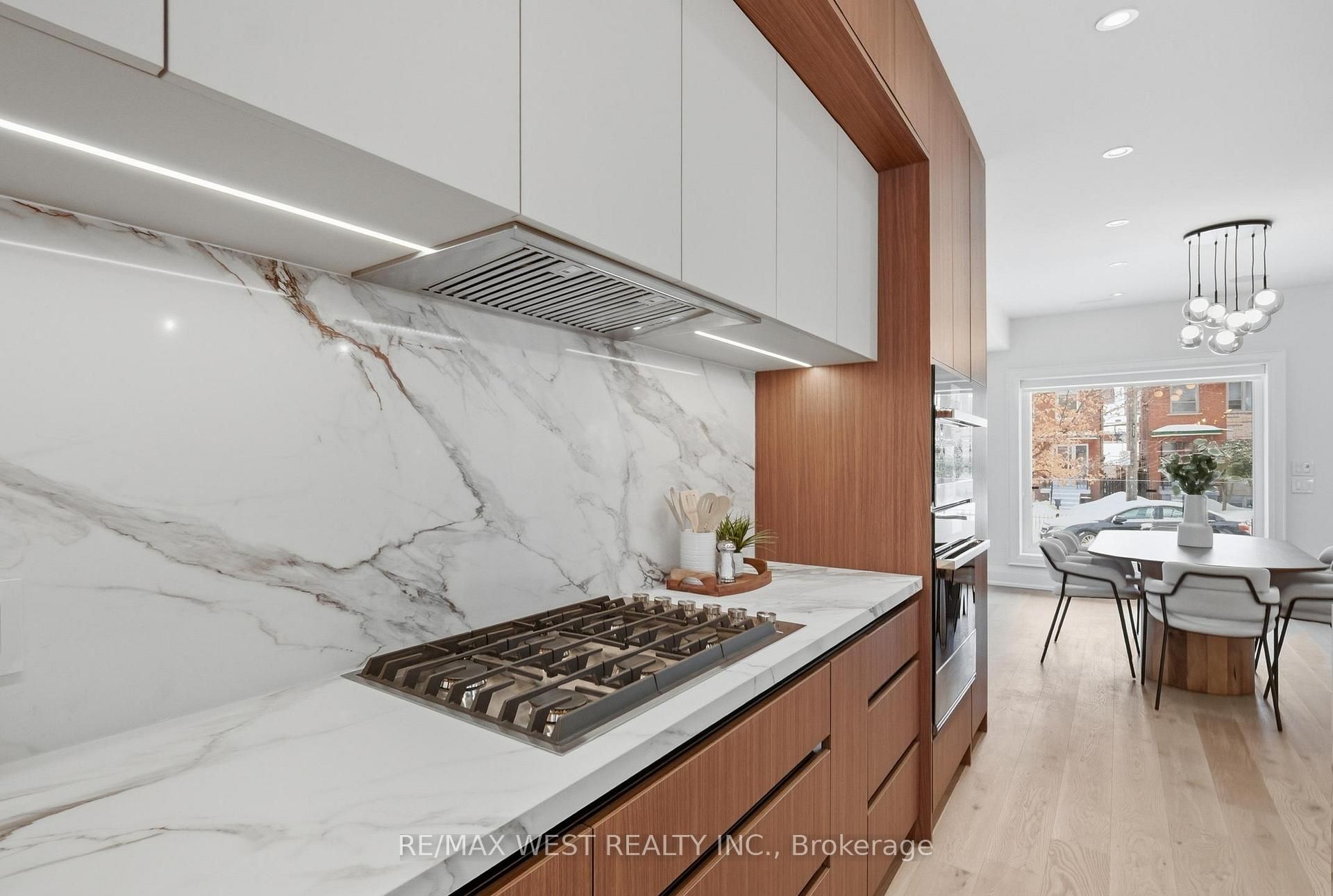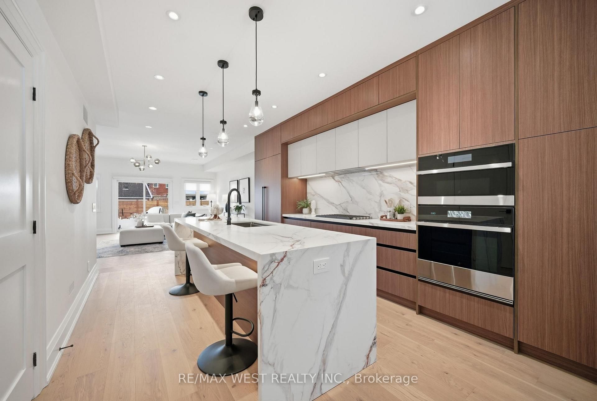 Spectacular state-of-the-art detached duplex nestled away on one of the most prestigious tree-lined streets south of bloor, bespoke with grandeur and allure, consists of 3,517. 11 sf at all levels. Upper 3 levels offer 2,855. 45 sf, while lower level adds 661. 66 sf of luxury. Loaded with custom features thru-out. Easy, simple & cost-effective to convert to single-family w roughed-in header at front entry interior wall. Highlighting 9 ft ceilings on mn, 8'6" on 2nd & 3rd, plus 8'2" bsmt height w sun-filled oversized windows. Luxury elevated w transitional sleek cabinetry, custom 'grigio statuario drift' counters, stainless & panelled appliances incl gas range, b/i oven, oversized island w b-fast seating. Exceptional functionality w open layout, high-end lighting & plumbing fixtures, 14 speakers thru-out, spray foam insulation , toto toilets, smth ceils & pot lights galore. Main flr features spacious living, linear cstm fireplace & sun-filled dining w w/o to deck & backyard oasis w contemporary linear fencing. Upper level reveal unmatched size & quality w high-end finishes, 3 generous bdrms, 4-pc bath & zen-insprd 3-pc ensuite w glass shwr, lrge wndws, w/o to sun-filled deck & highly functional 2nd-fl lndry w ample cnter space. 3rd floor hosts an ultra-prvte oversized dream retreat primary bdrm w spa-like 5-pc ensuite featuring glass shower, free-standing tub, heated flrs, heated toilet seat, dual sinks, extensive clsd storage, w/o to sun-filled deck & cstm built-ins w make-up/vanity area. Bsmt features high ceils, modern ktchn w b-splsh, rec rm, 4-pc bth, w its own sep entrance & laundry. Exterior enhanced w newer sleek landscaping backyard setup. Double car laneway w potential for future laneway ste. Prime location w top walk score-steps to transit, close to subway, schools, parks & mins to shops on bloor & roncesvalles.