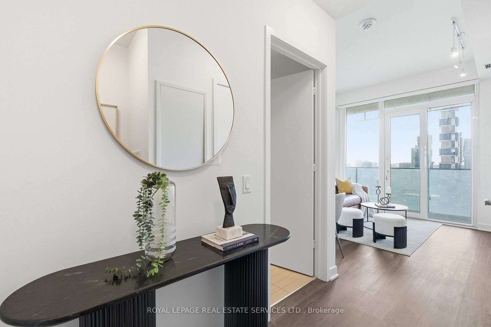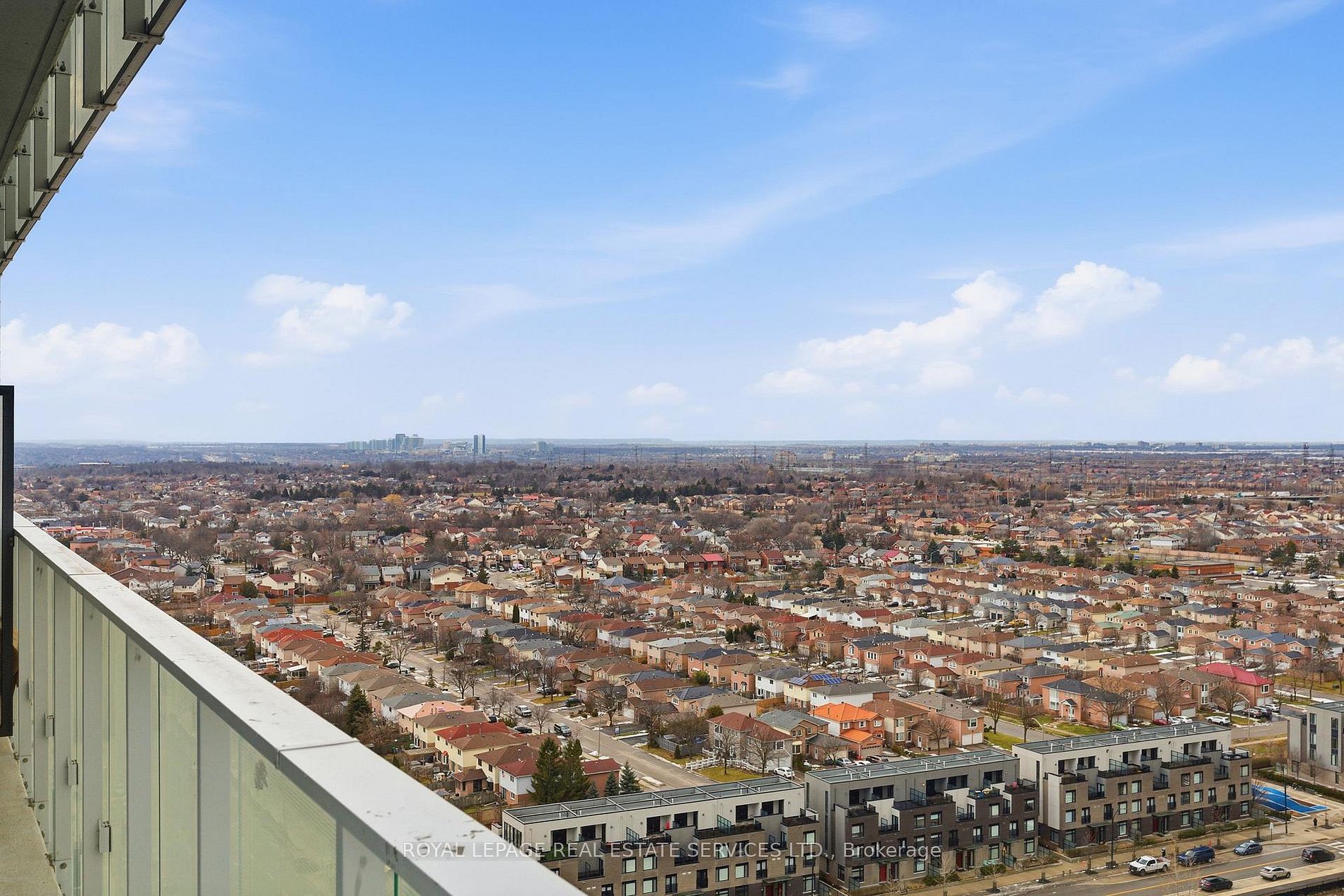 Modern living in the heart of mississauga at m city! This stunning 1 bedroom + den corner unit offers 784 sq ft of total space (571 sq ft interior + 213 sq ft balcony). Enjoy a rare wraparound balcony with access from all rooms, perfect for seamless indoor-outdoor living. Floor-to-ceiling windows throughout flood the unit with natural light. The versatile den features a door and floor-to-ceiling windows, making it ideal as a home office or additional sleeping area. The oversized l-shaped balcony provides spectacular, unobstructed city views. M city offers exceptional amenities including 24-hour concierge, swimming pool, fitness centre, bbq areas, kids' play zone, seasonal skating rink, party room, games room, and more. Located just steps to square one shopping centre, sheridan college, public transit, and every convenience imaginable. Includes 1 parking spot. A must-see!